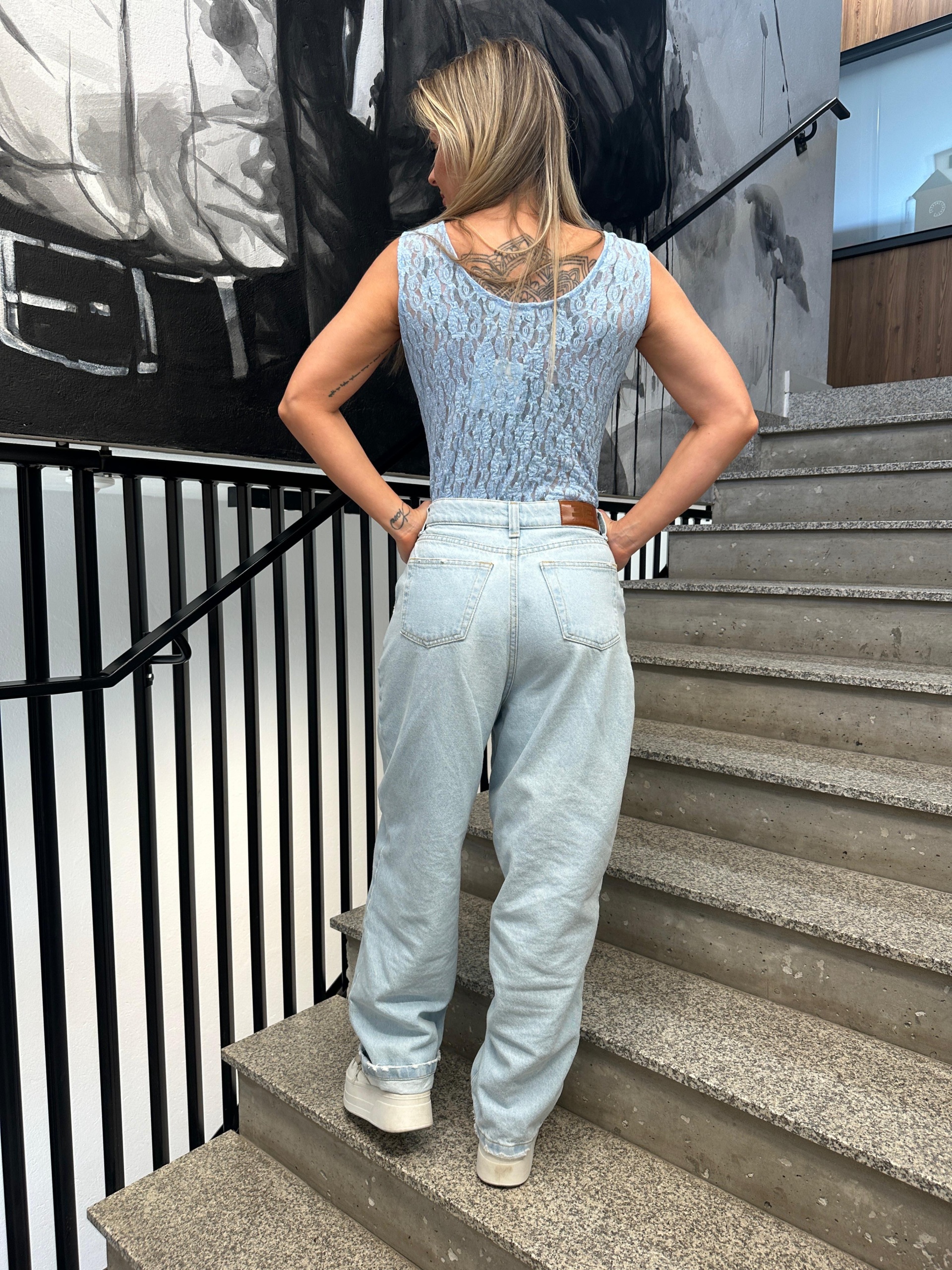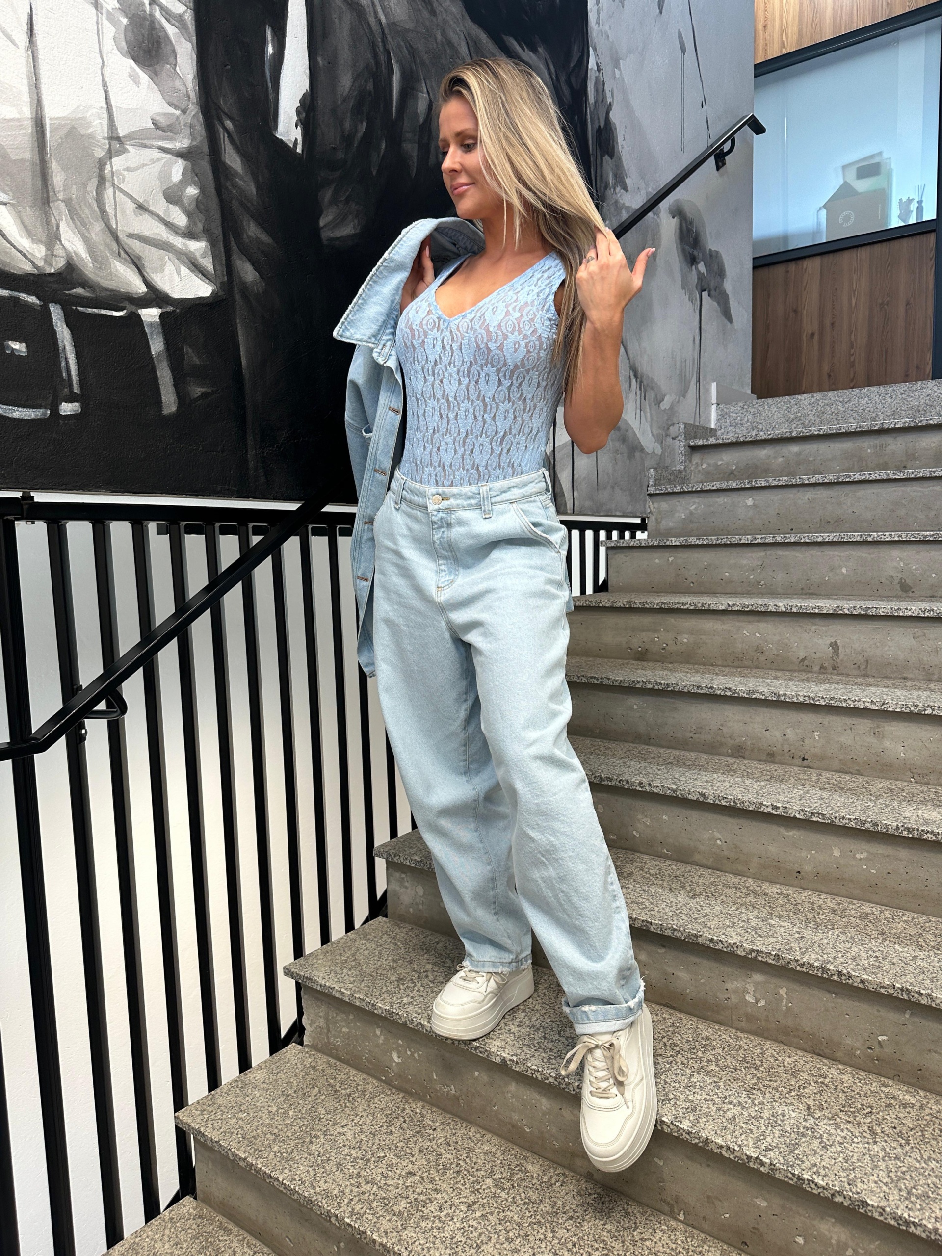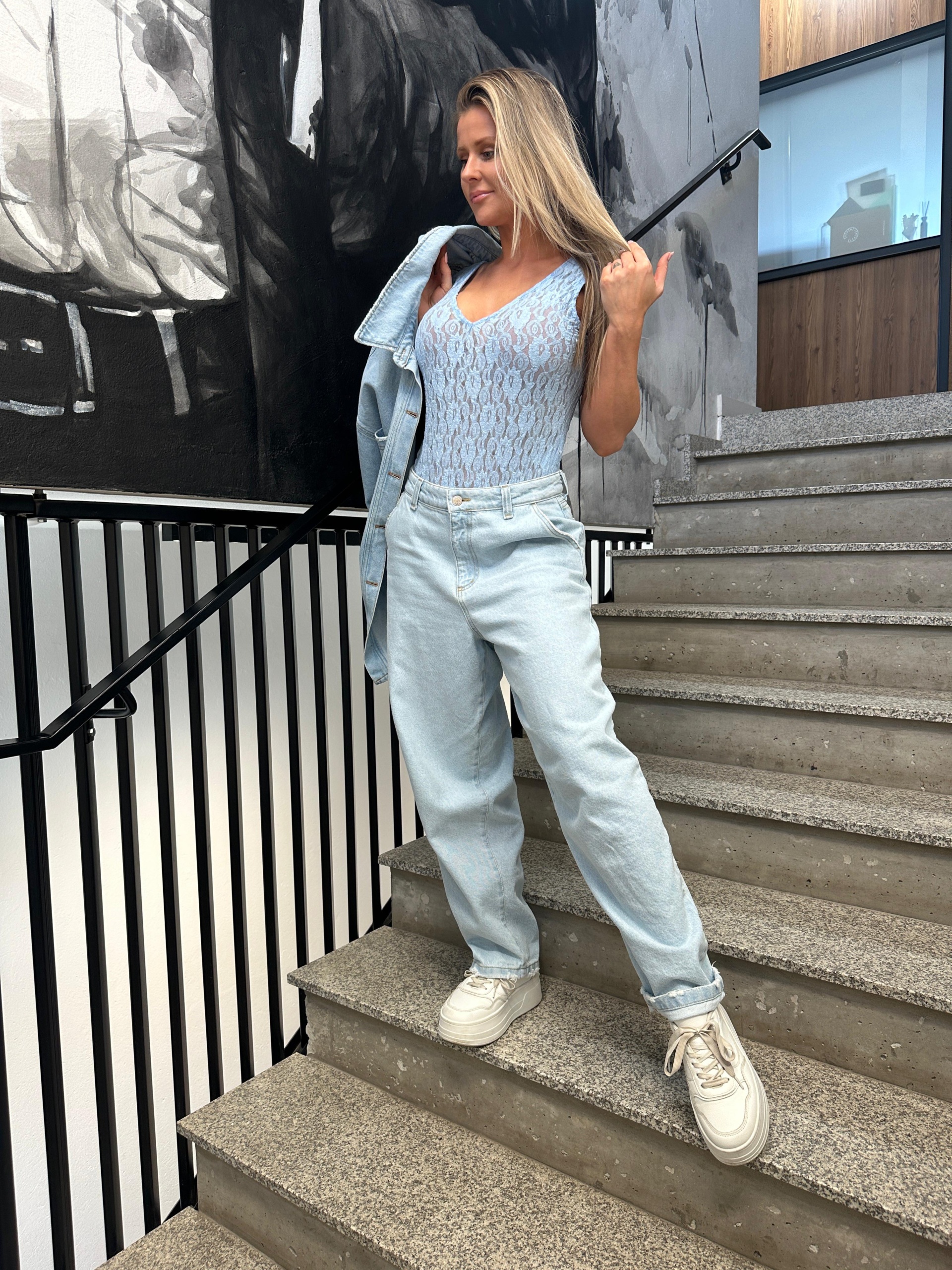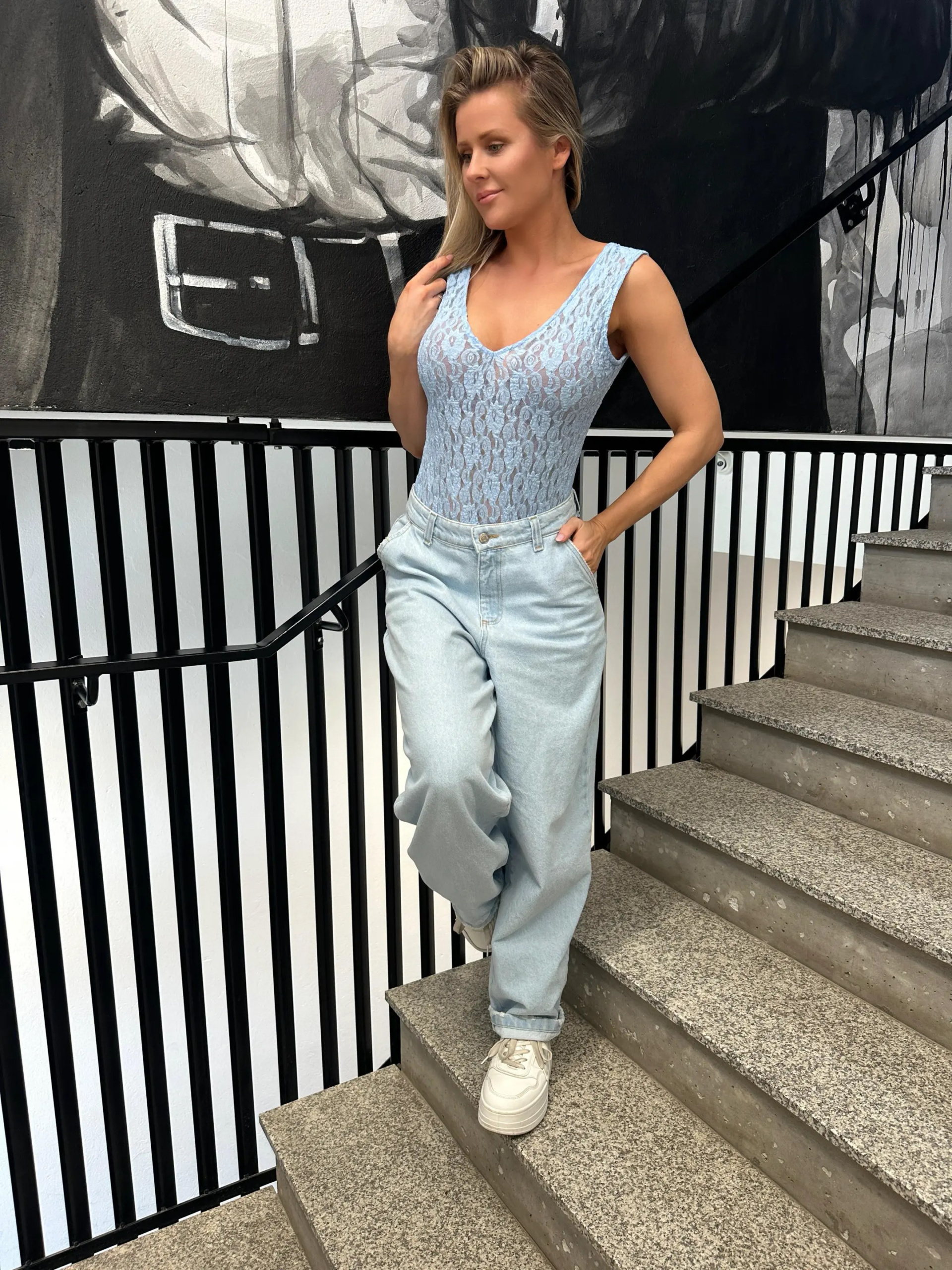 Błękitne body koronkowe z dekoltem V | Lolita | eleganckie body pod marynarkę