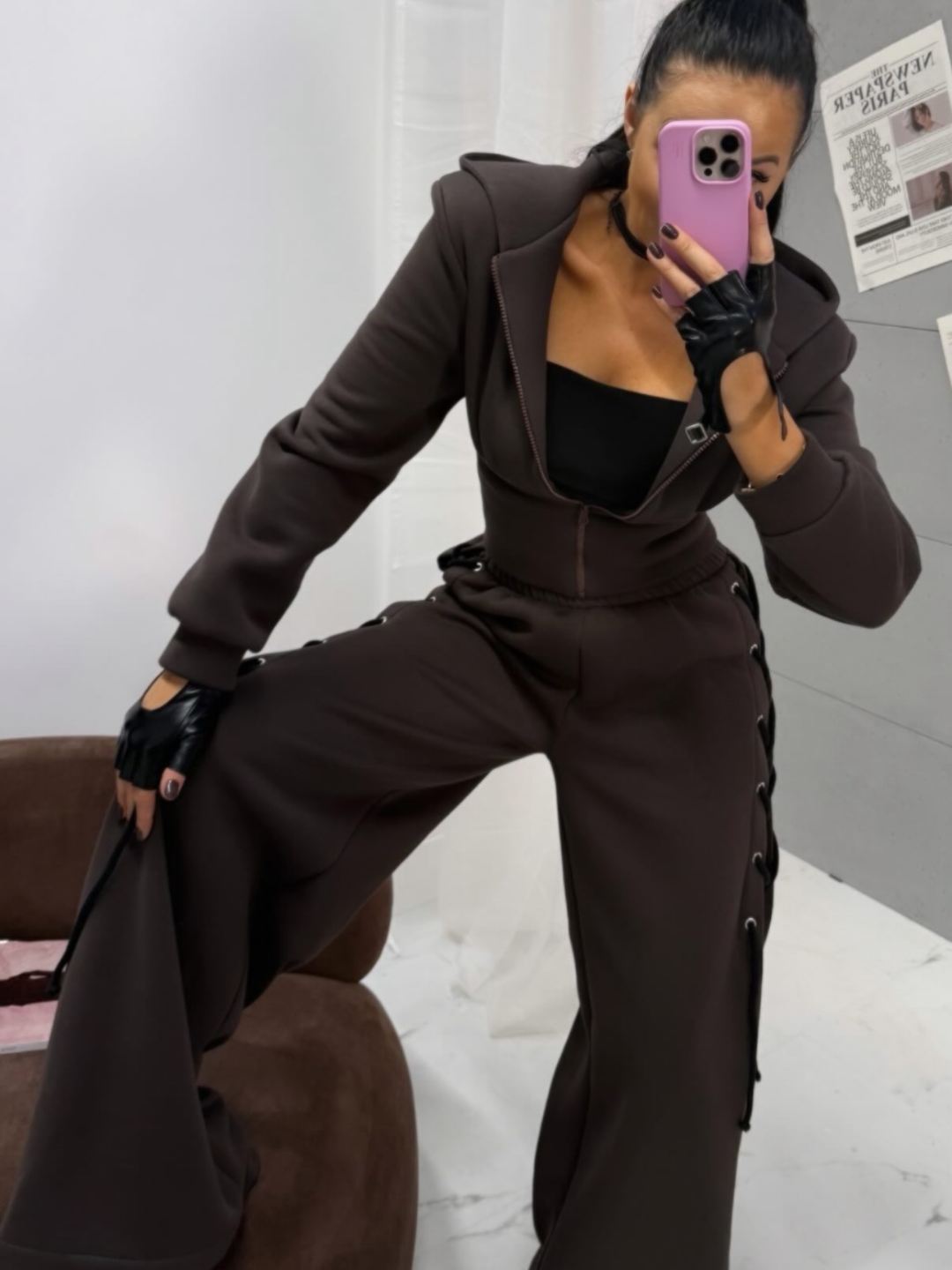 Spódniczka eko skóra wiązana po boku PREMIUM LA MILLA promo – czekoladowa