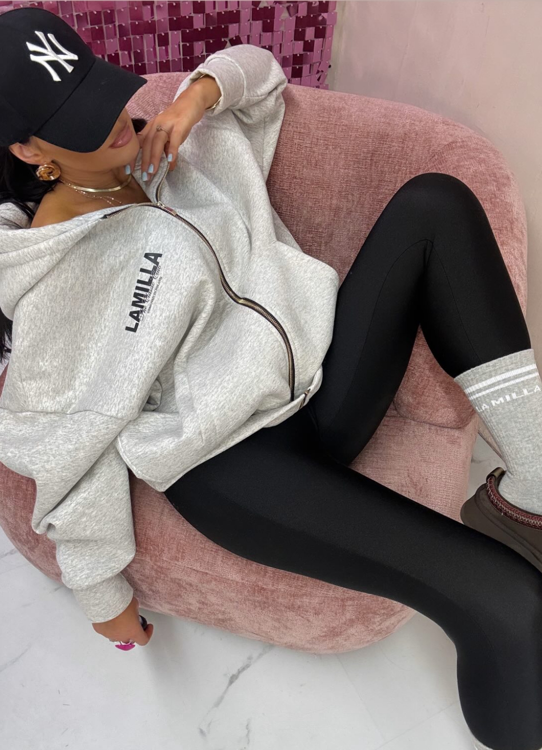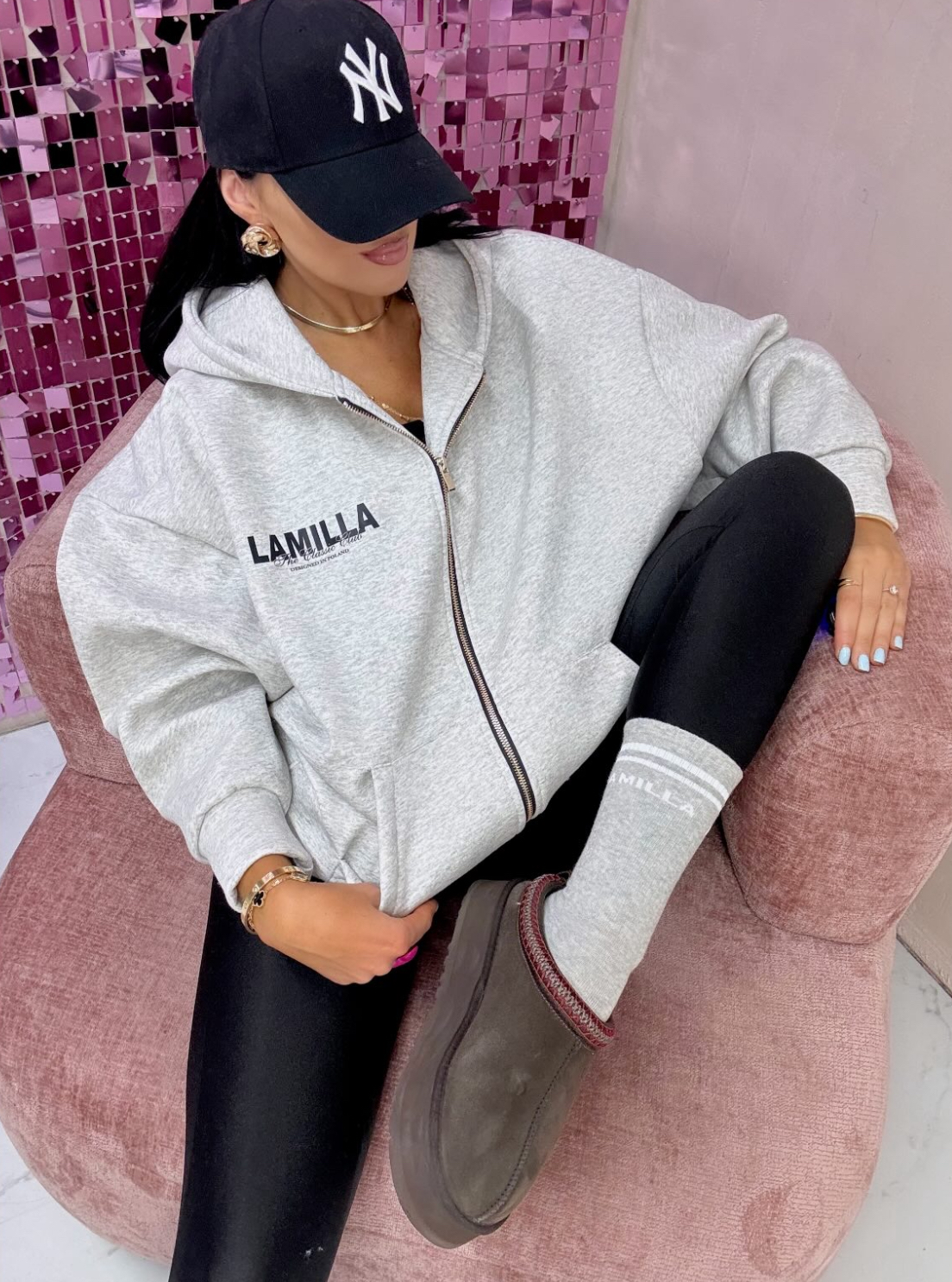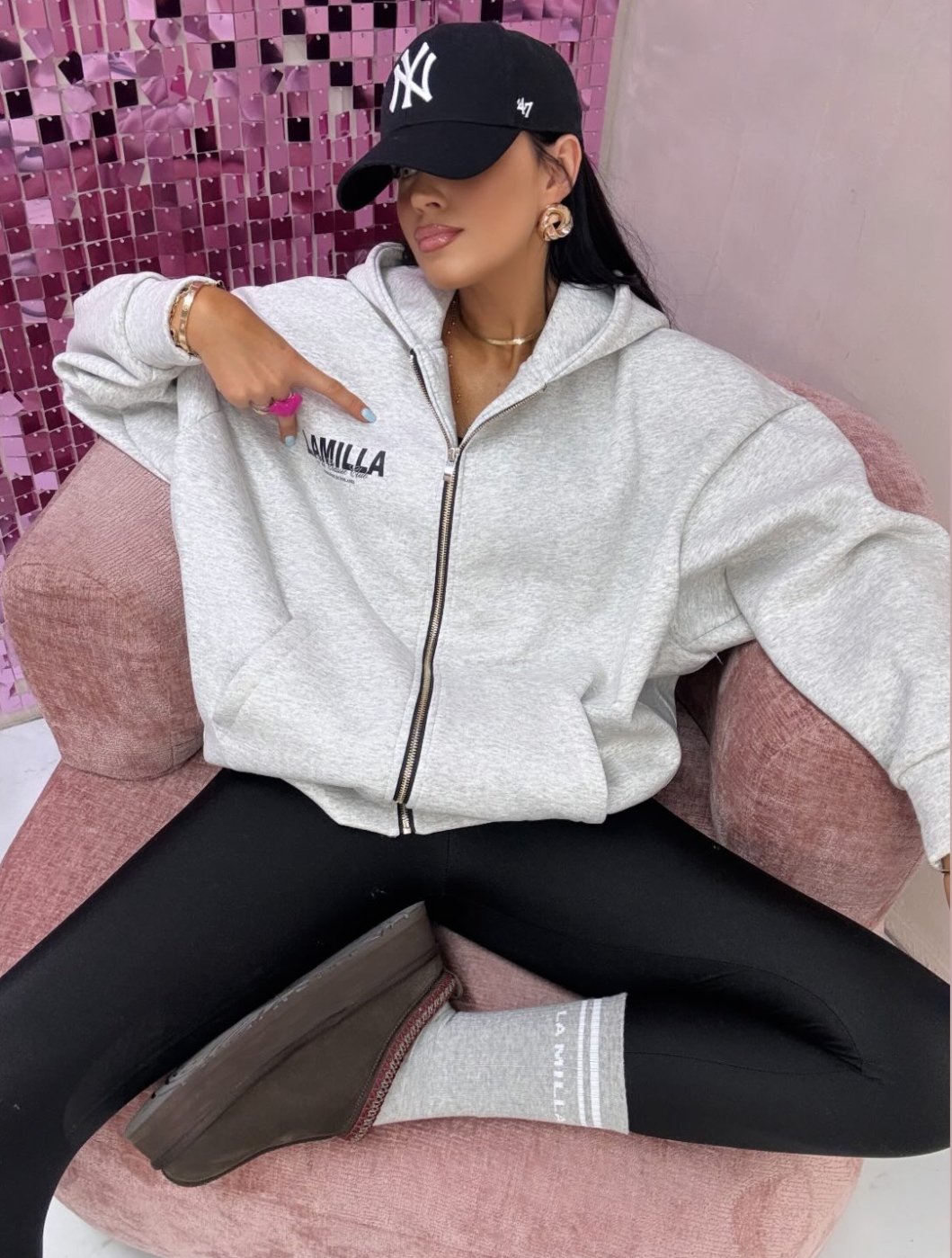 Cudowna ocieplana bluza z Logo La Milla. Zamek idzie przez całą długość. Perfekcyjna propozycja do legginsów lub spodni dresowych. Ocieplenie wnętrz sprawia, ze bluza idealnie będzie się nadawała na chłodniejsze dni jako narzutka , bądź na zimę pod kurteczkę lub płaszczyk.