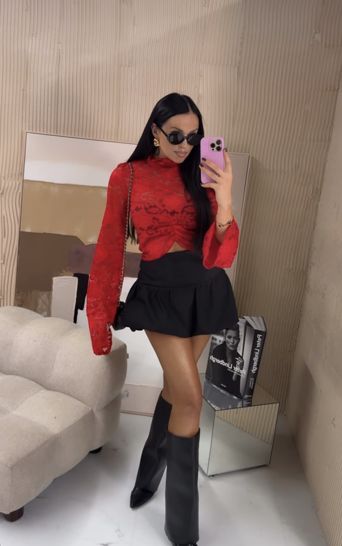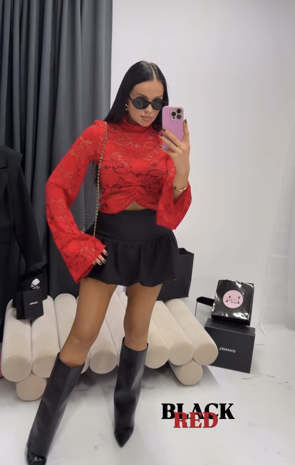 Strona główna La Milla Bluzki Bluzka golf koronkowy BELL SLEEVES La Milla – czerwony