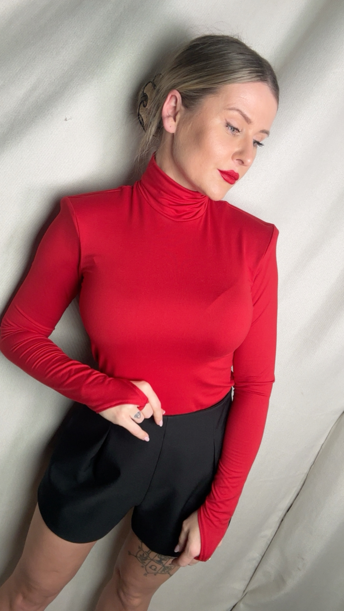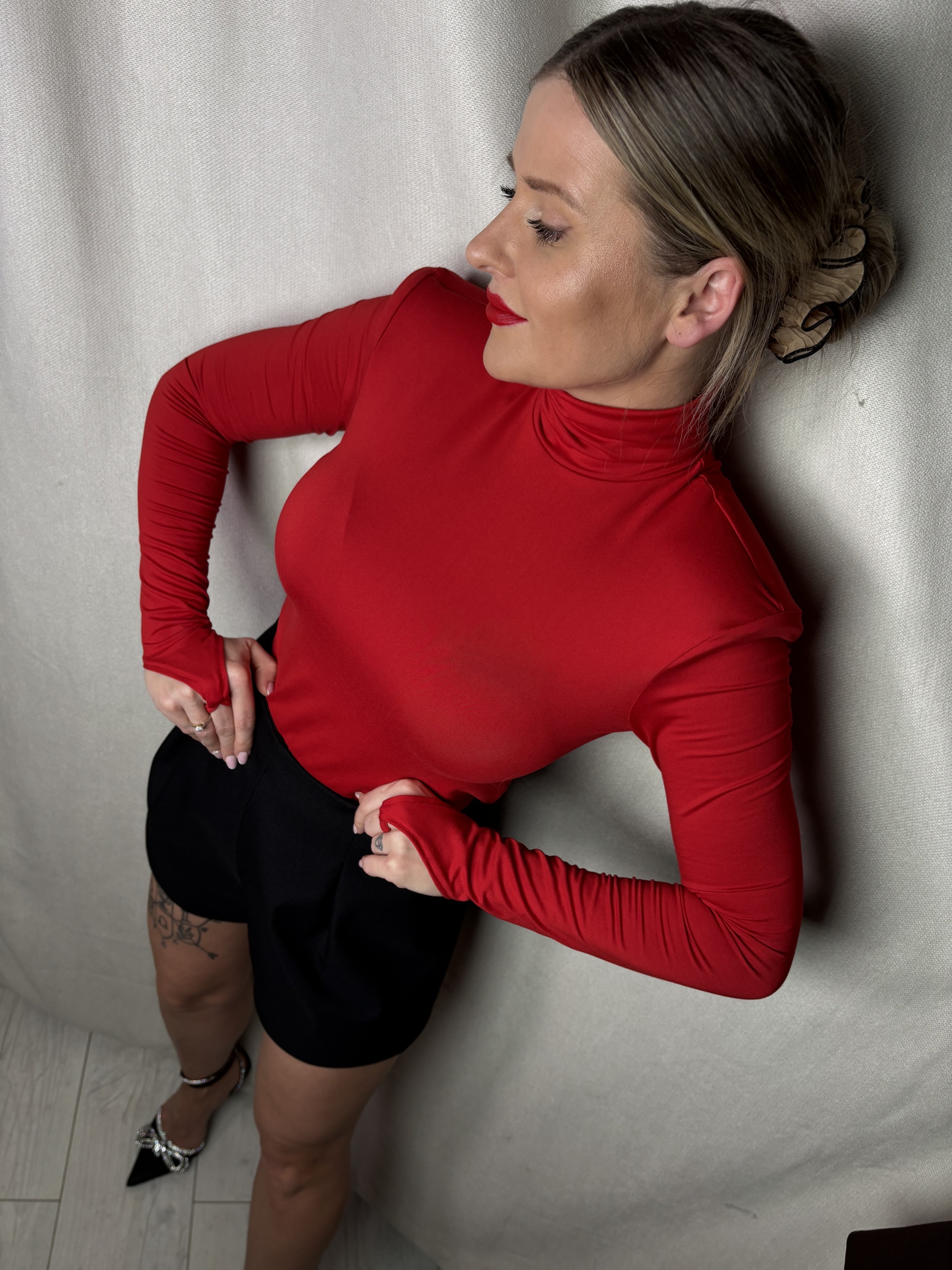Bluzka golf z długim rękawem z pierścionkiem La Milla – czerwony