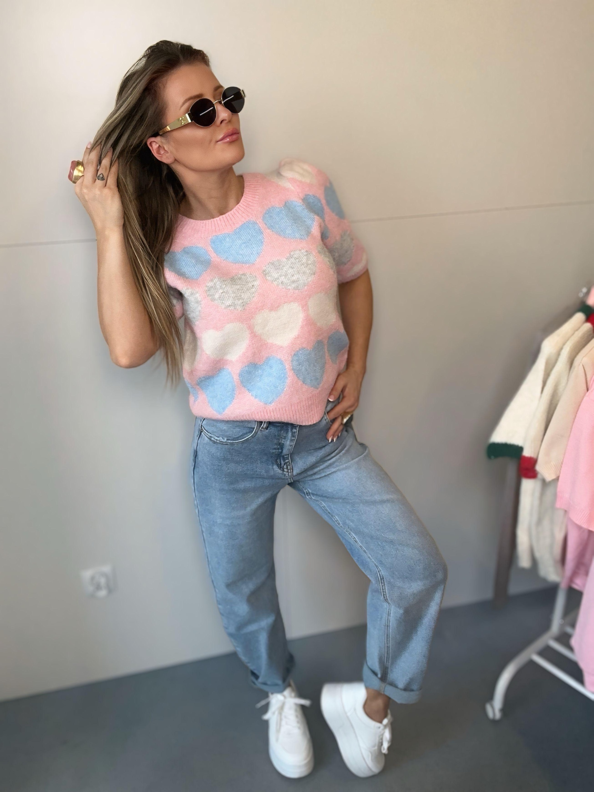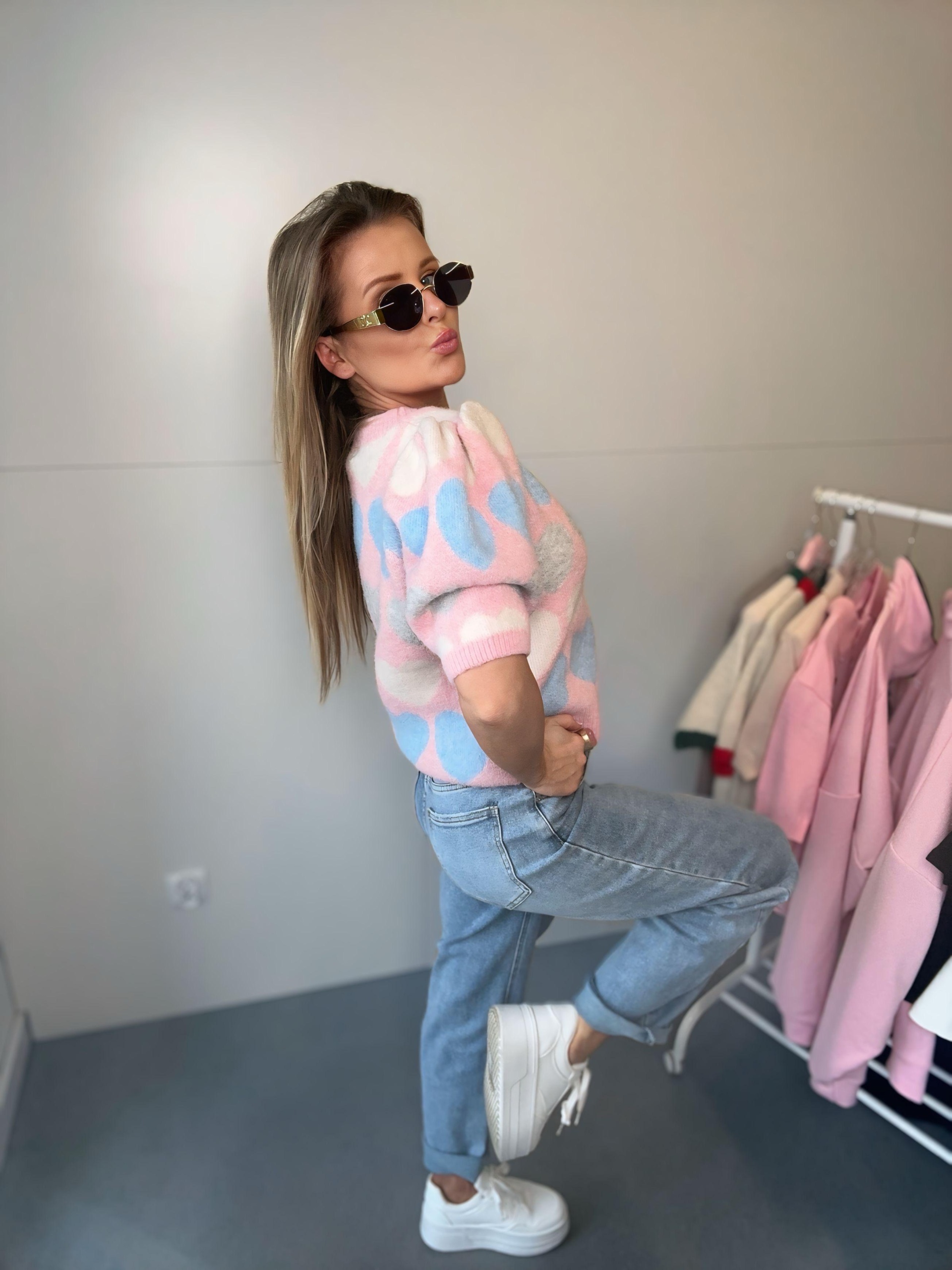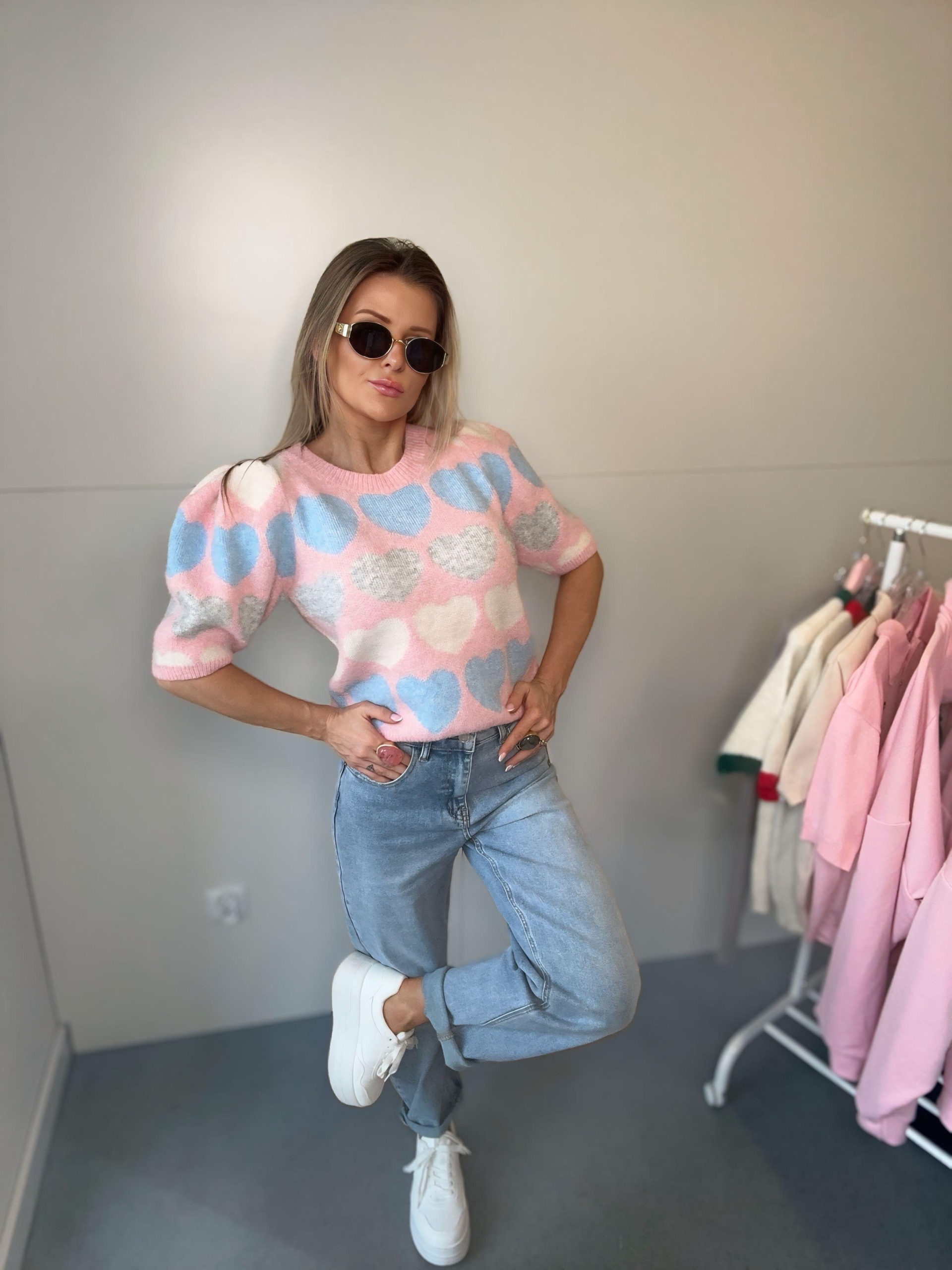 Bluzka sweterkowa z buffkami w serduszka | Lolita | różowo niebieska