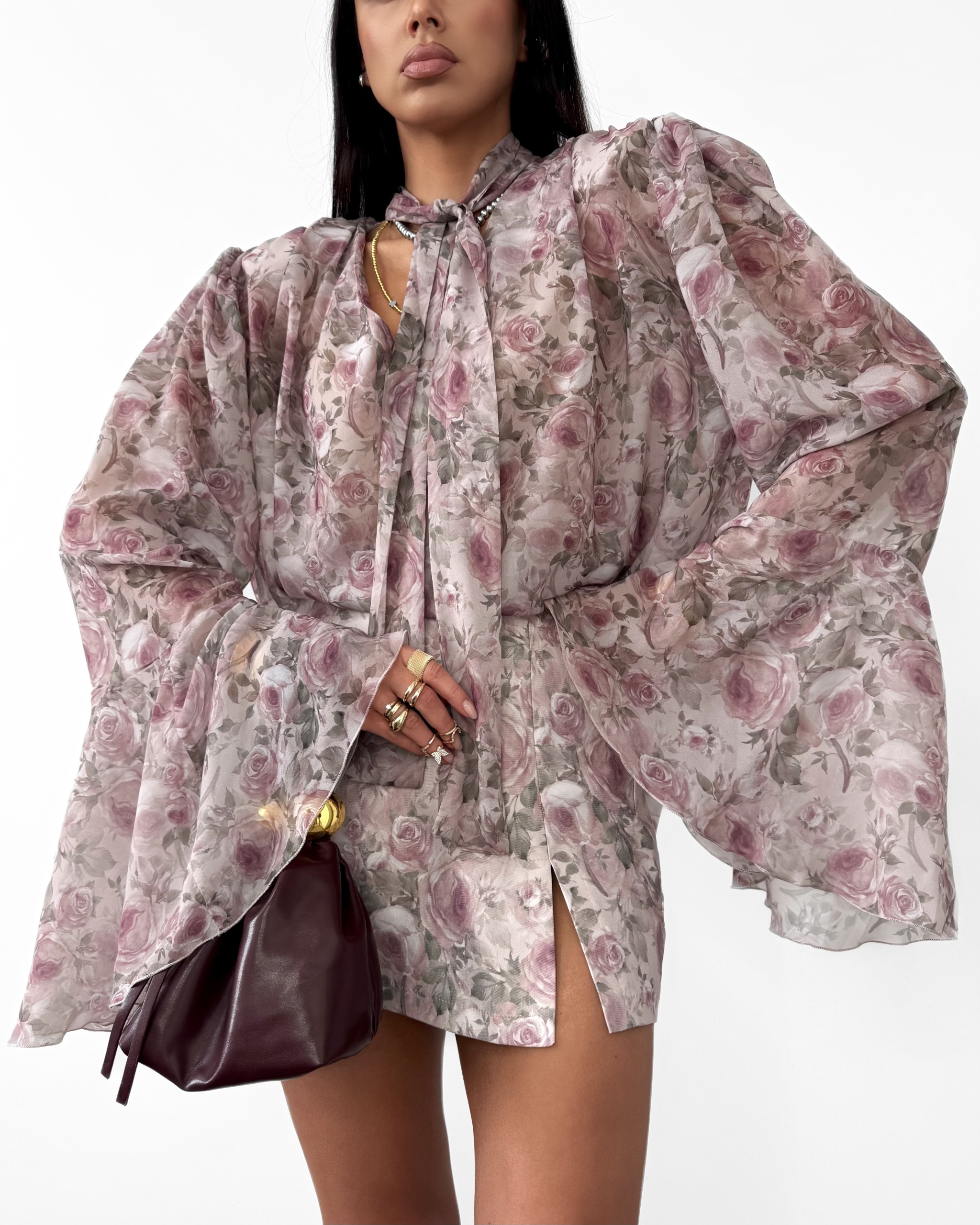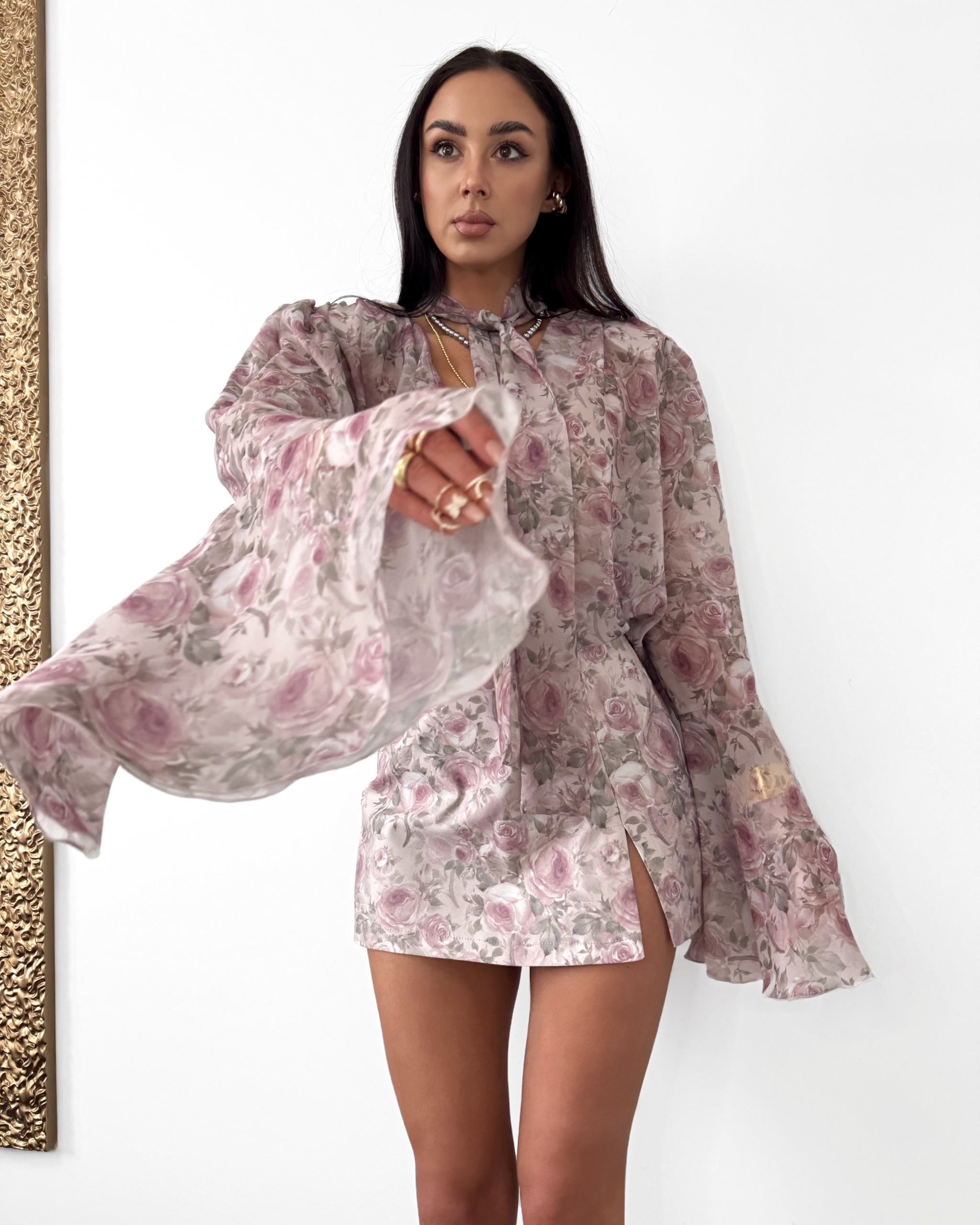 Strona główna La Milla MEGA JESIEŃ - nowa kolekcja Bluzka szeroki rękaw zwiewna w kwiaty La Milla- beżowo różowa
