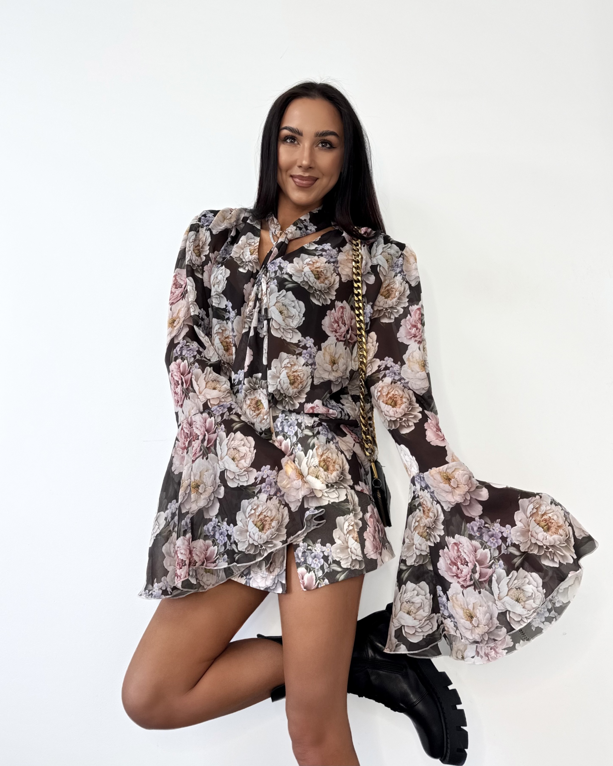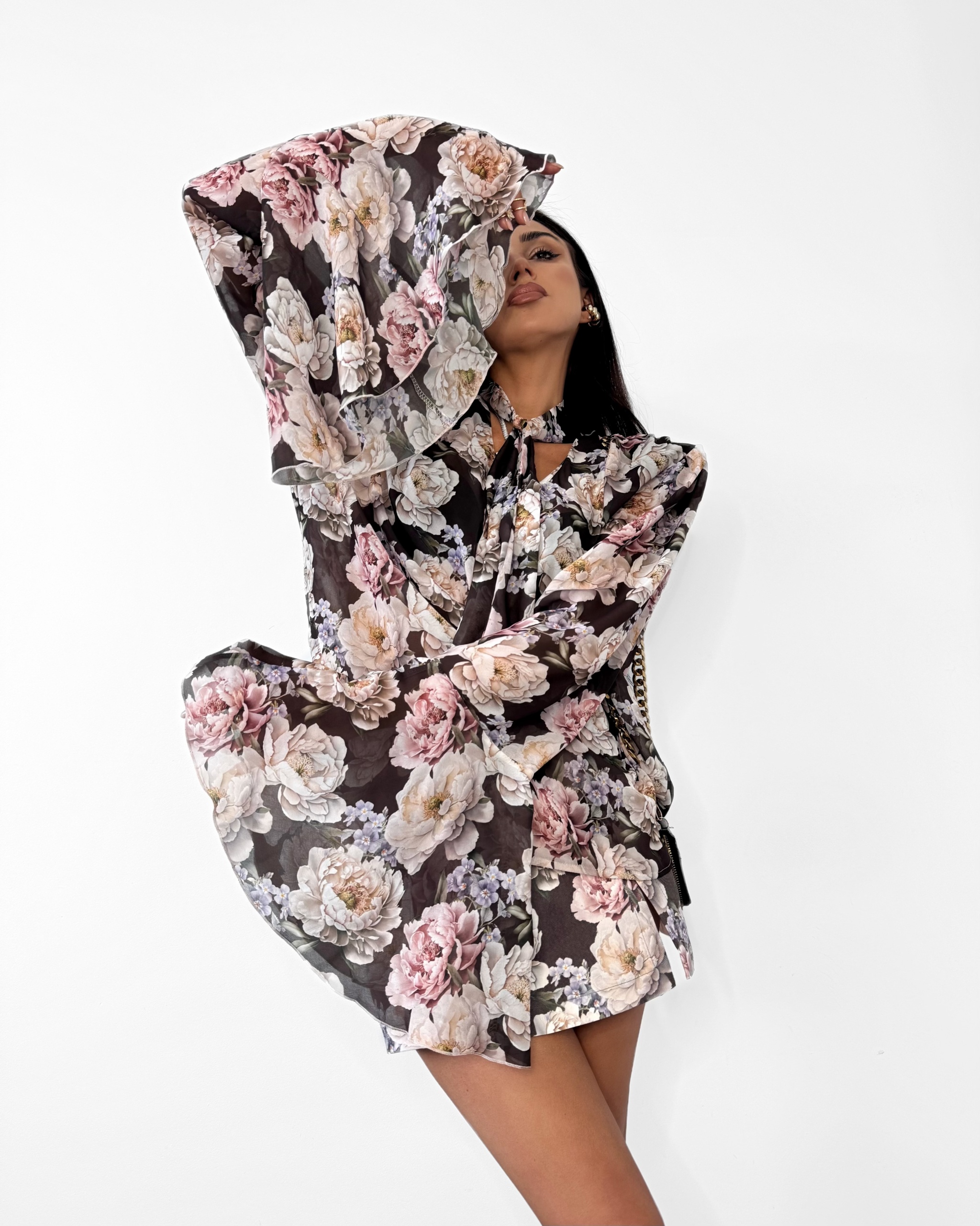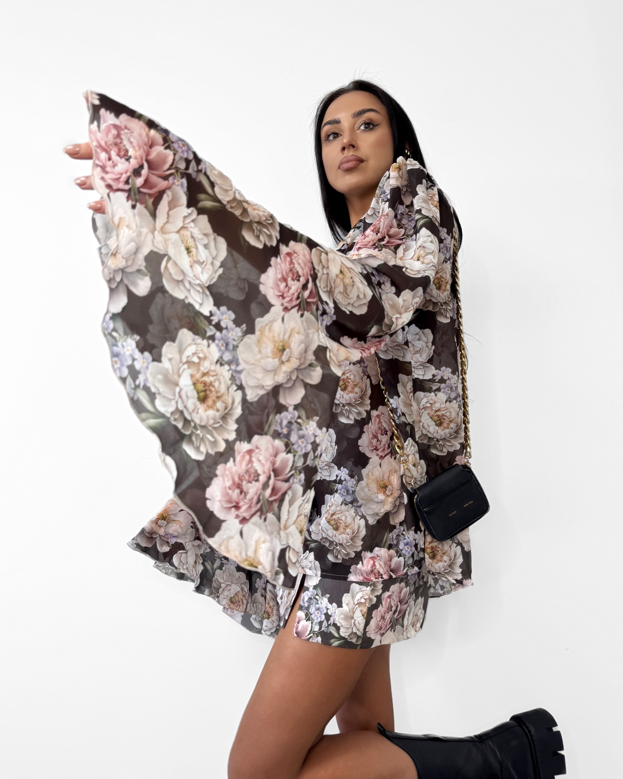 Strona główna La Milla Bluzki Bluzka szeroki rękaw zwiewna w kwiaty La Milla- brązowo beżowa