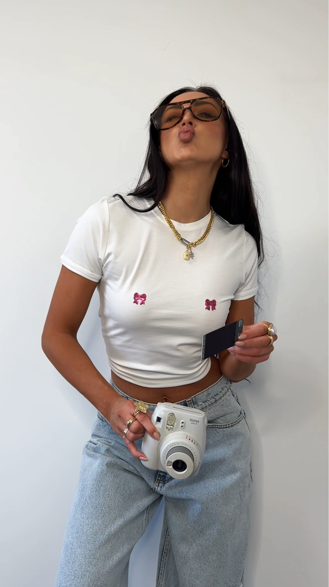 Strona główna HALLOWEEN „-20%” Bluzka t-shirt dopasowany wstążki La Milla – biały