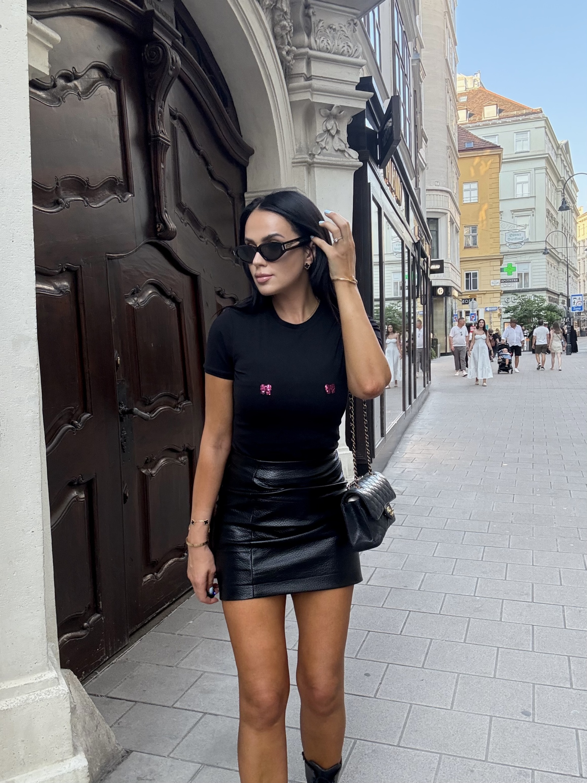 Bluzka t-shirt dopasowany truskawki La Milla - czarny