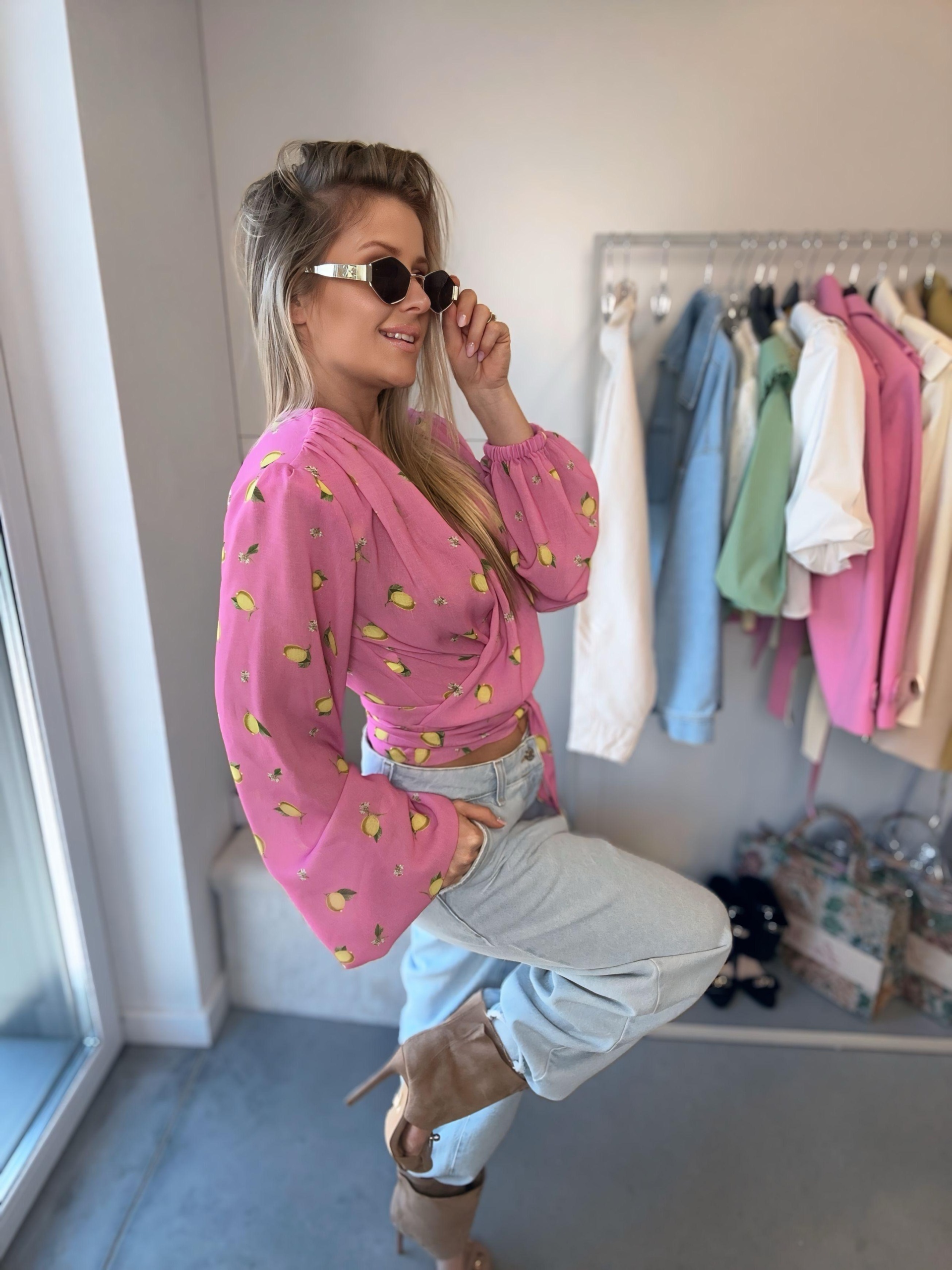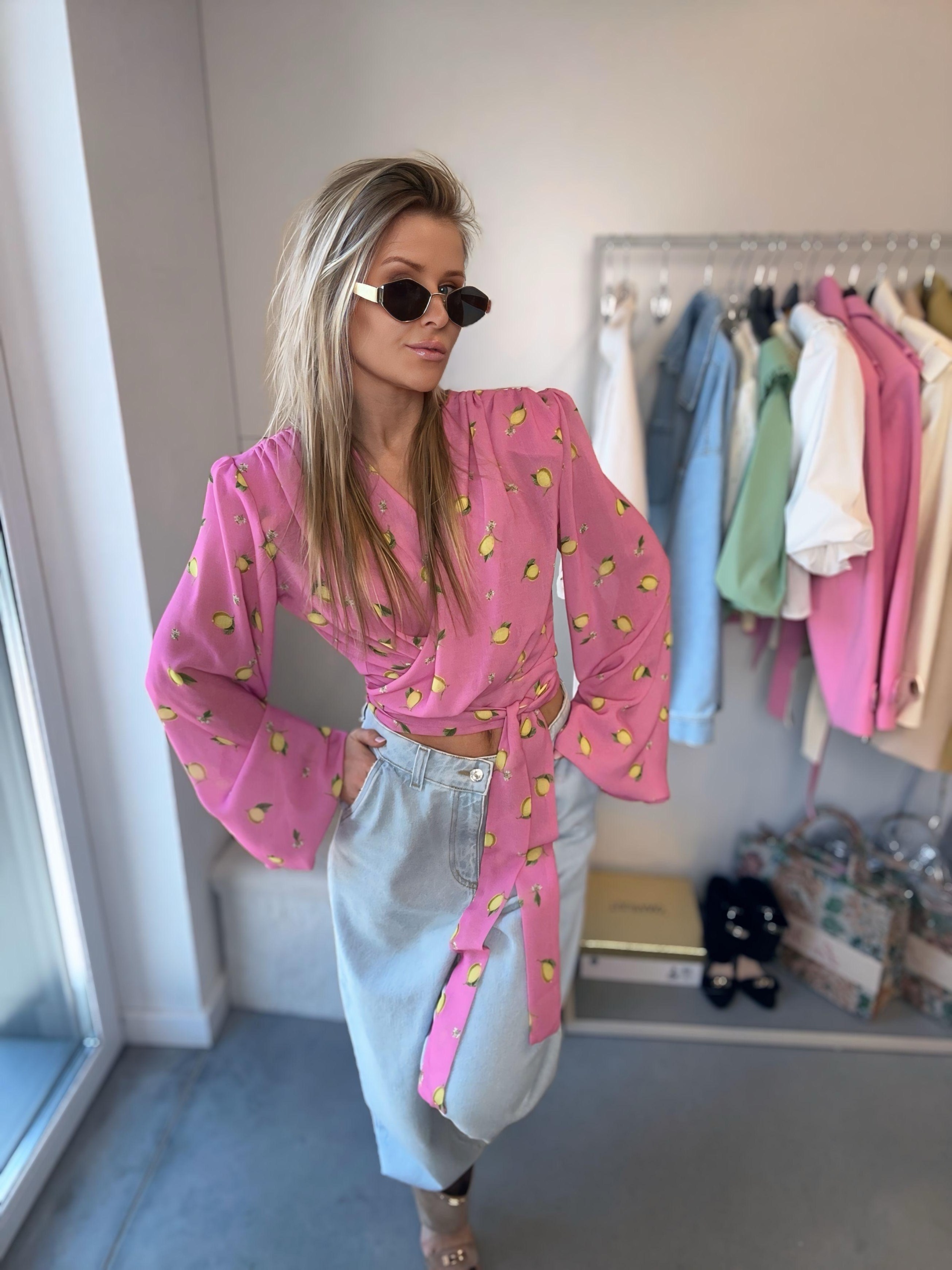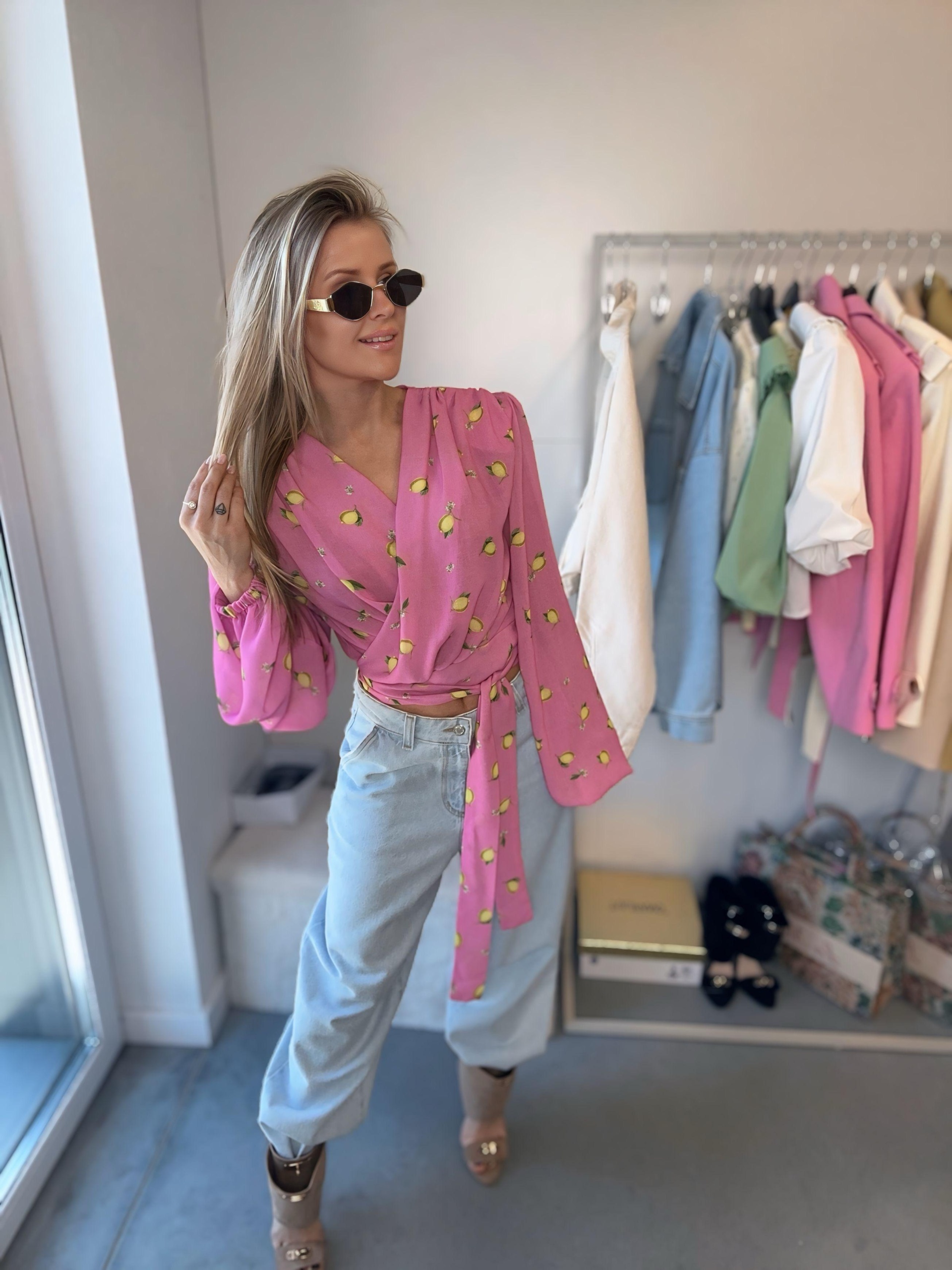 Strona główna Odzież damska Bluzki Bluzka wiskozowa wiązana w cytryny | La Milla | różowa