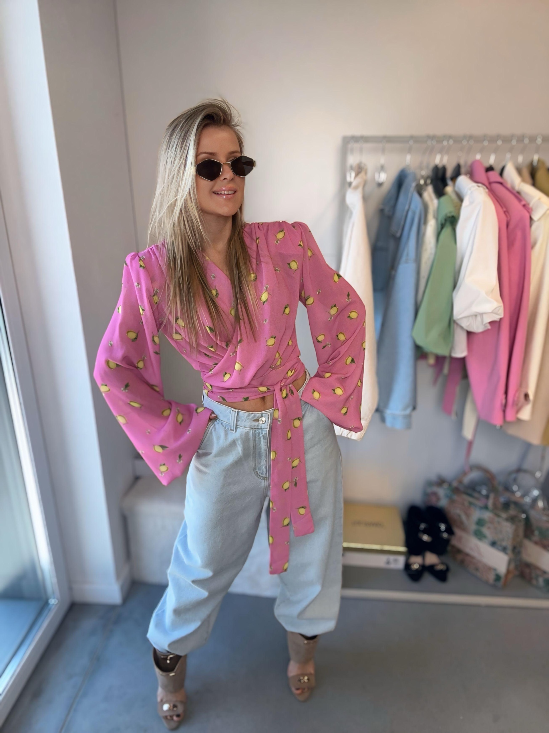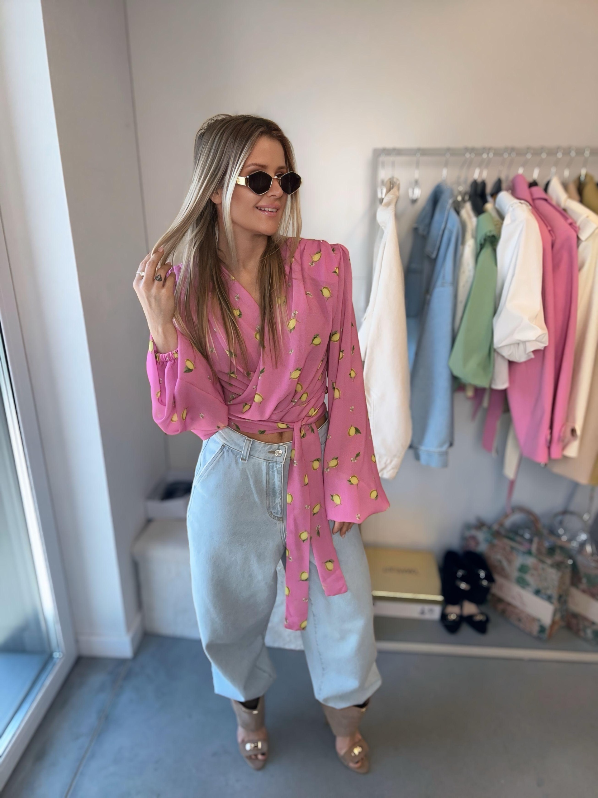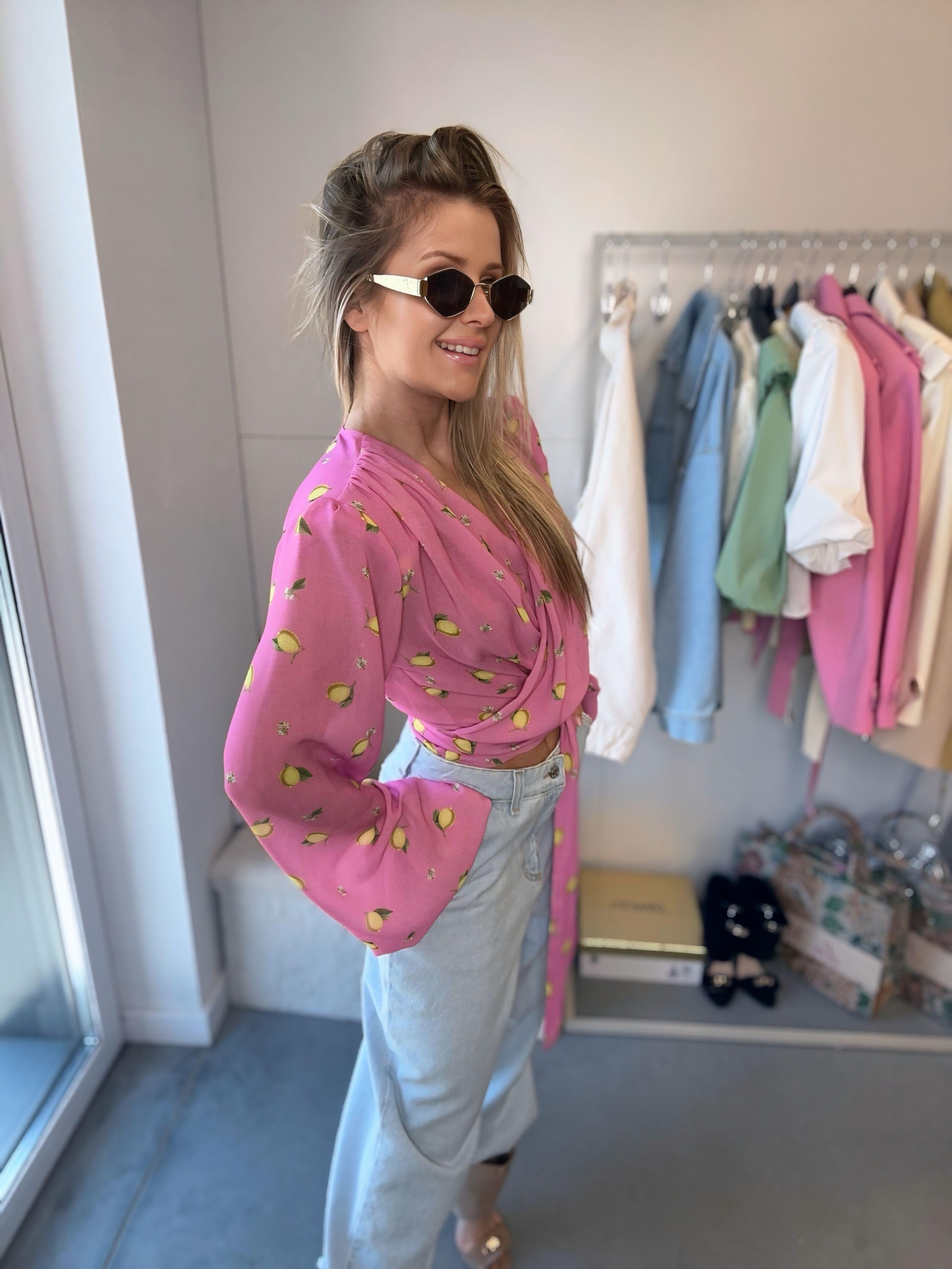Strona główna Odzież damska Bluzki Bluzka wiskozowa wiązana w cytryny | La Milla | różowa