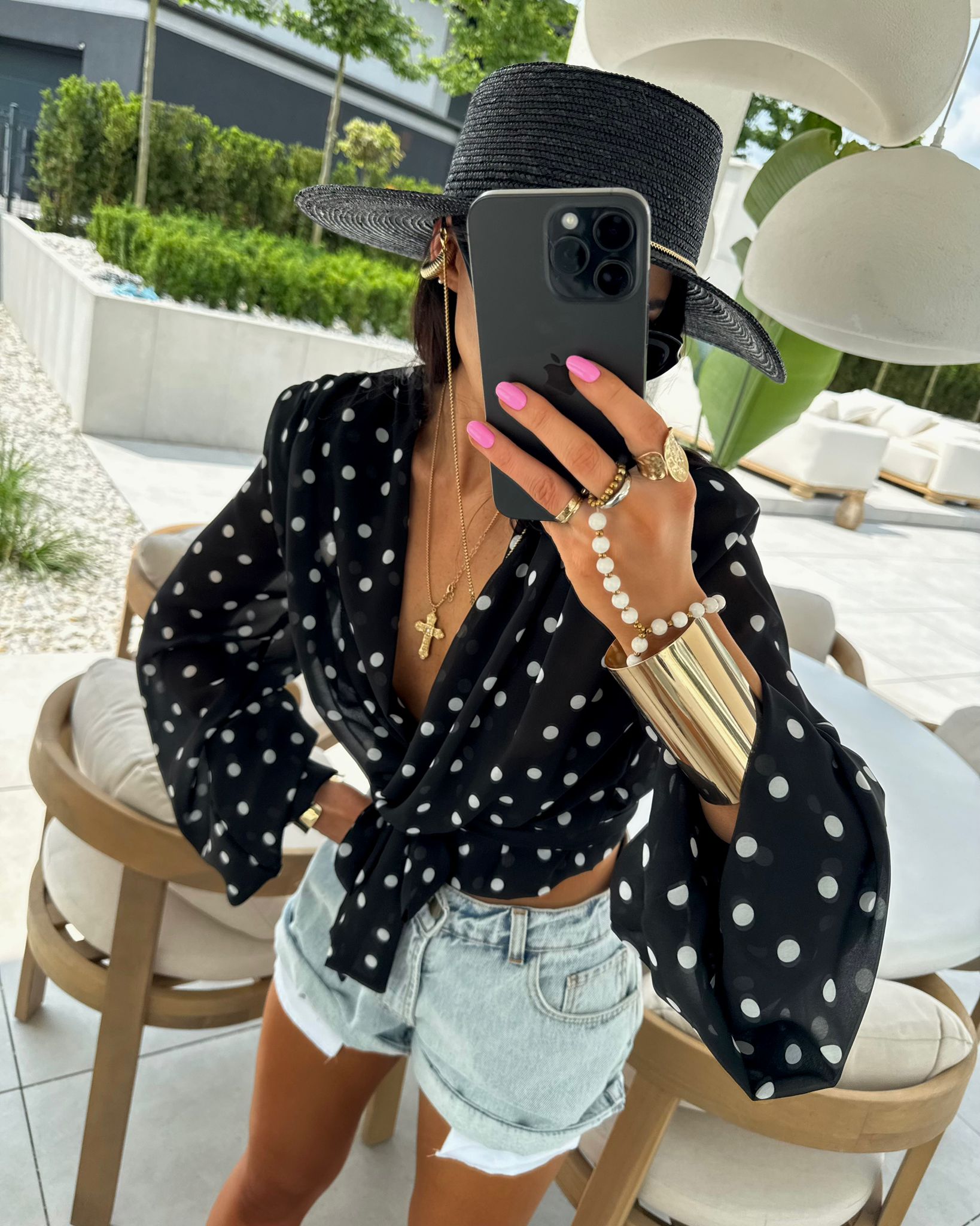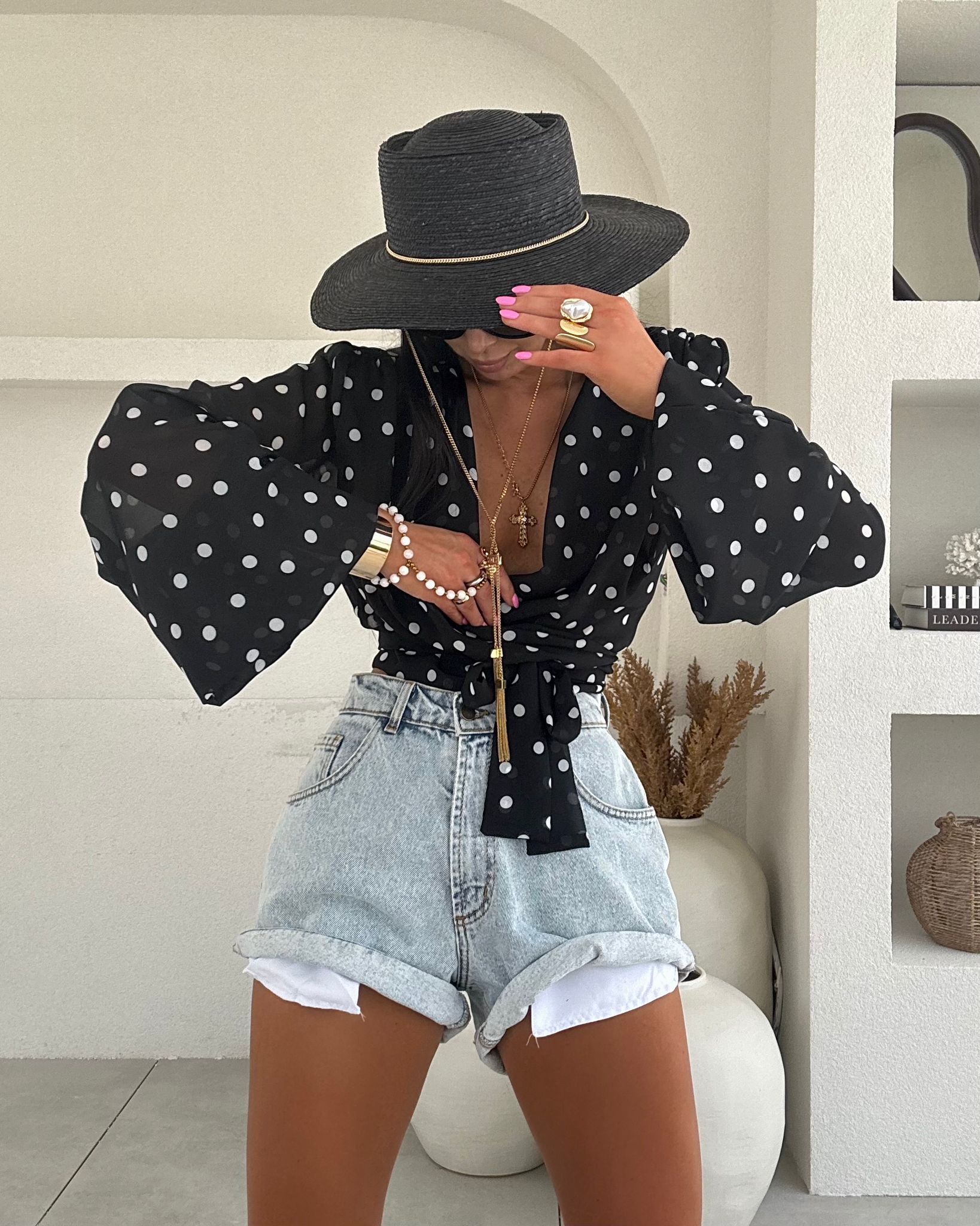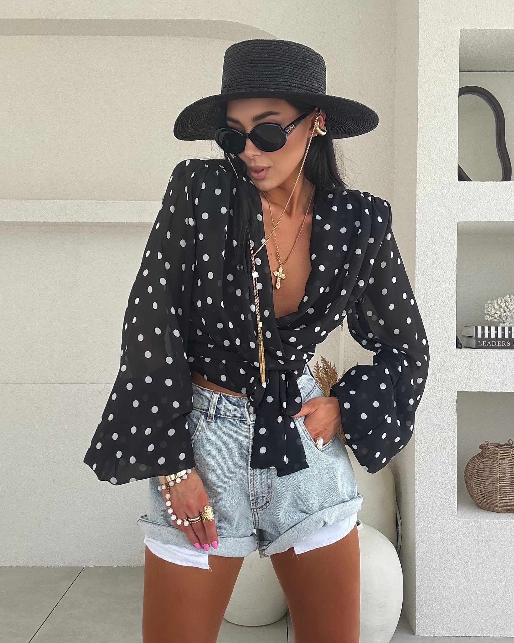 Bluzka wiskozowa wiązana w grochy La Milla – czarna