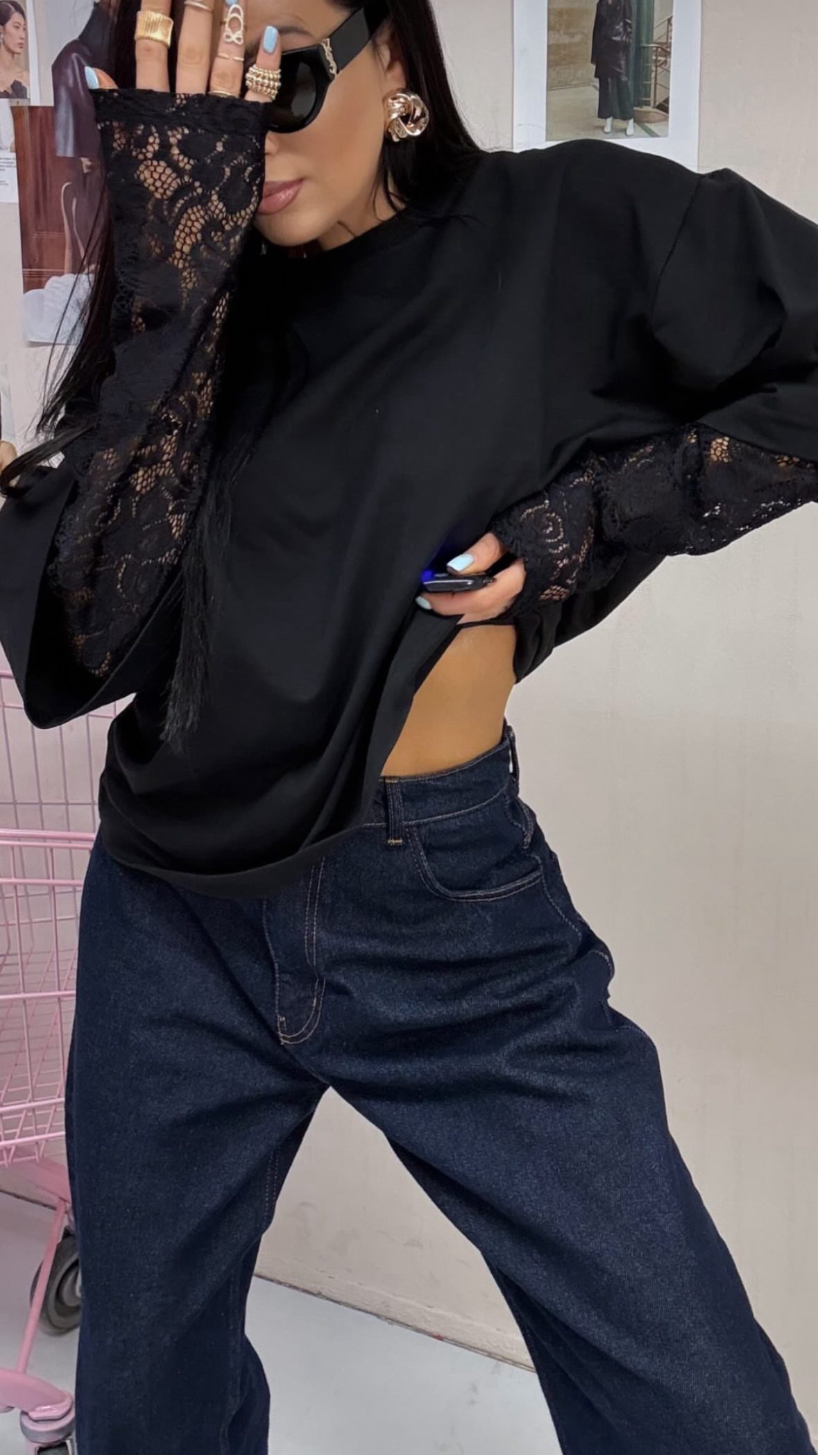 Cudownej jakości bluzka z rękawem z koronki. To idealna propozycja do różnych stylizacji, począwszy od pięknych spódnico – spodenek koronka, poprzez legginsy aż do spodni eleganckich i marynarki.