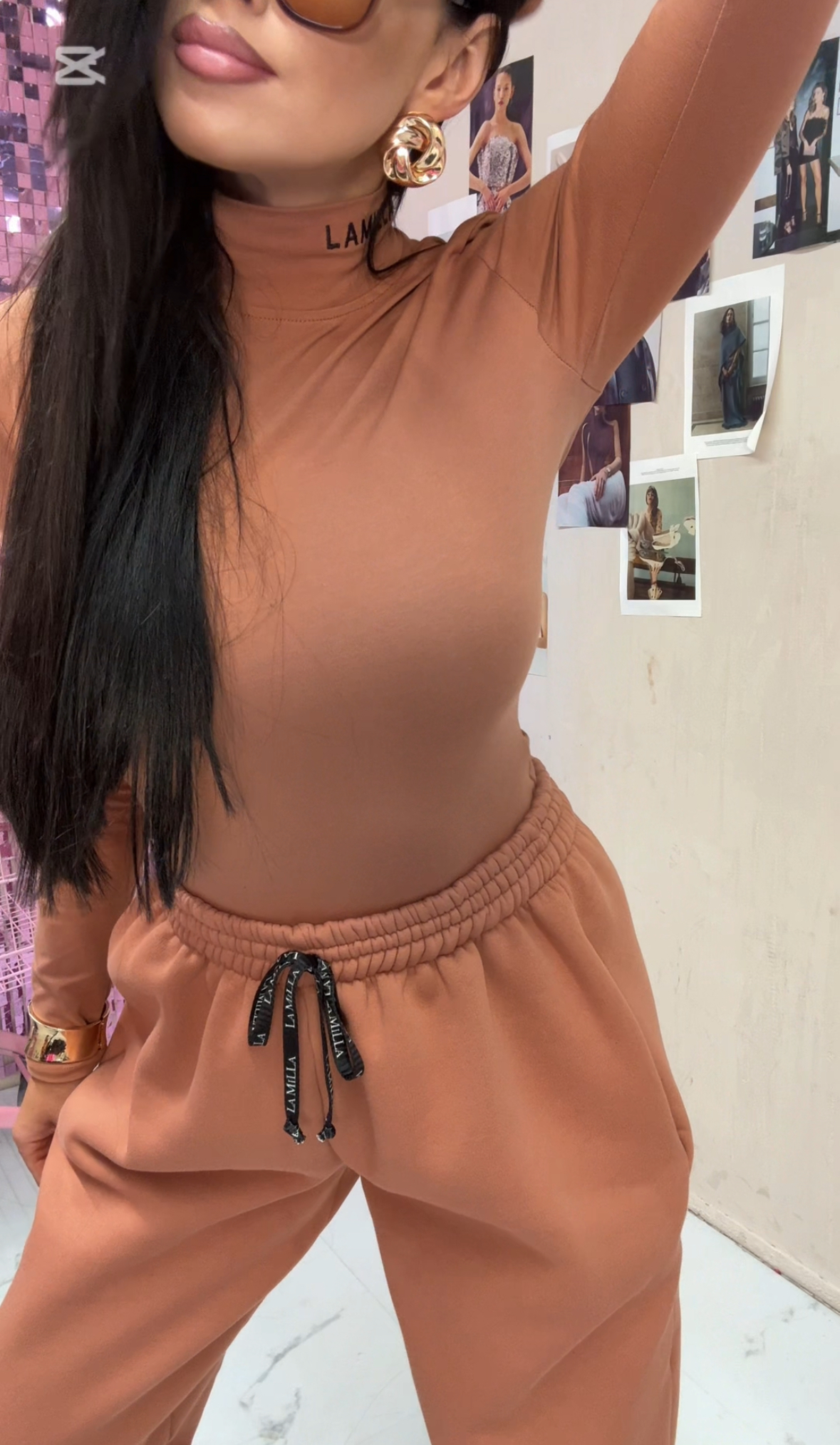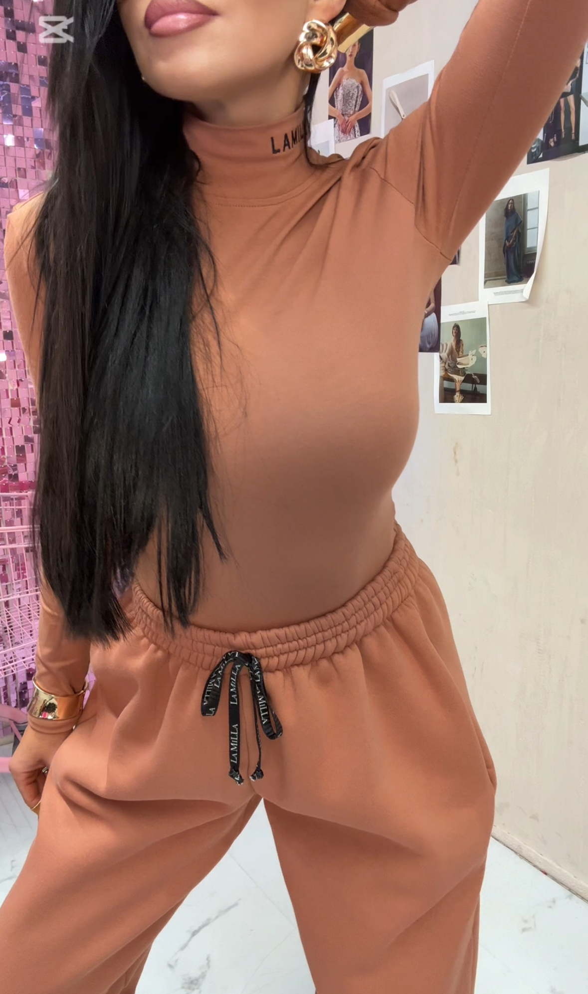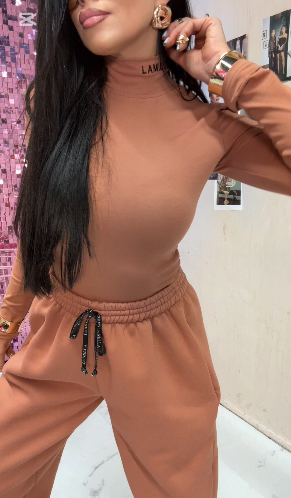 Strona główna La Milla Bluzki Body golf z długim rękawem logo La Milla – karmelowe