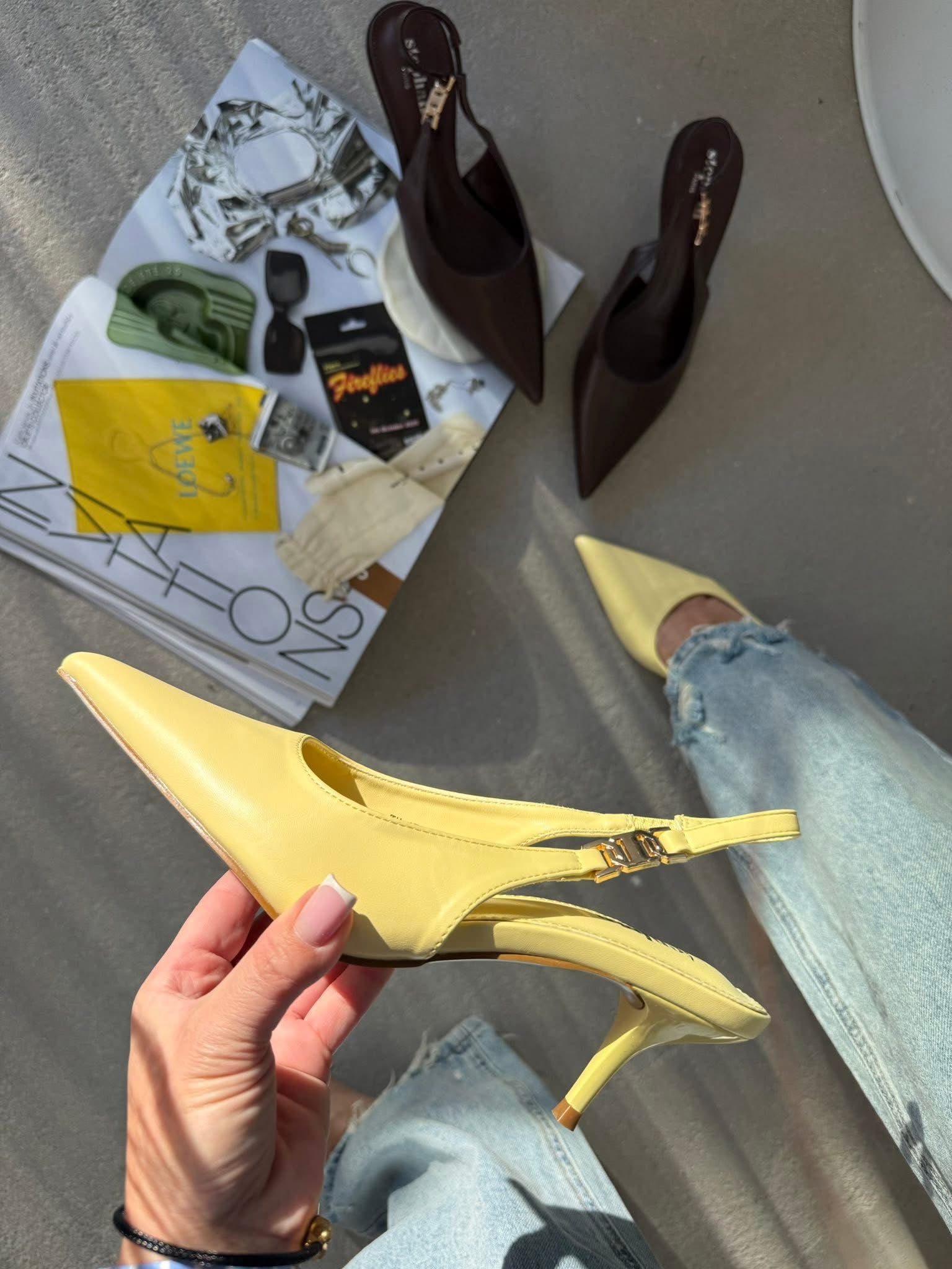 Eleganckie buty na obcasie o wysokości 7 cm, które idealnie łączą nowoczesną formę z kobiecą lekkością. Smukły, spiczasty nosek pięknie wysmukla stopę, a odkryta pięta z delikatnym zapięciem dodaje całości subtelnego, stylowego charakteru. Stabilny obcas zapewnia komfort noszenia, dzięki czemu model sprawdzi się zarówno na co dzień, jak i na wyjątkowe okazje. Doskonały wybór do eleganckich stylizacji, ale także jako modny akcent do casualowych zestawów z jeansami czy sukienką.