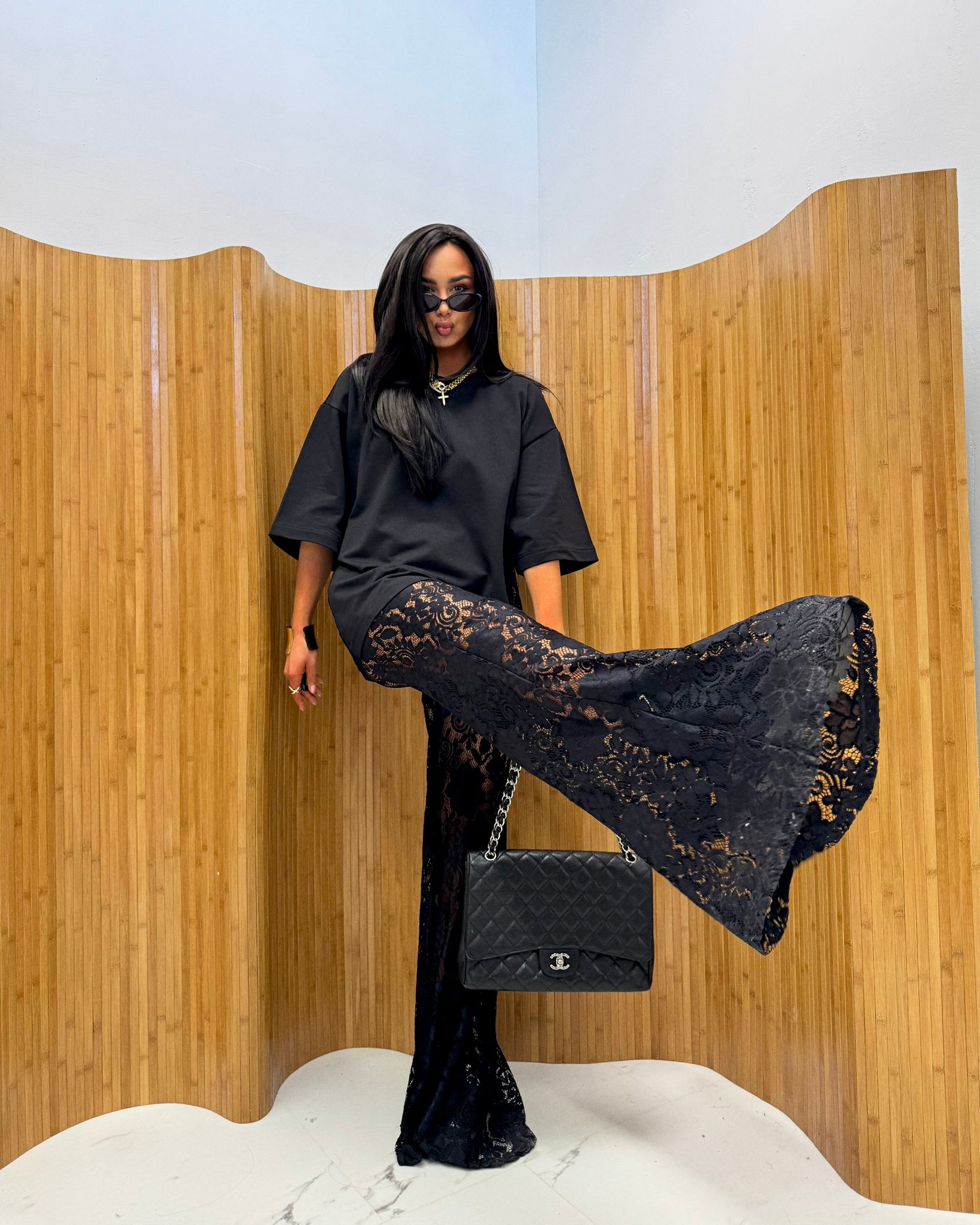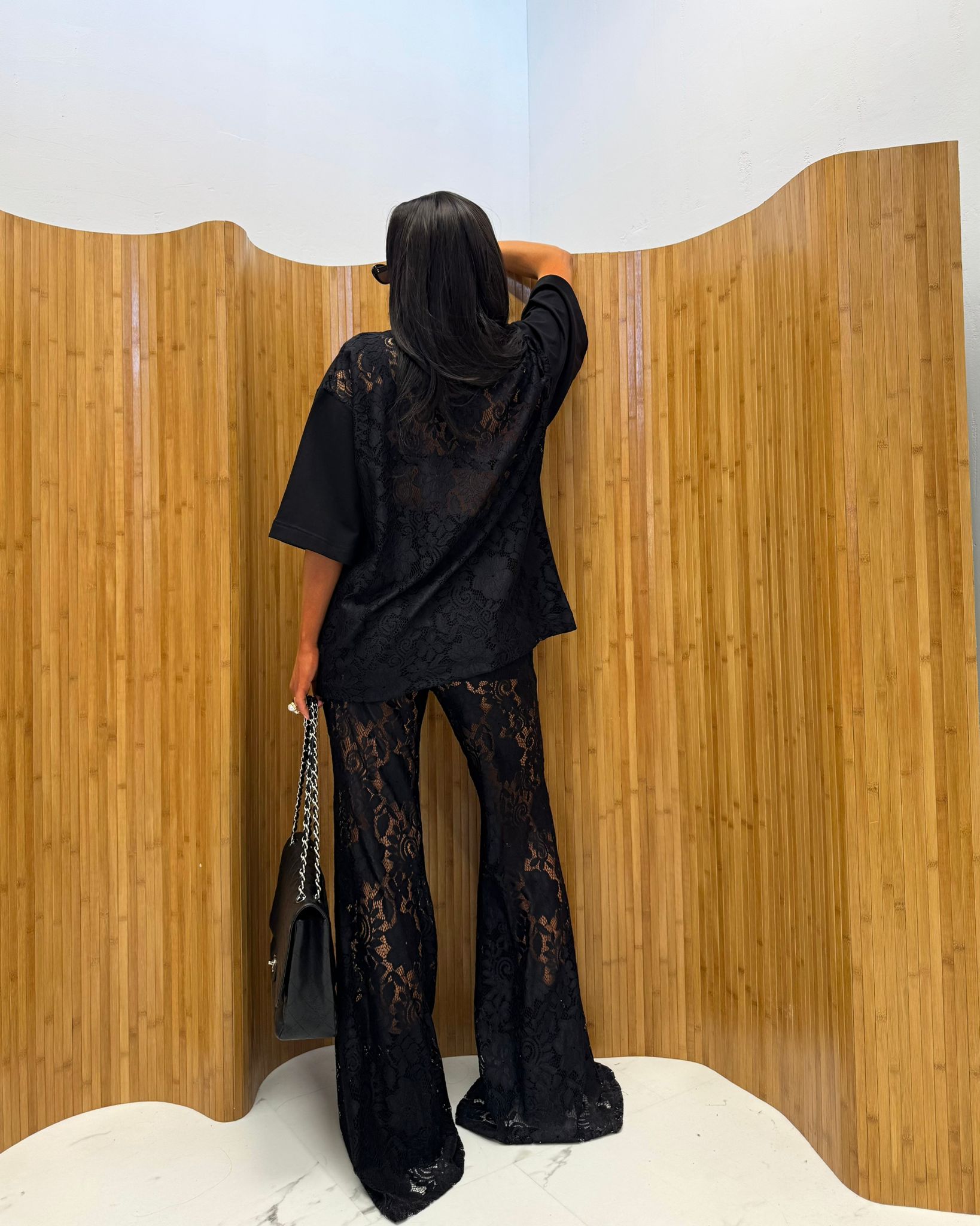 Czarny T-shirt z koronką na plecach La Milla – modna damska bluzka typu oversize