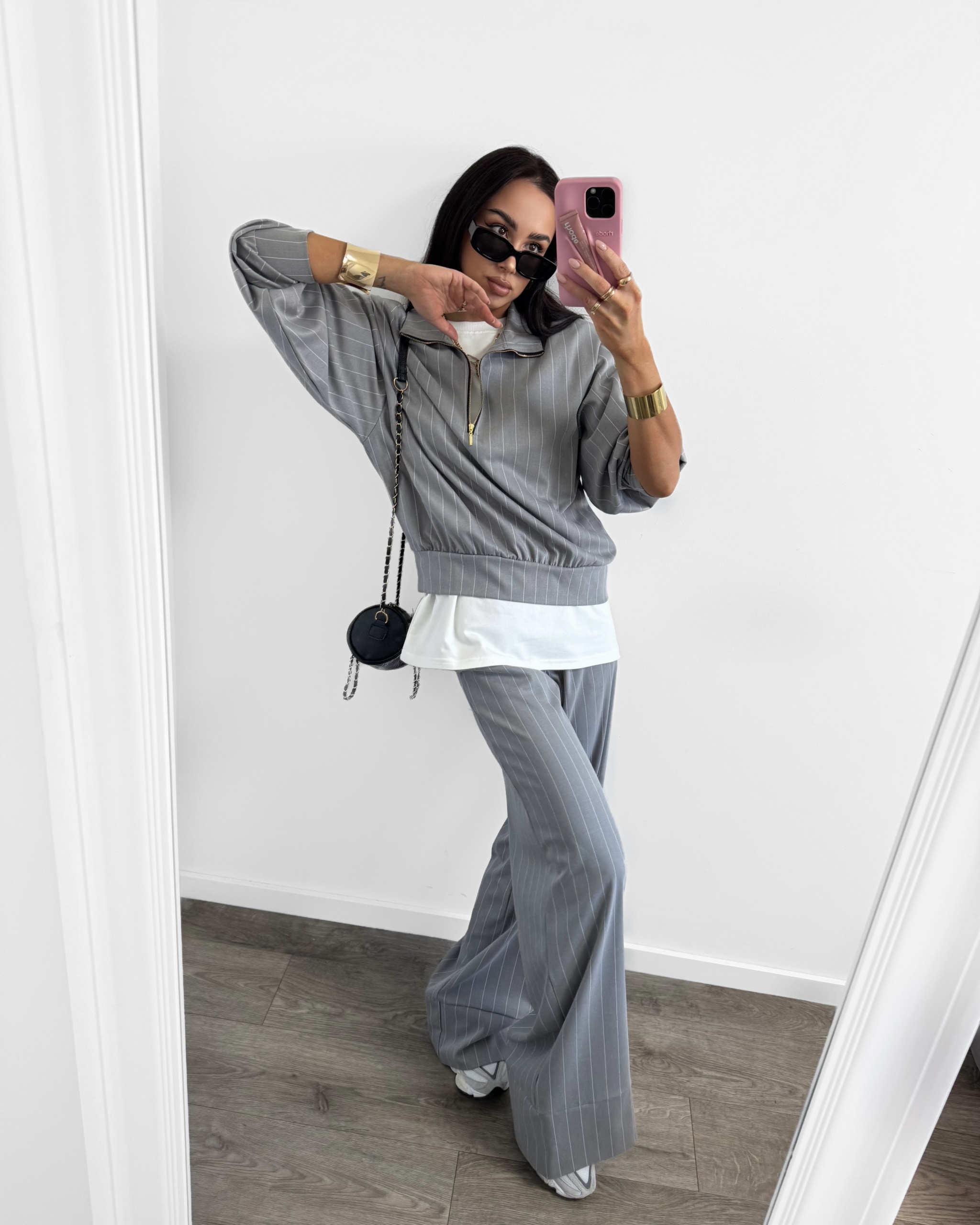 Strona główna La Milla MEGA JESIEŃ - nowa kolekcja Dres elegancki w białe linie La Milla – szary