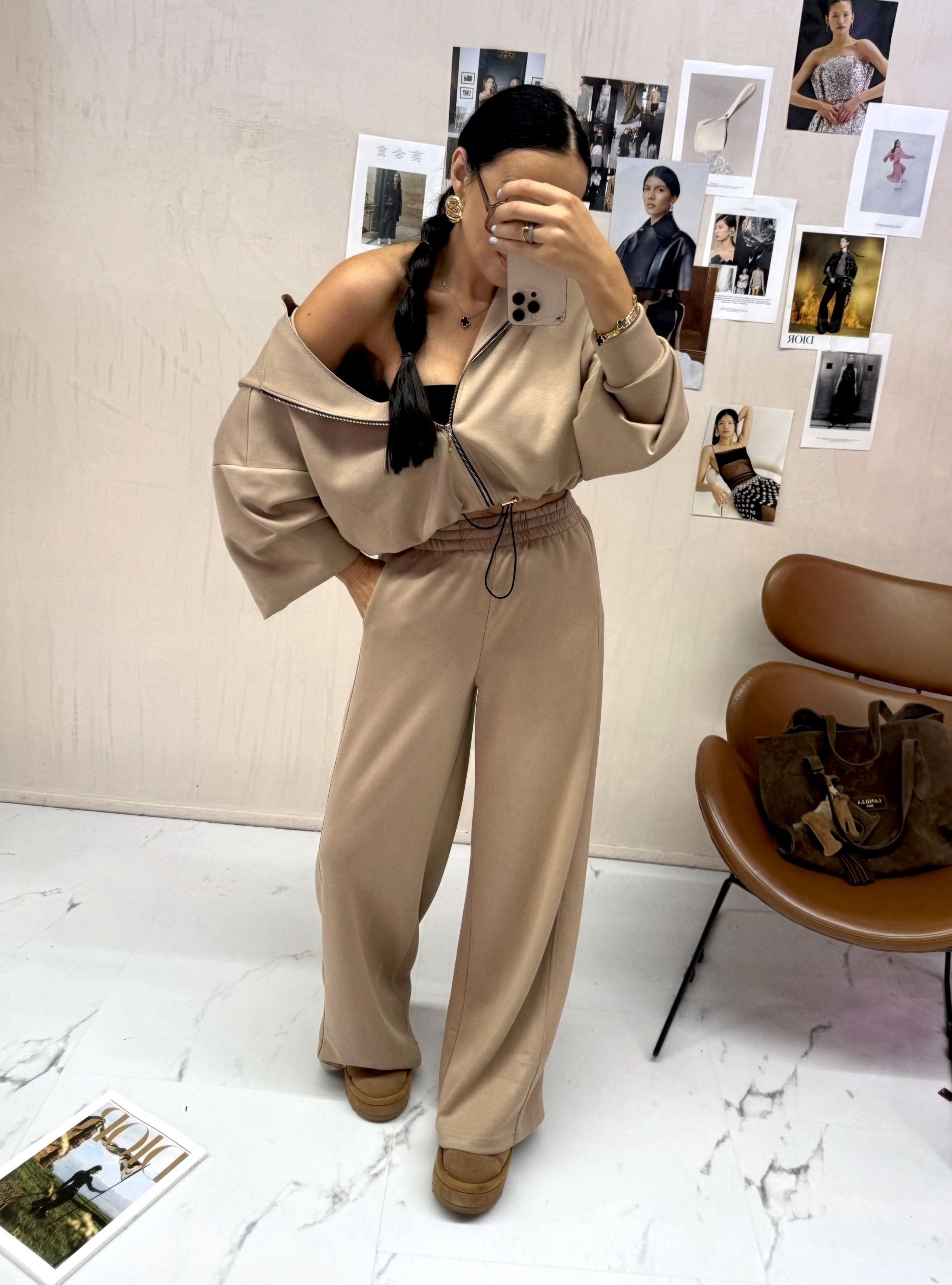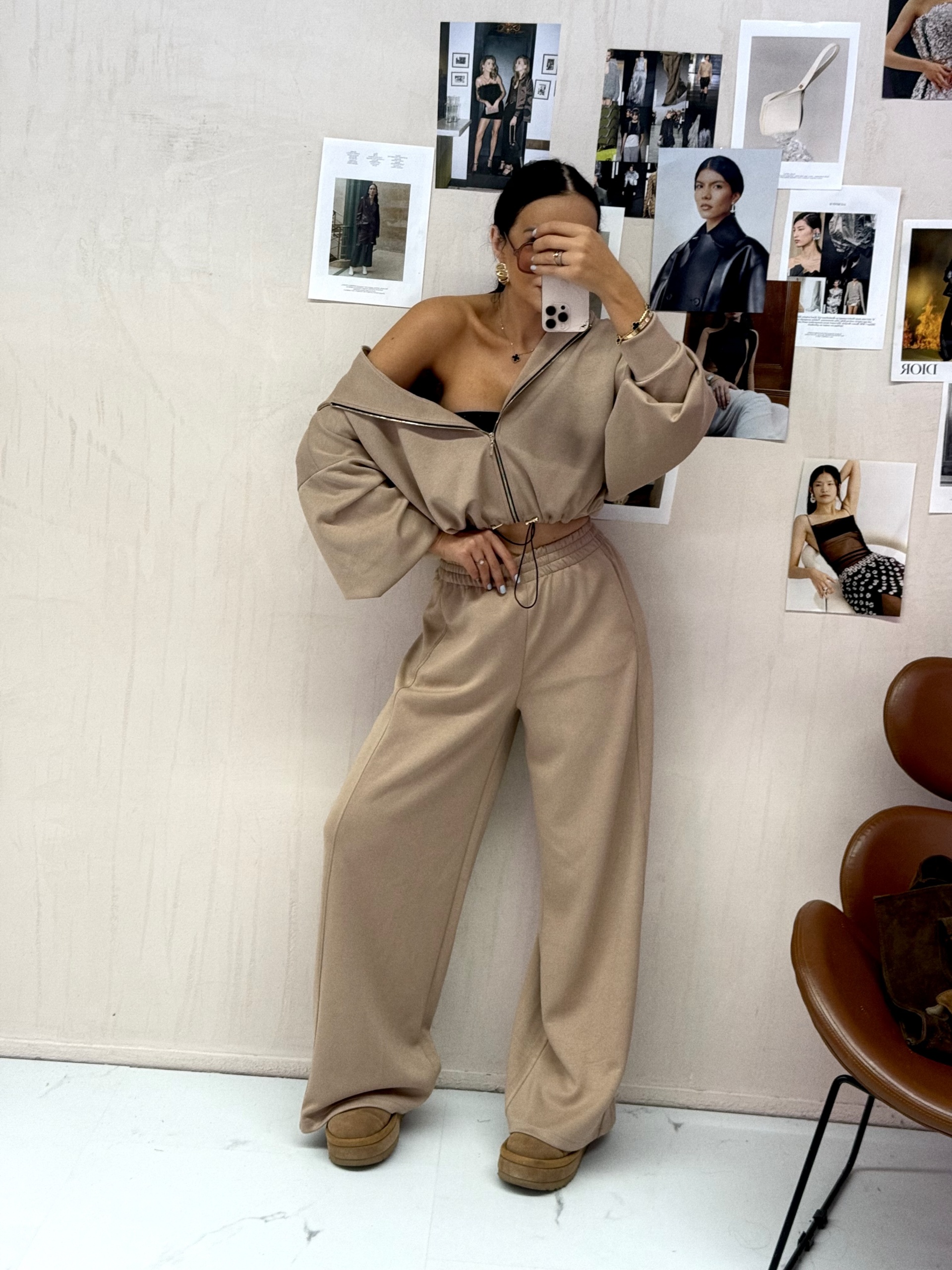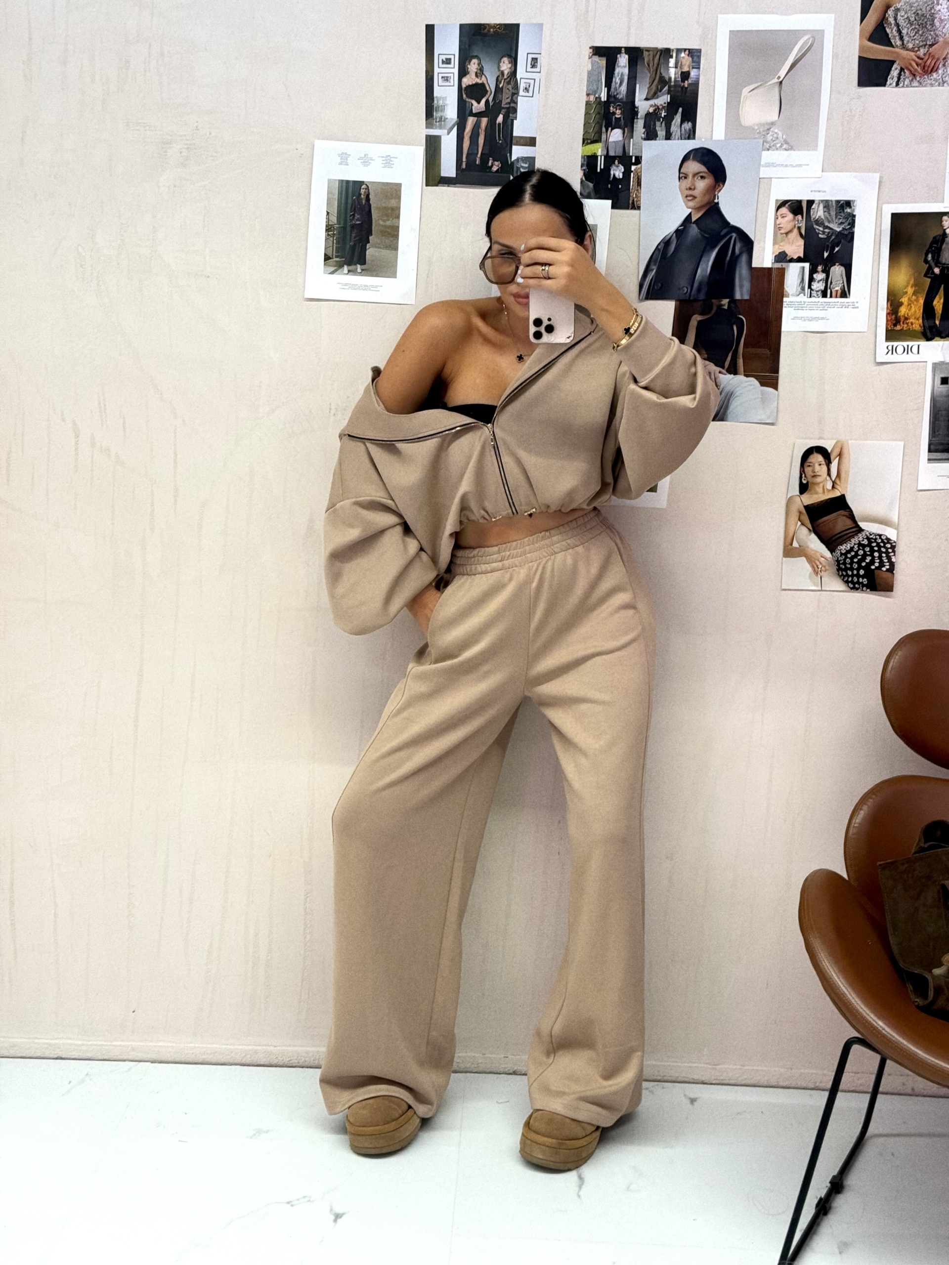 Dres gładki z rozpinaną bluza z kapturem La Milla – beżowy