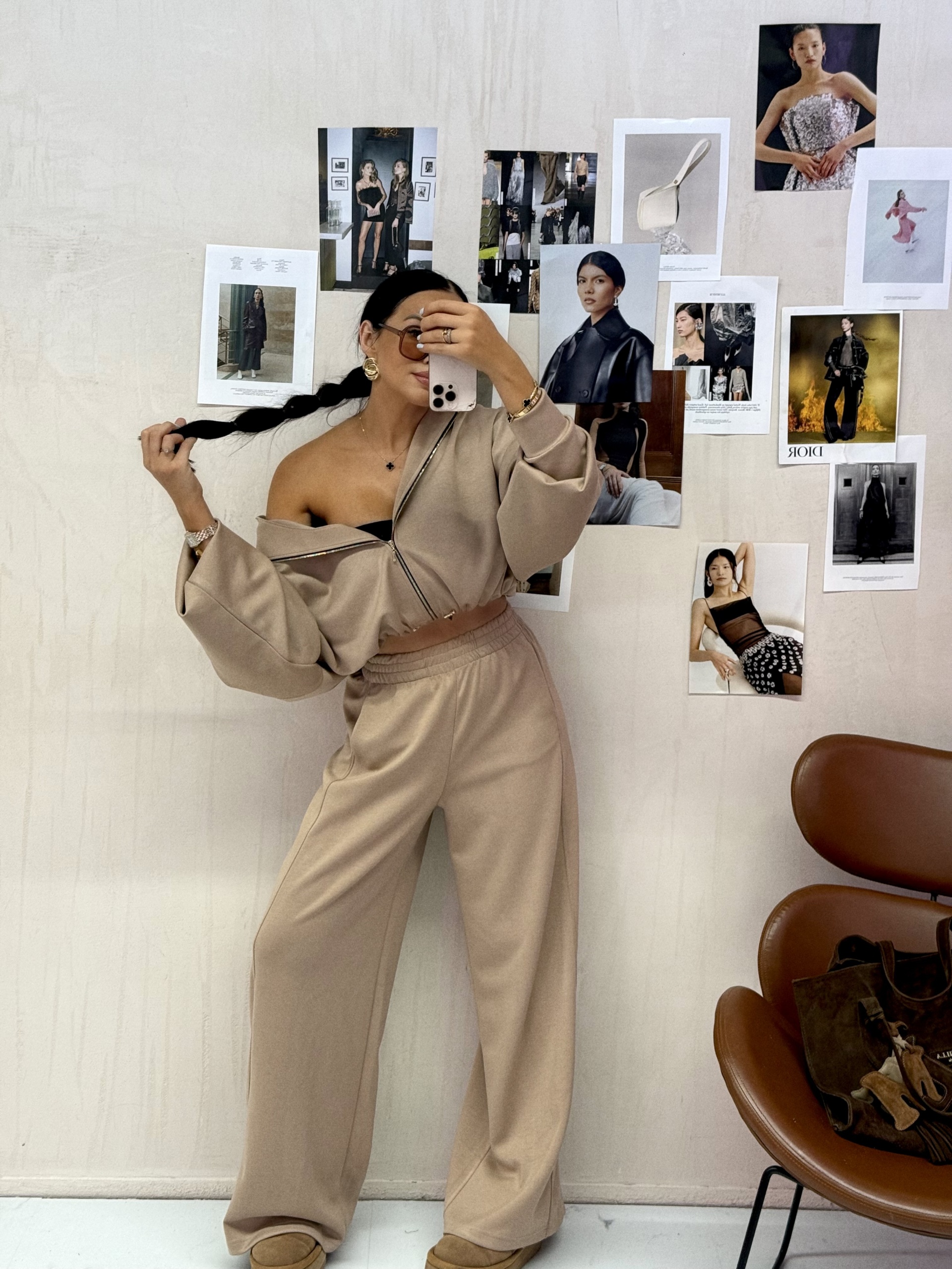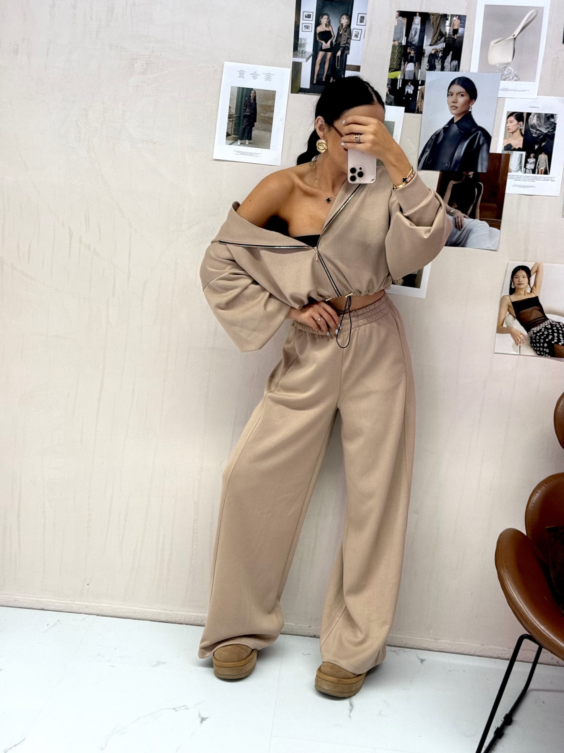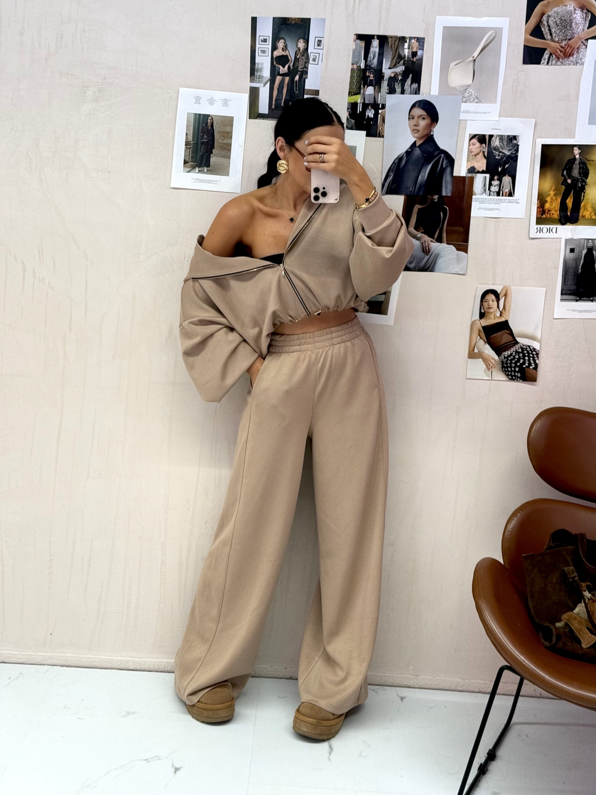Dres gładki z rozpinaną bluza z kapturem La Milla – beżowy