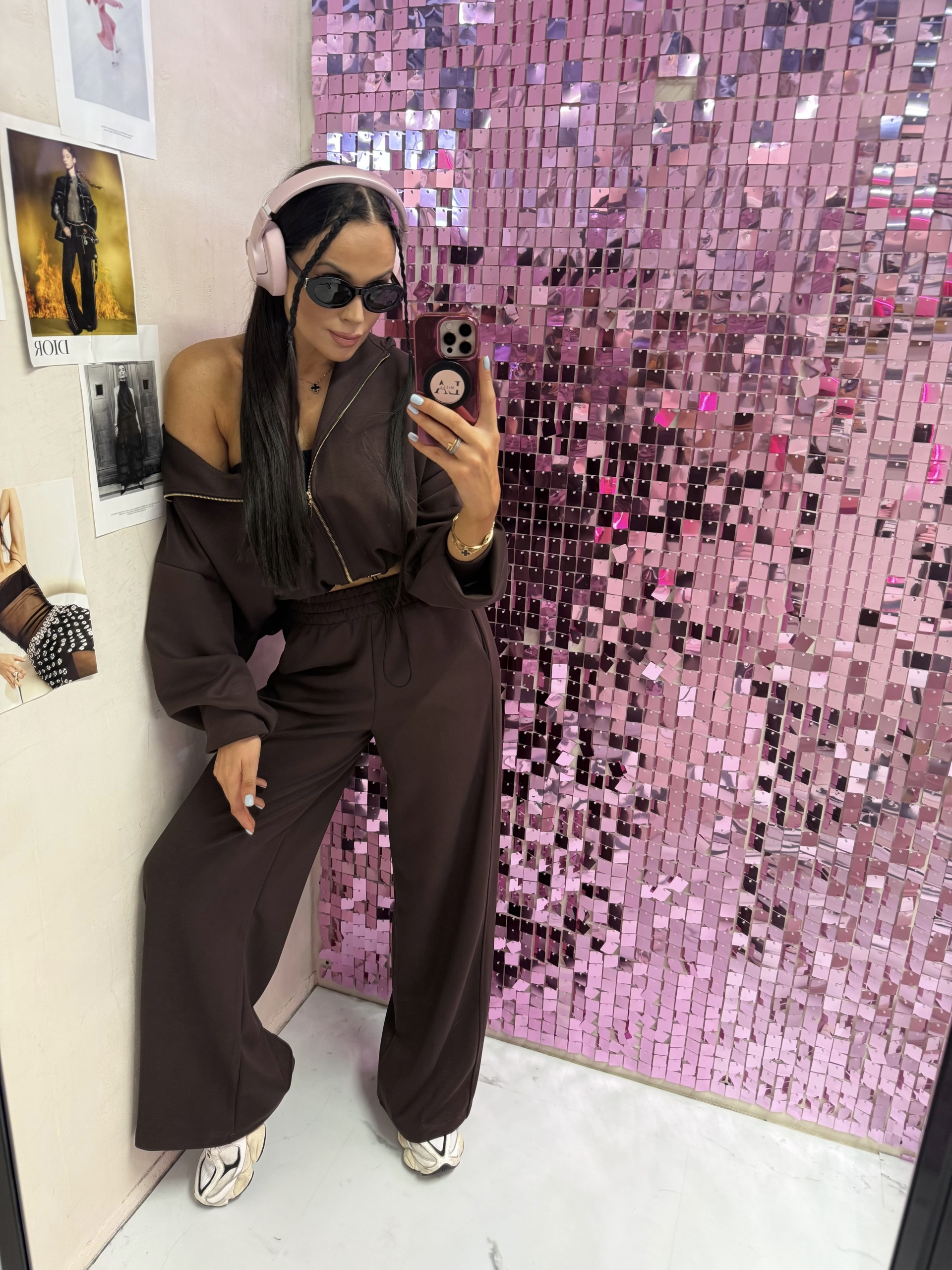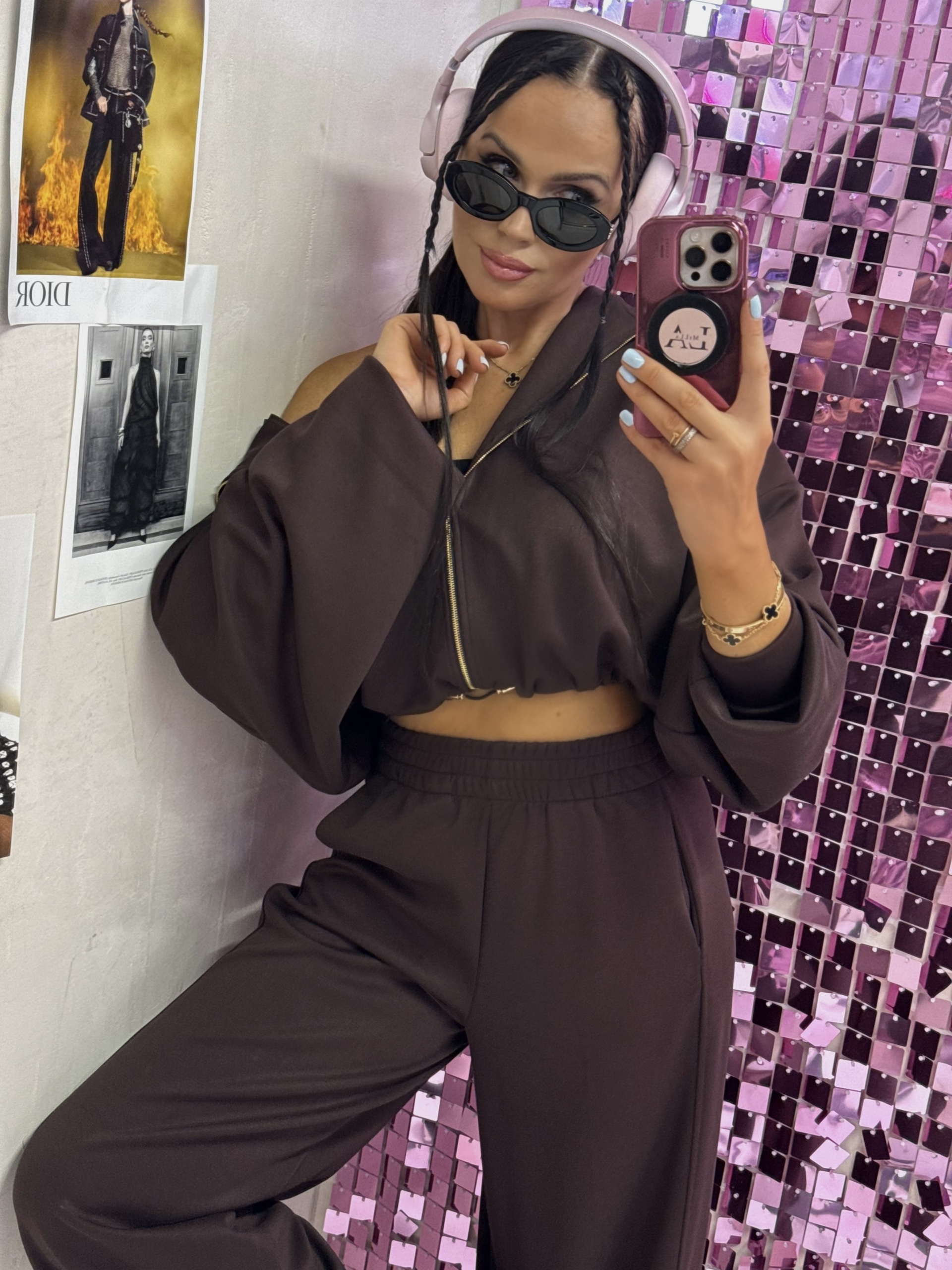 Strona główna La Milla MEGA JESIEŃ - nowa kolekcja Dres gładki z rozpinaną bluza z kapturem La Milla – brąz