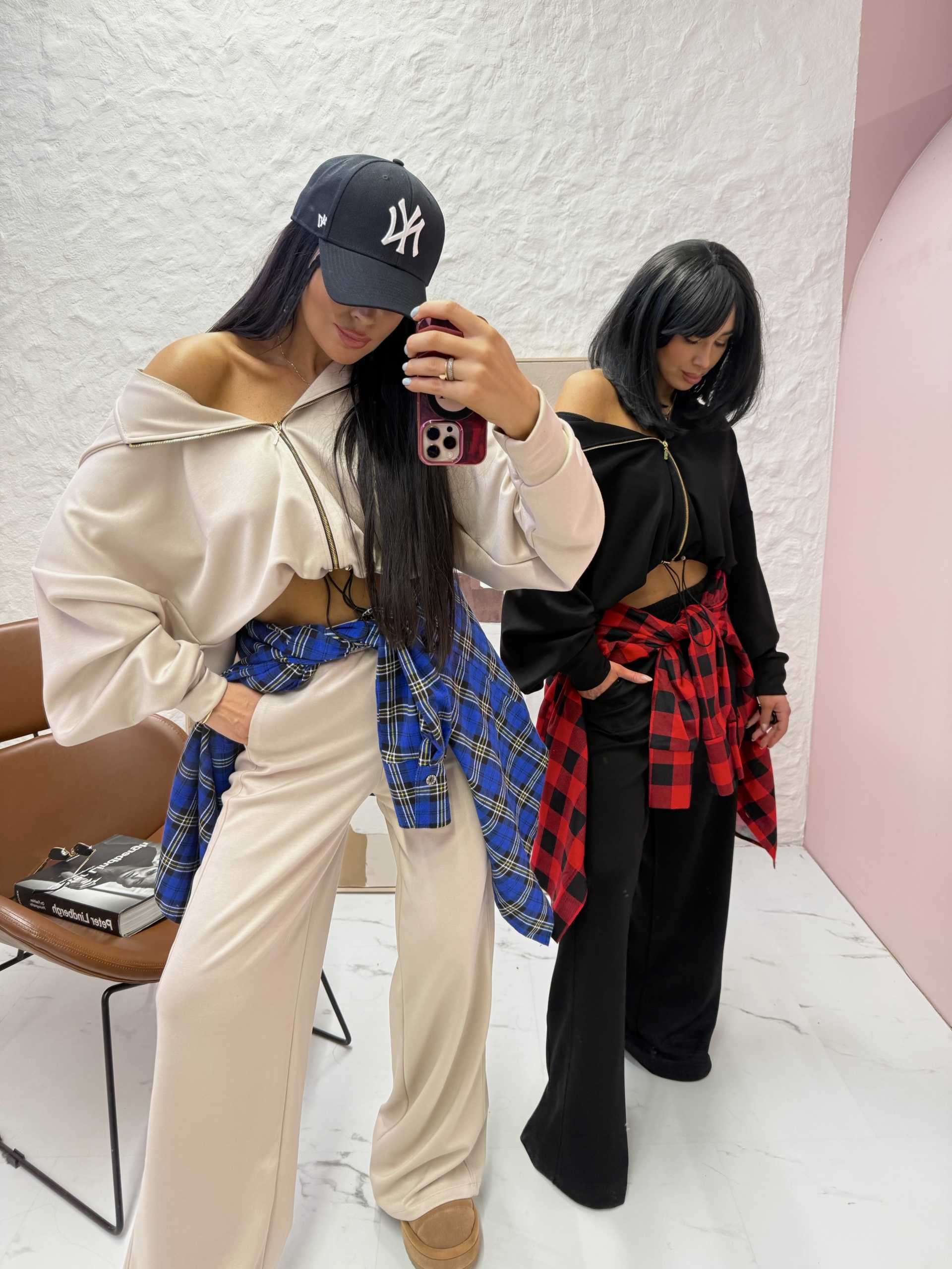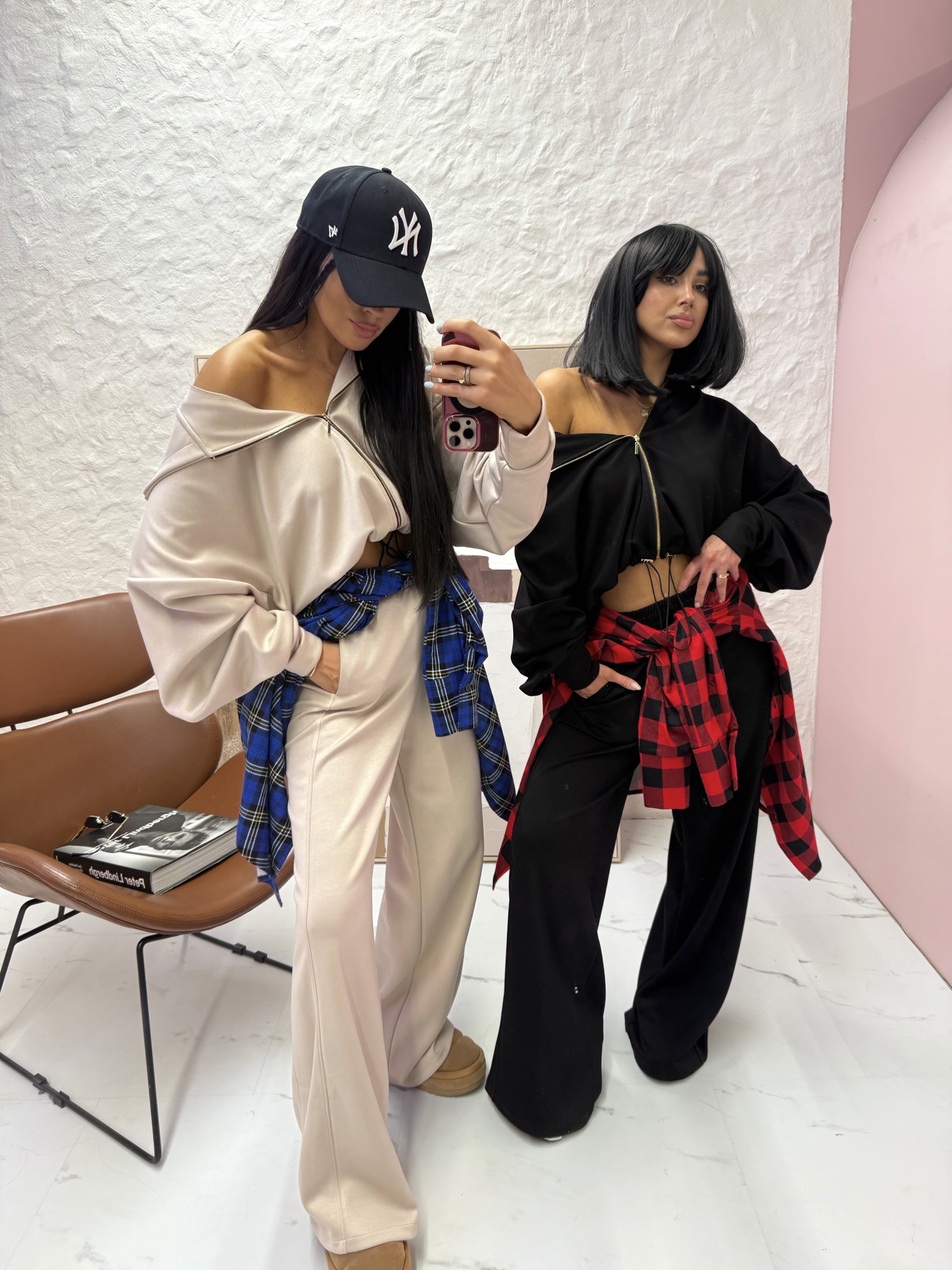 Dres gładki z rozpinaną bluza z kapturem La Milla - jasny beż 339.00 zł