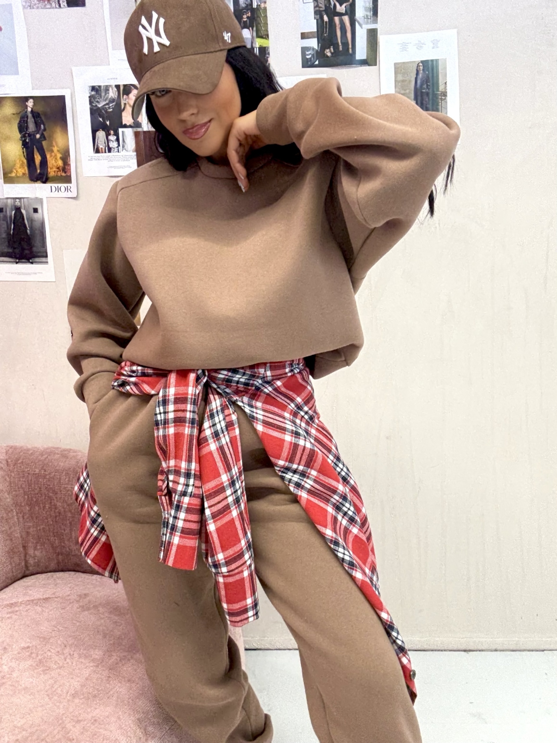 T-SHIRT BLUZKA OVERSIZOWY Z GRUBEJ DZIANINY LA MILLA promo- BRĄZOWY