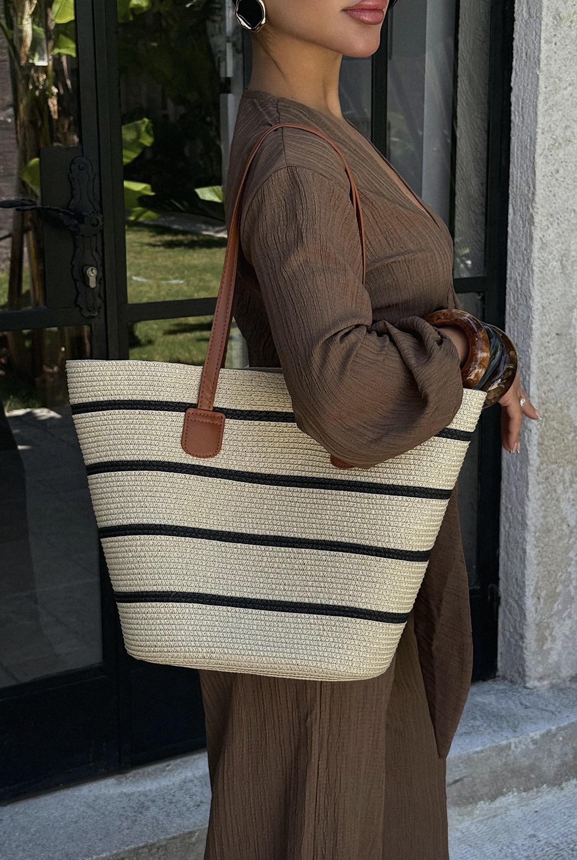 Strona główna Odzież damska Akcesoria Duża pleciona torba plażowa w paski | Riviera | pojemny koszyk na wakacje