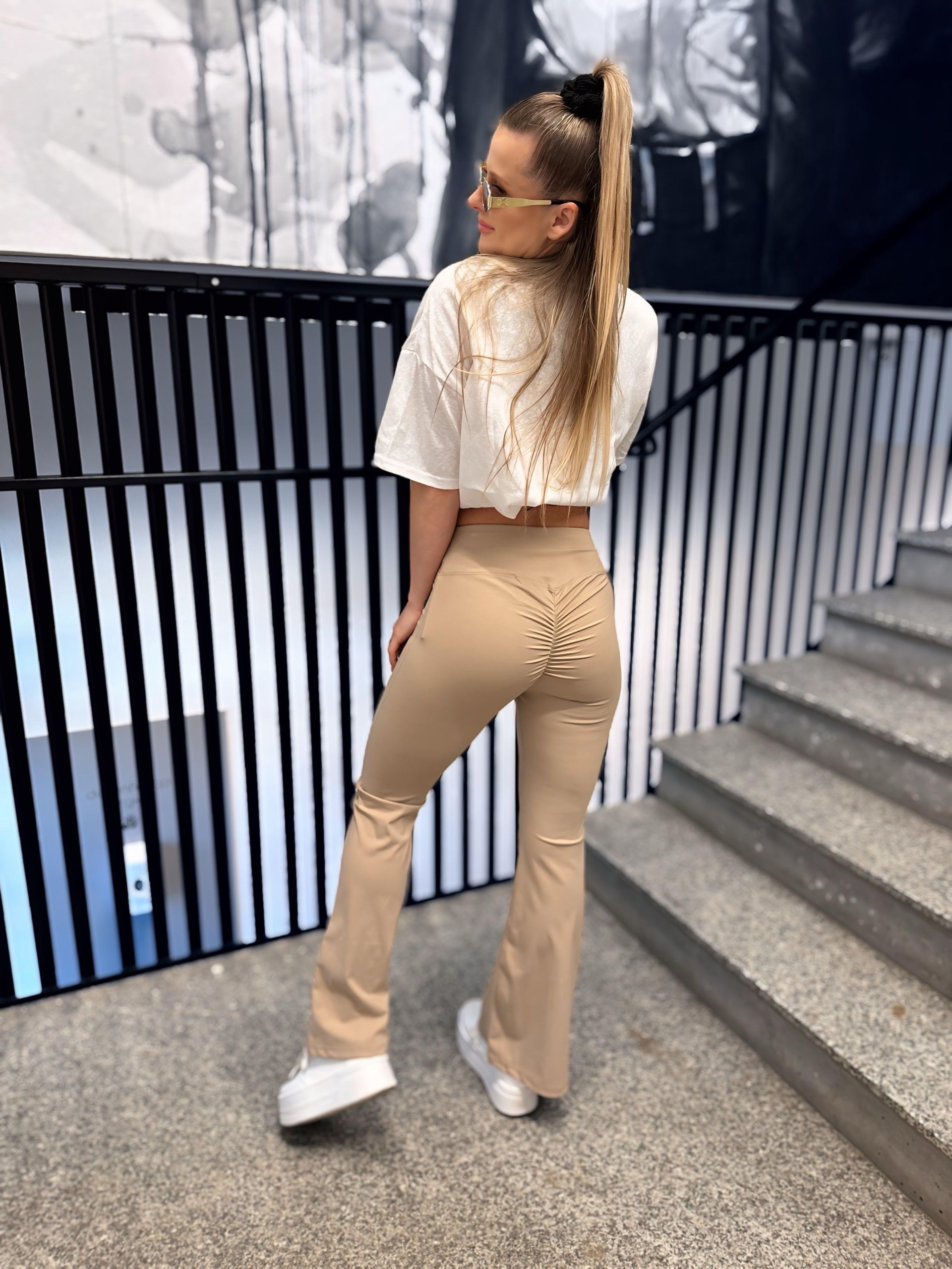 Strona główna Odzież damska Spodnie Dzwony push up materiałowe | Belissima | cappucino