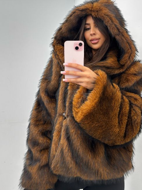 Futro eko lis z kapturem EMO - Czekolada 459.00 zł