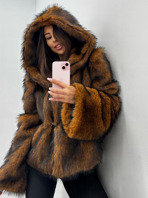 Futro eko lis z kapturem EMO - Czekolada