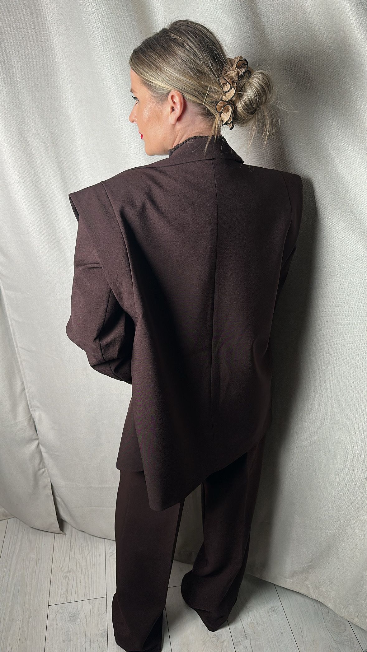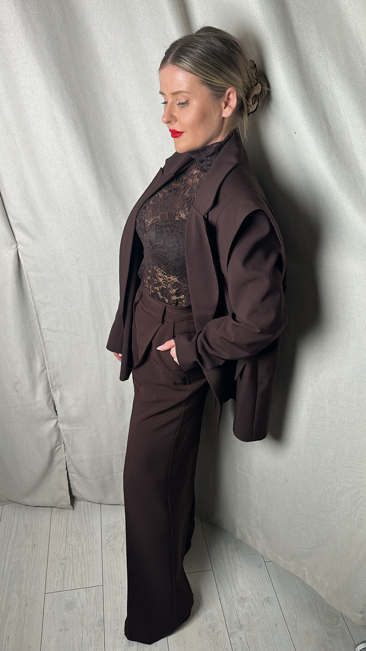 Strona główna La Milla ŚWIĄTECZNE STYLIZACJE 🎀 Garnitury Garnitur elegancki Spodnie z Różą i marynarka La Milla – czekoladowy