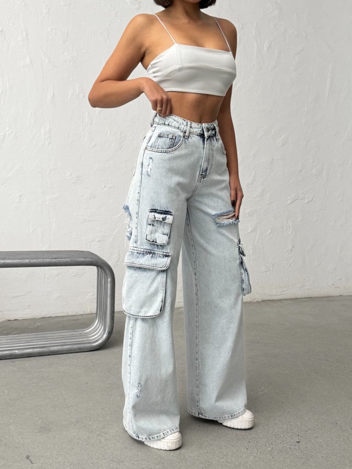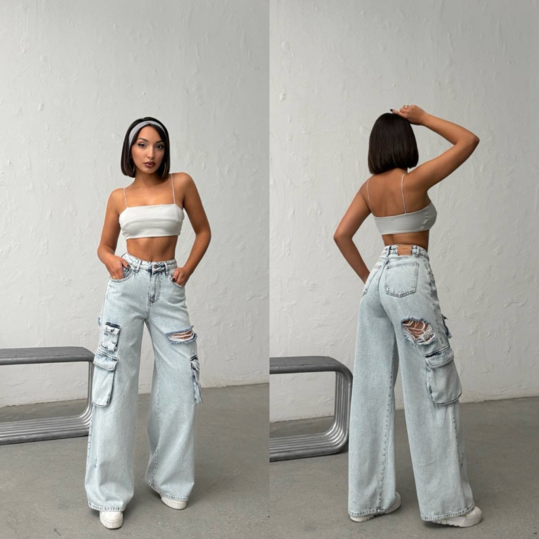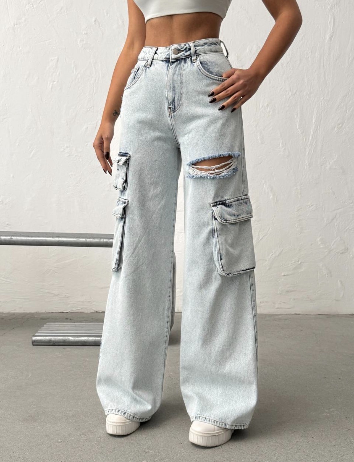 Strona główna Odzież damska Spodnie Jeansowe spodnie z szeroką nogawką i wysokim stanem | Ice Street | jasny jeans