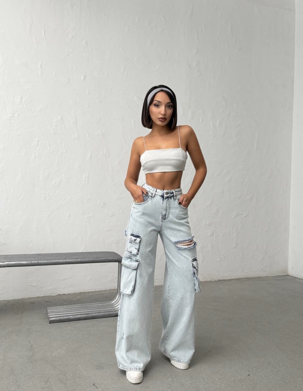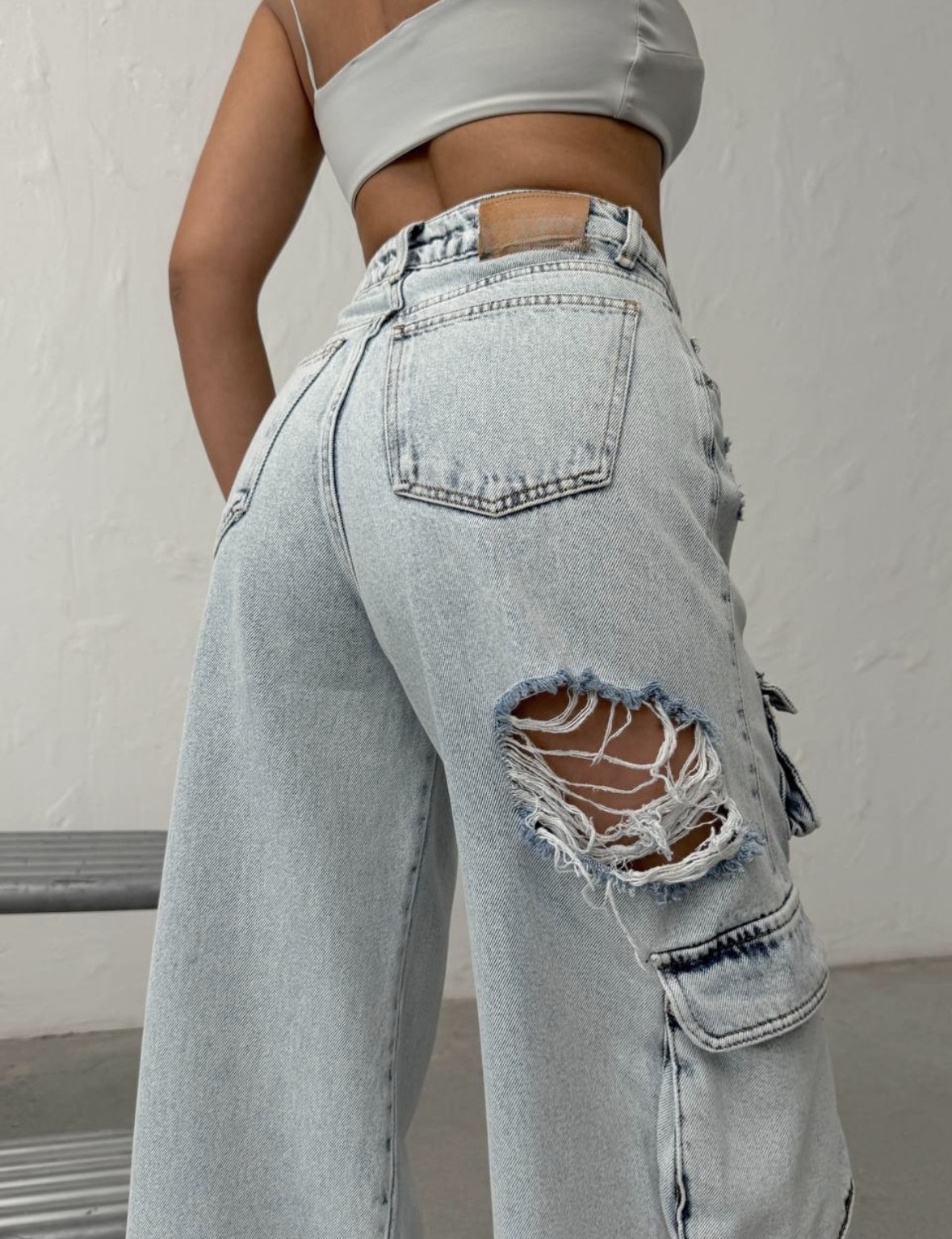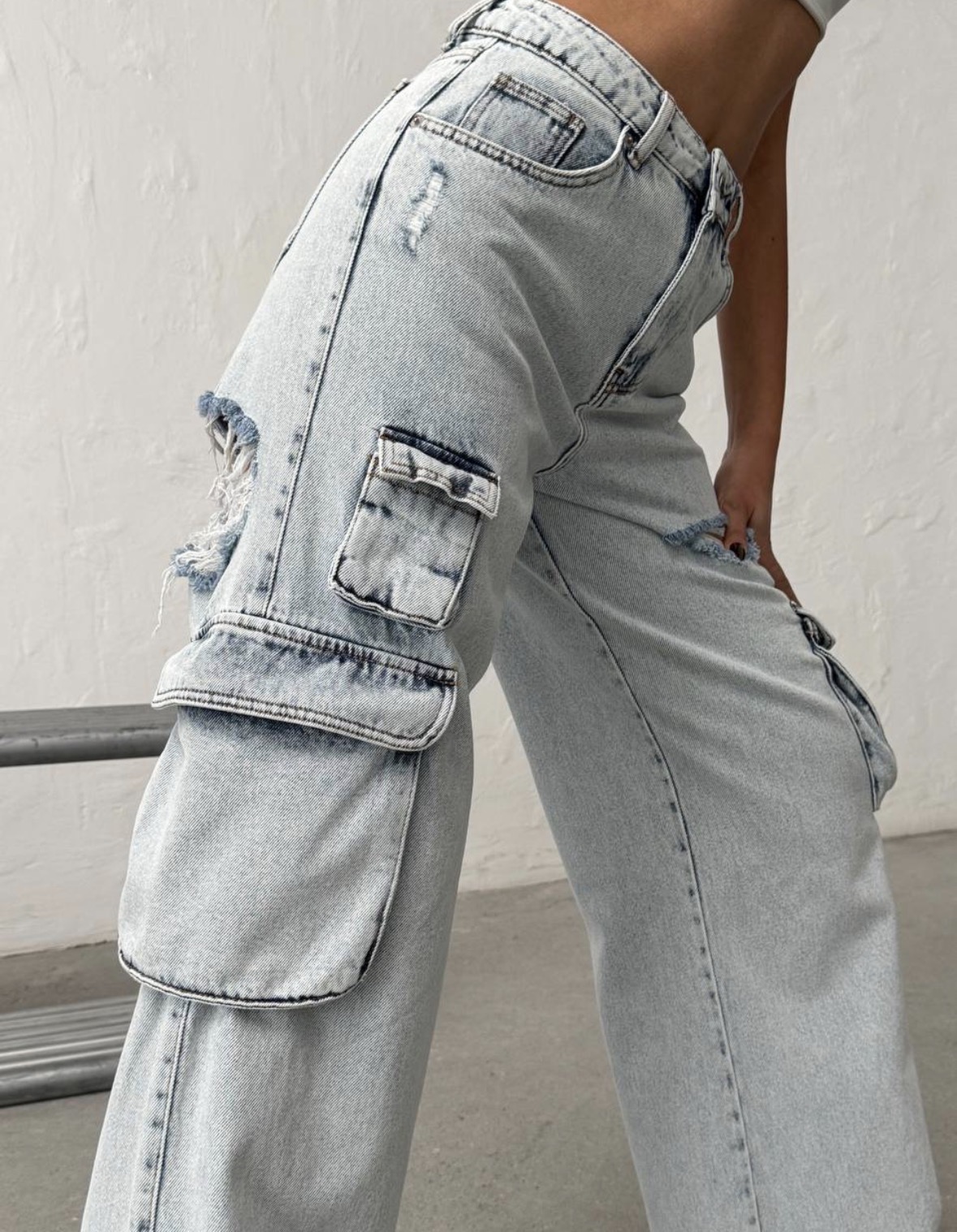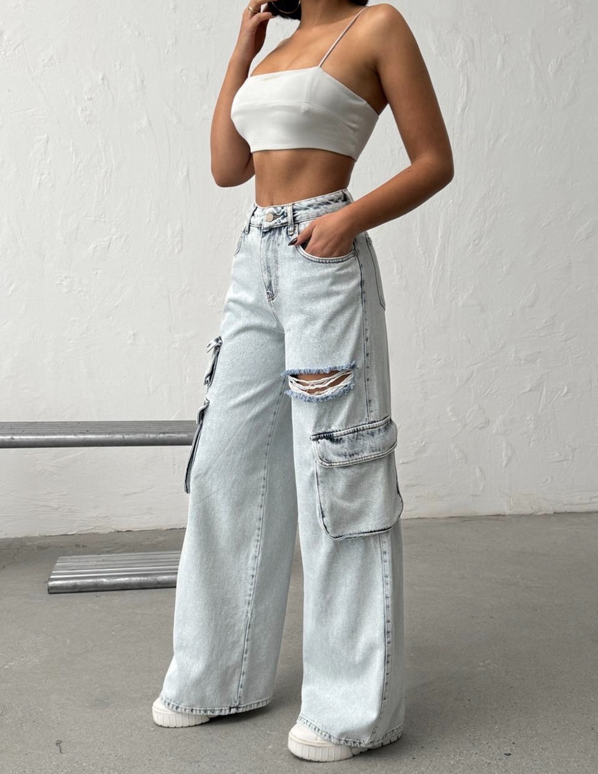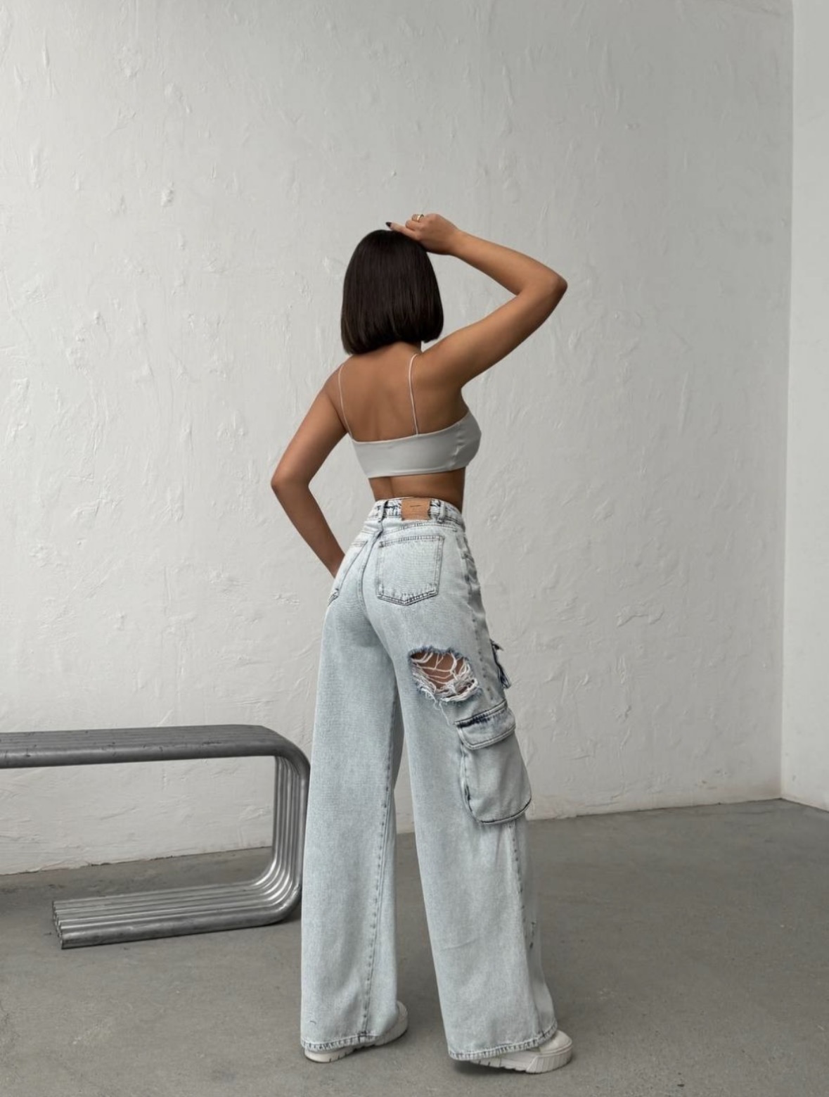 Jeansowe spodnie z szeroką nogawką i wysokim stanem | Ice Street | jasny jeans
