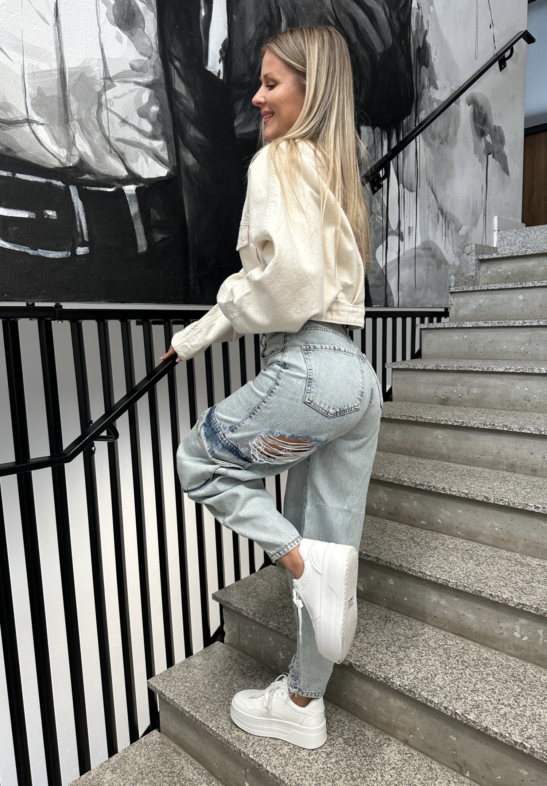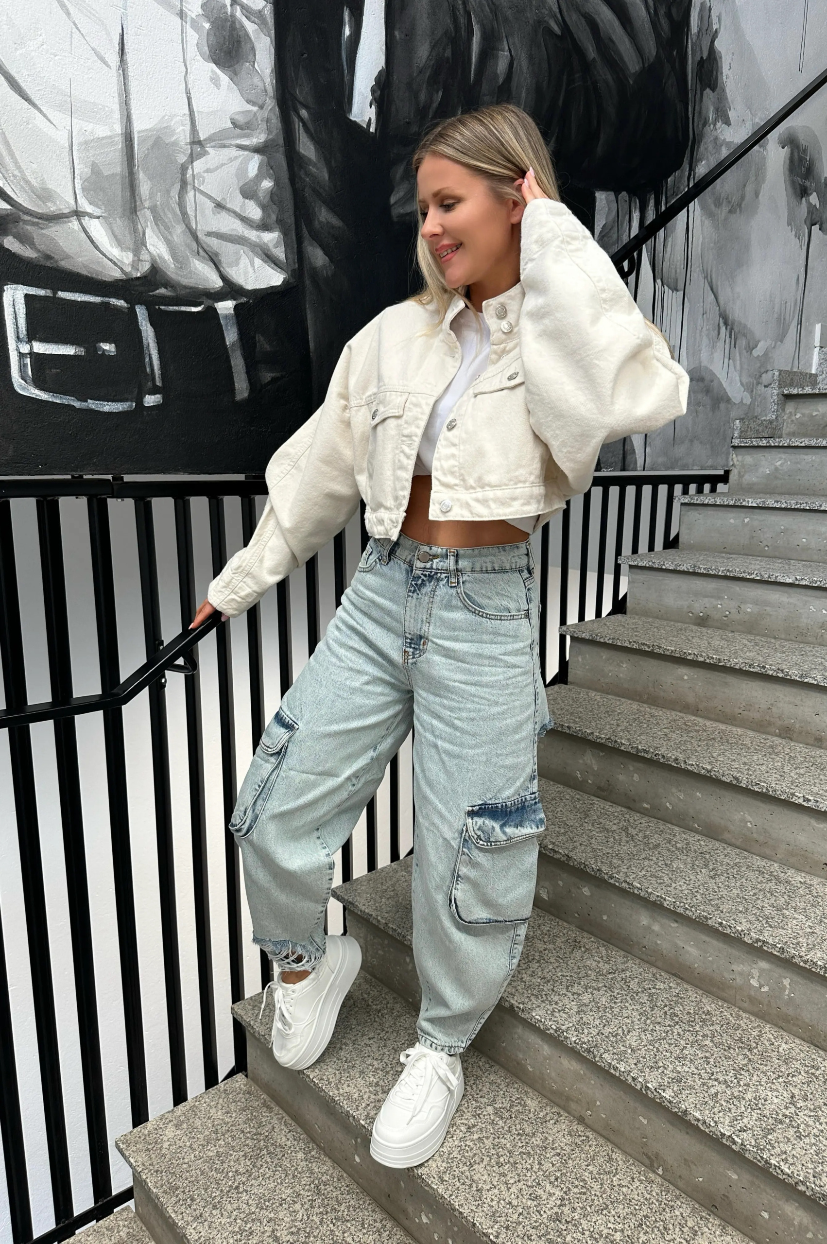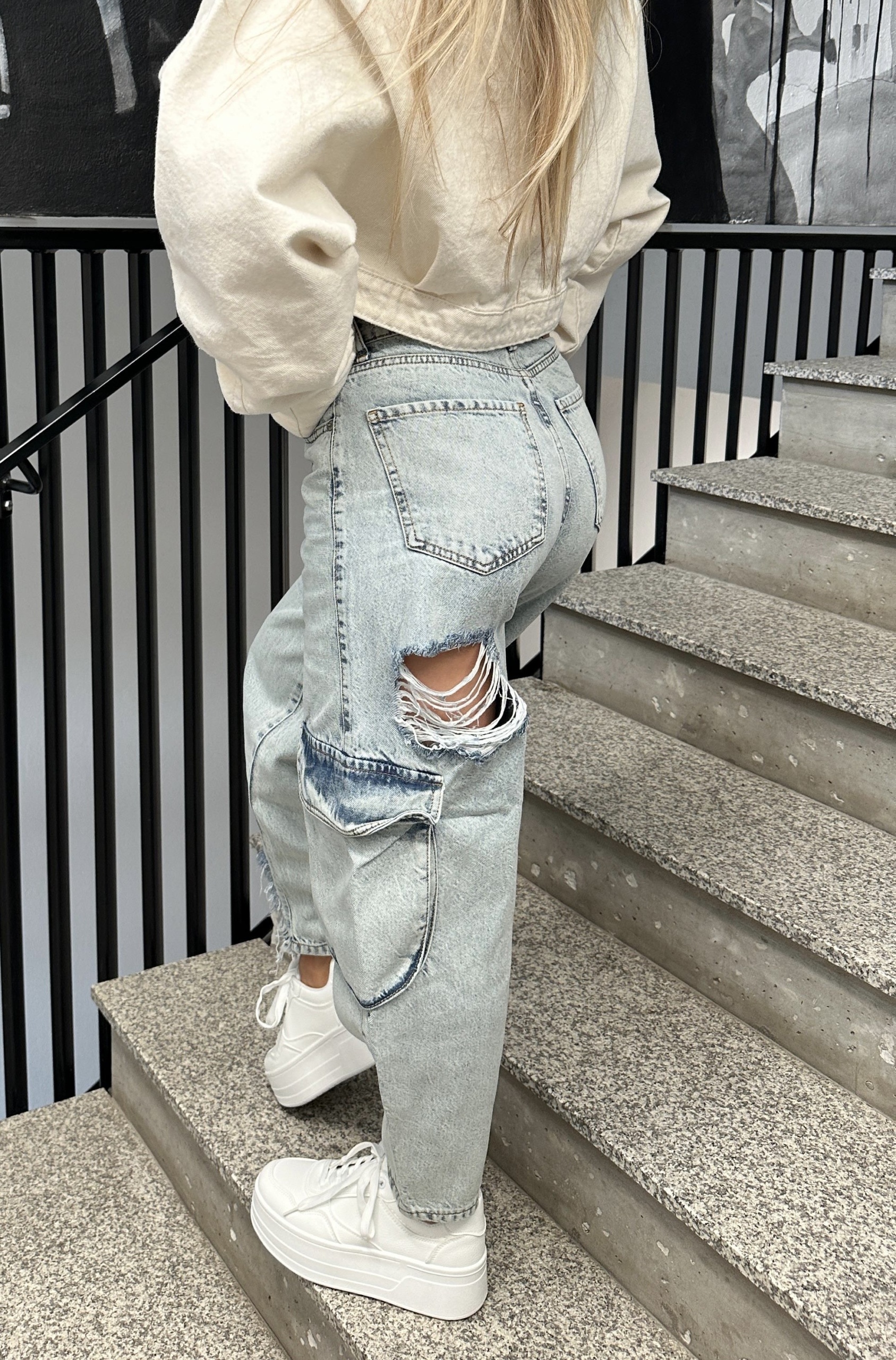 Jeansowe spodnie z wysokim stanem i kieszeniami cargo | Rogue | jasny jeans