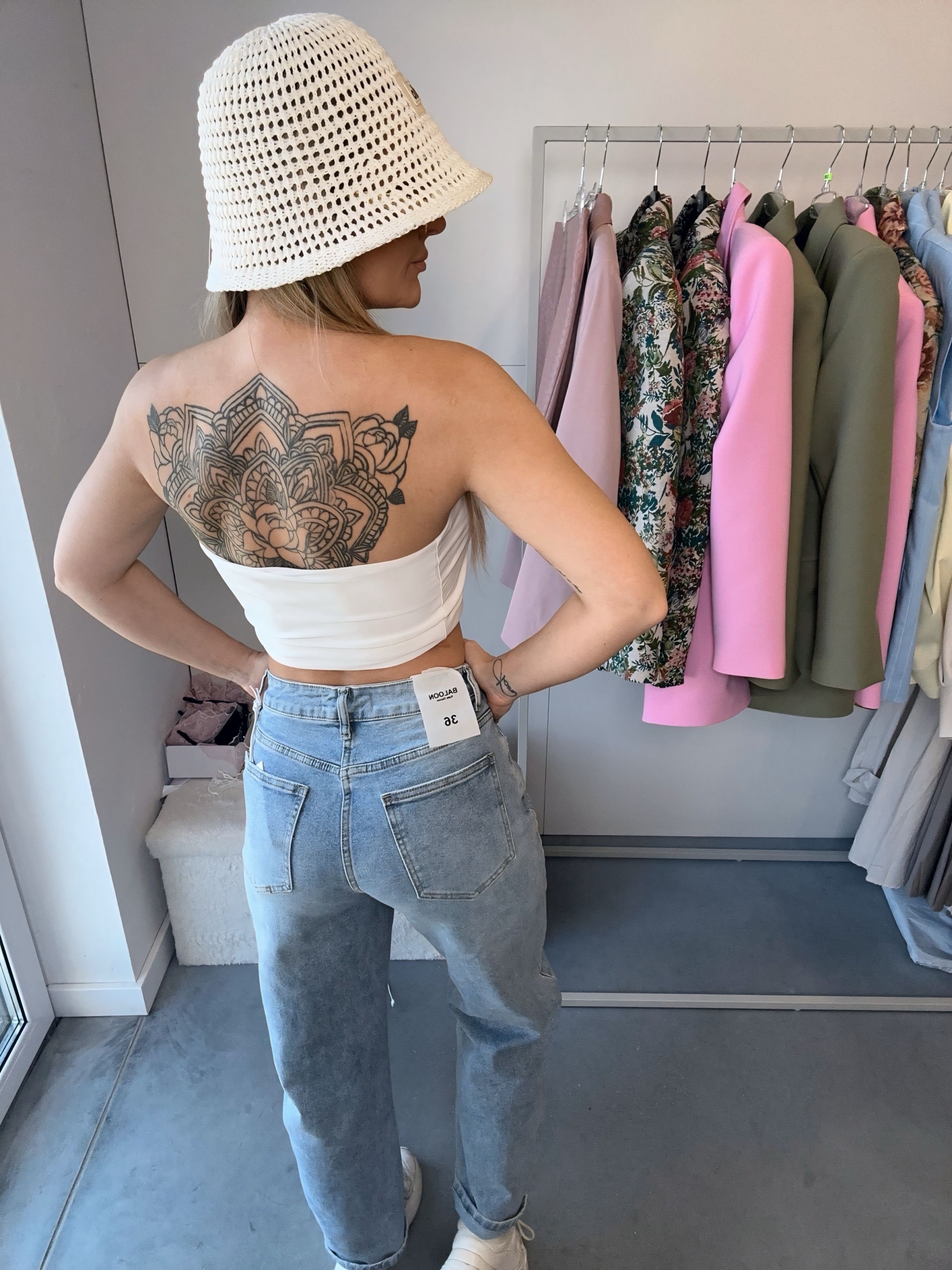 Jeansy baloon Mendy to idealne połączenie stylu i wygody, które pokochasz od pierwszego założenia. Fason typu balon z wysokim stanem pięknie podkreśla talię, a luźniejsza linia w biodrach i delikatnie zwężane nogawki nadają sylwetce nowoczesny, lekko nonszalancki charakter.