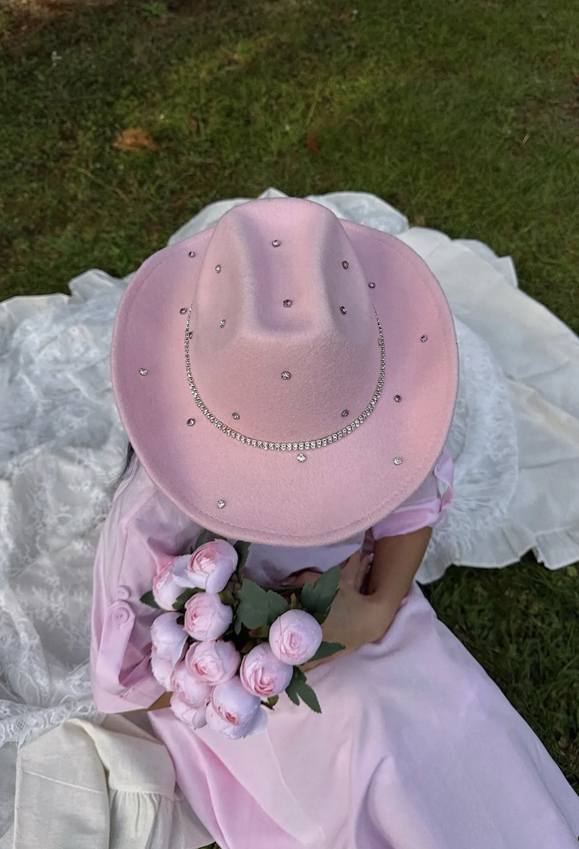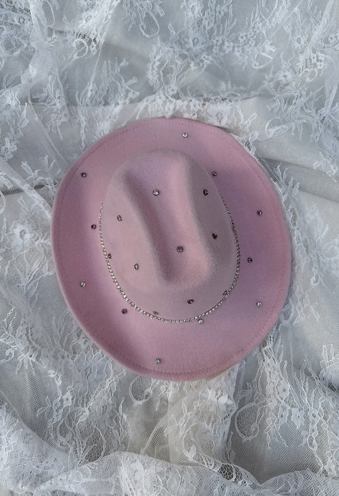 Kapelusz kowbojski z cyrkoniami | Cowboy | różowy elegancki dodatek na wesele, festiwal i sesję zdjęciową
