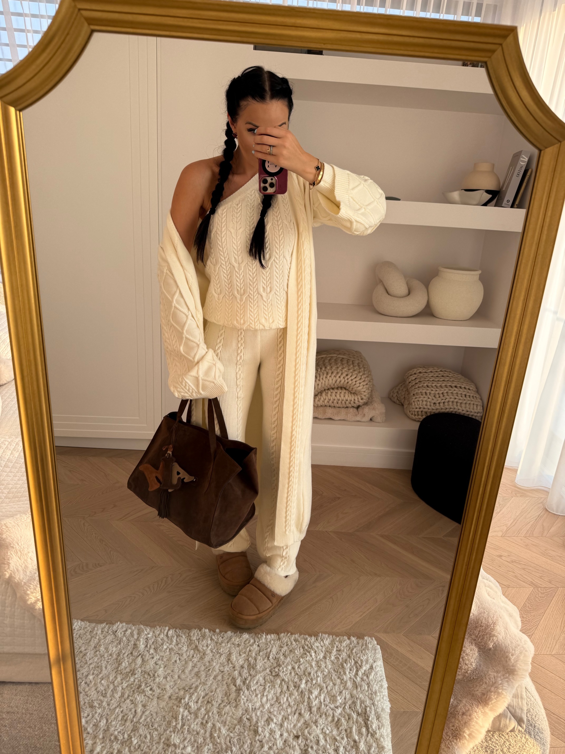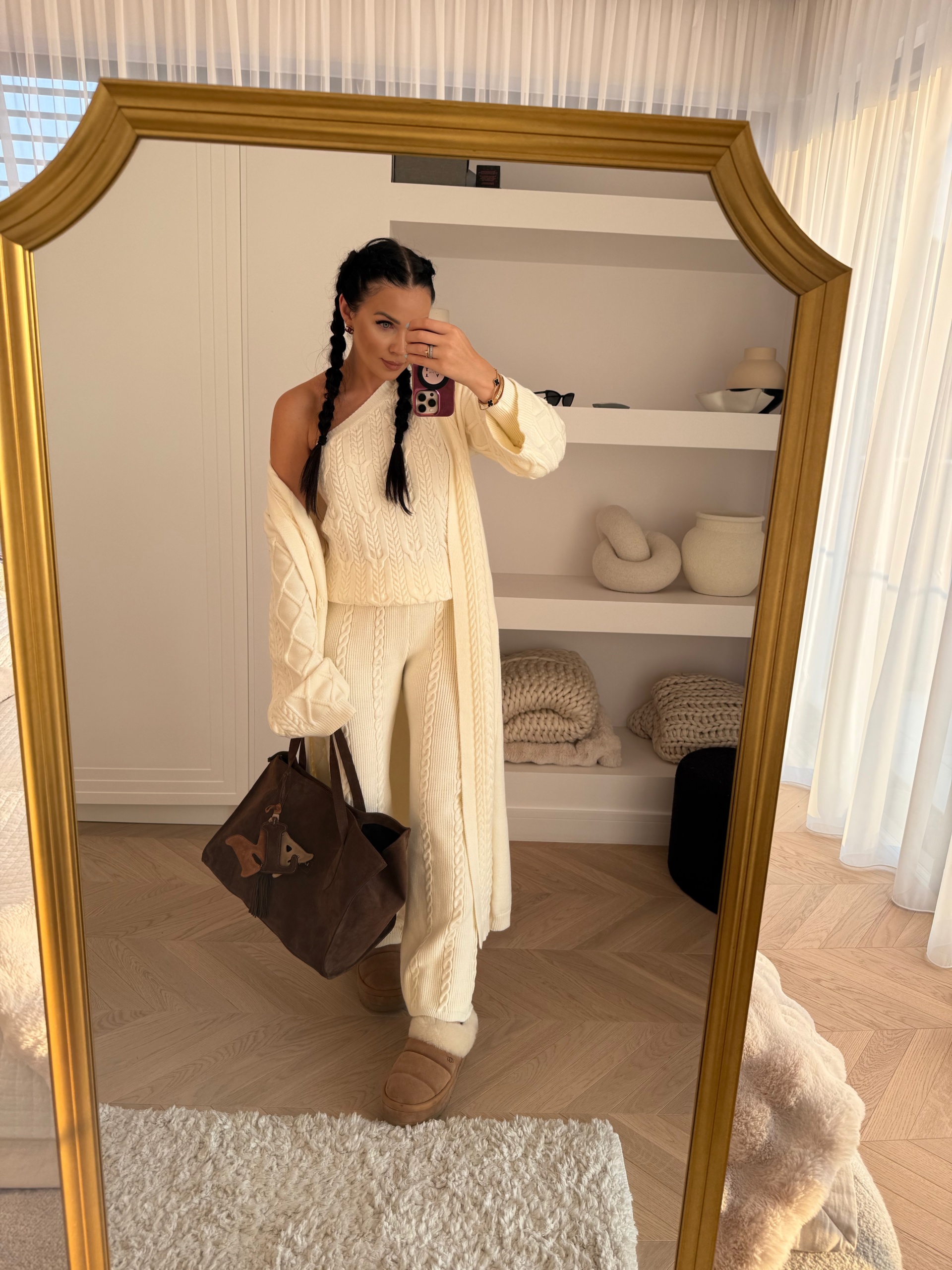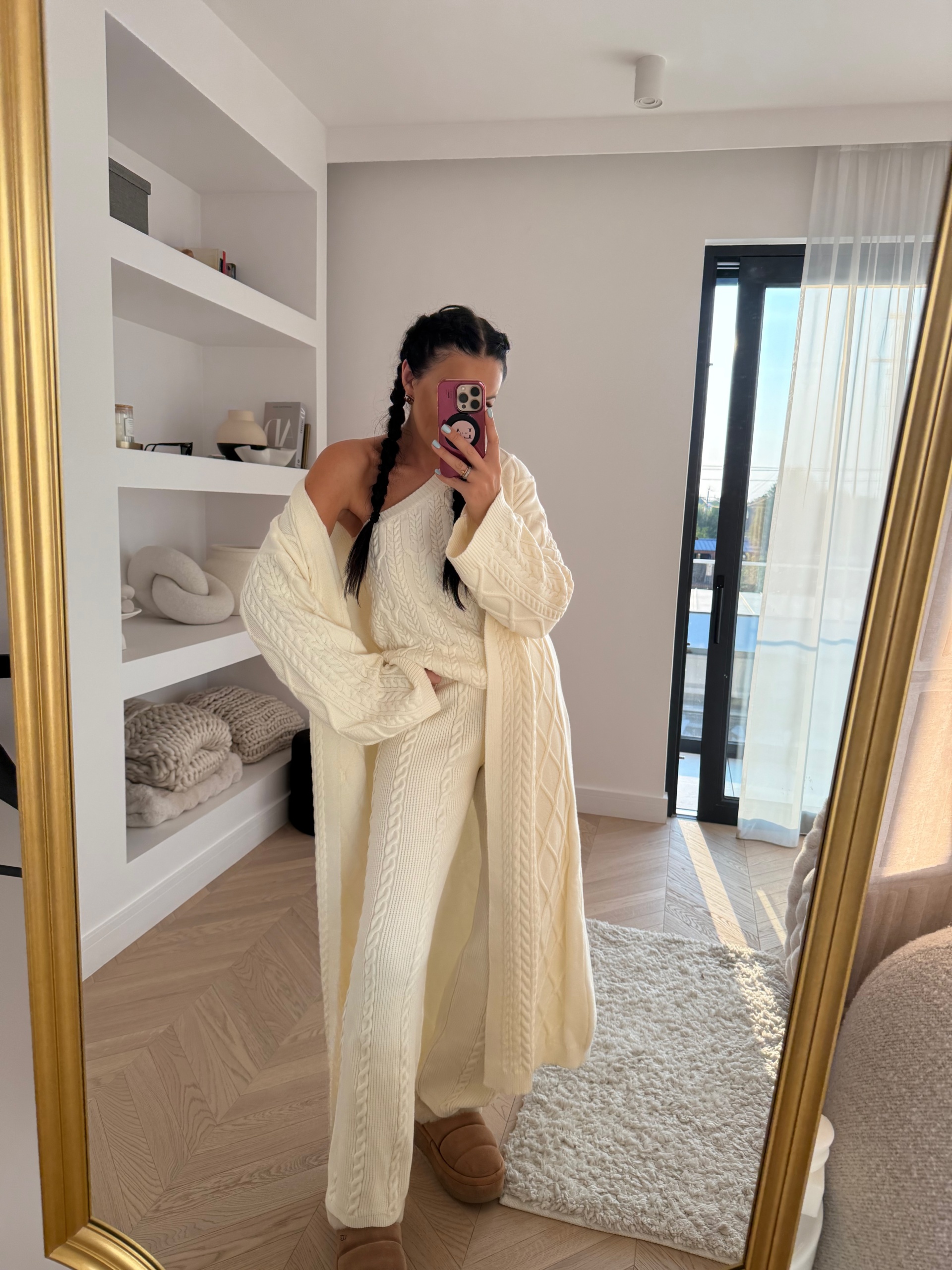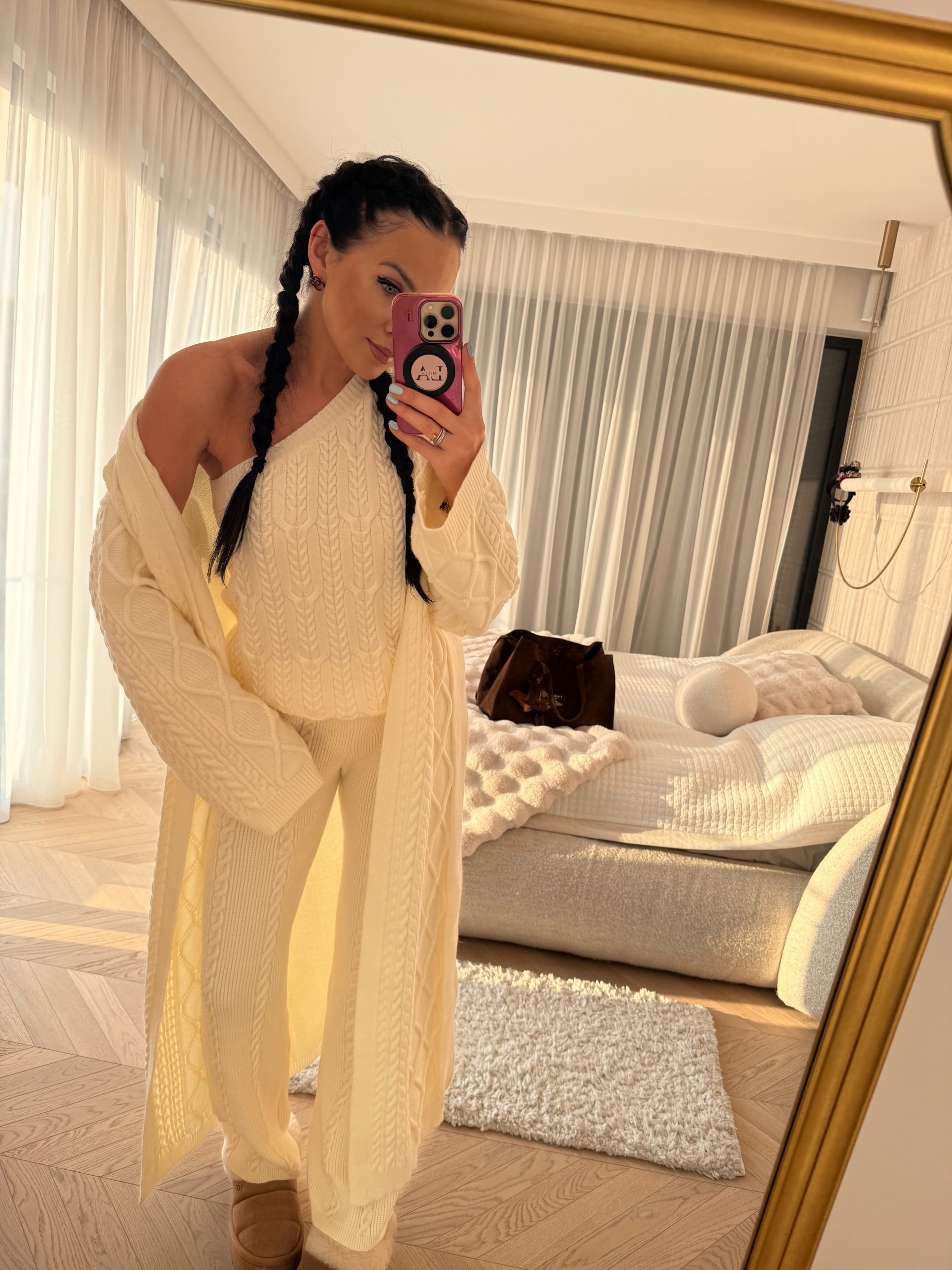 Strona główna La Milla Swetry i kardigany KARDIGAN SWETER DŁUGI Z PASKIEM LA MILLA- kremowy