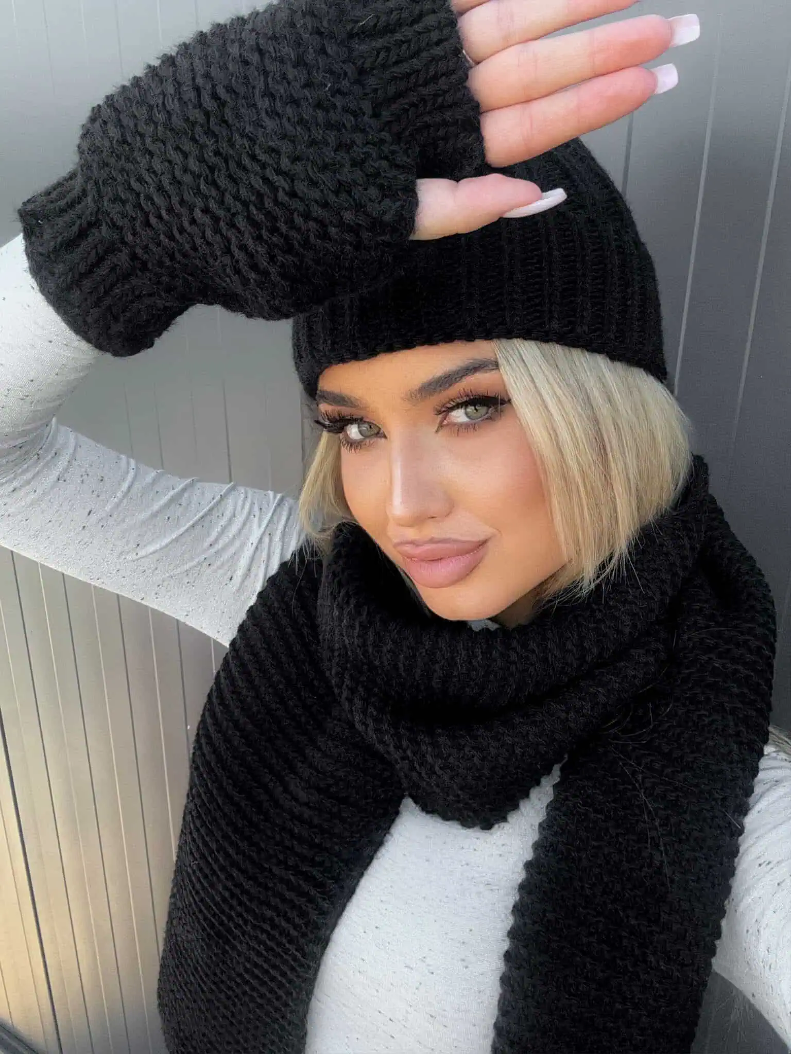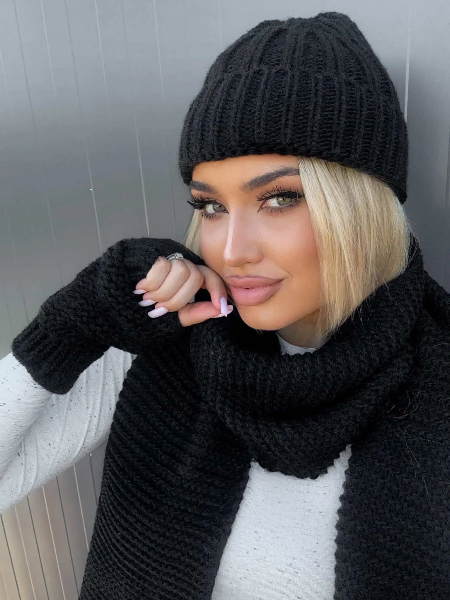 Komplet czapka szalik i rękawiczki ALASKA By Me – czarny