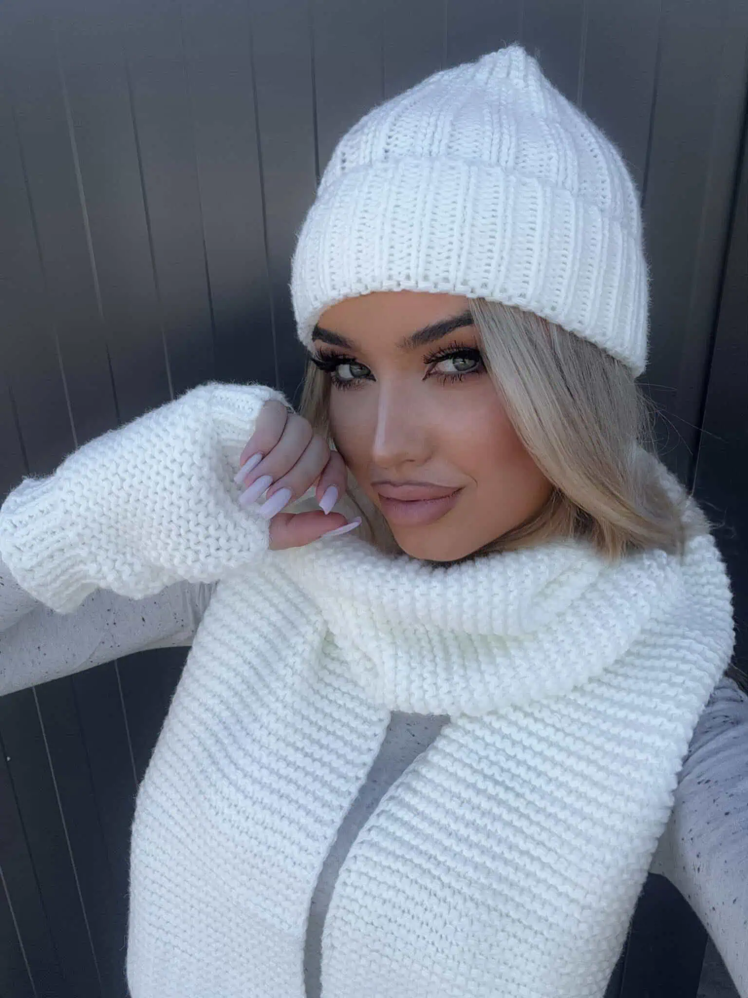 Komplet czapka szalik i rękawiczki ALASKA By Me – ecru