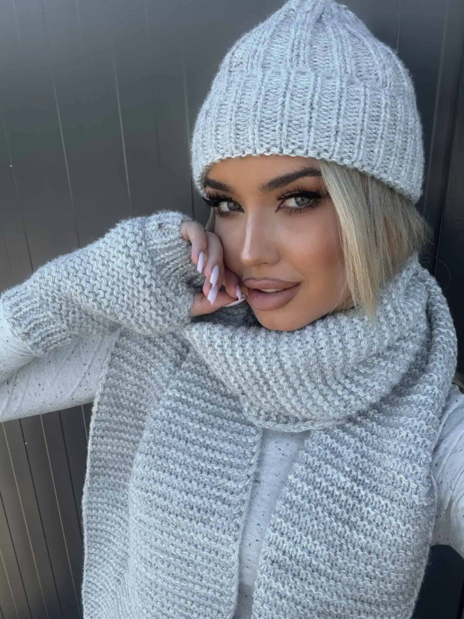 Komplet czapka szalik i rękawiczki ALASKA By Me – szary
