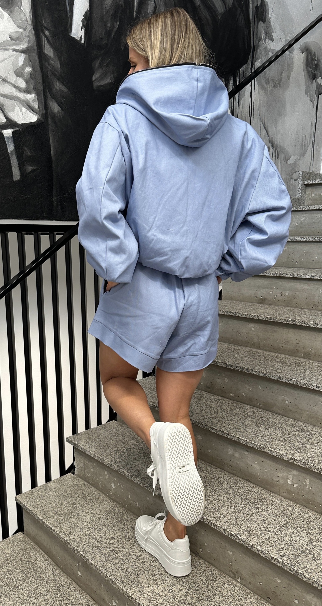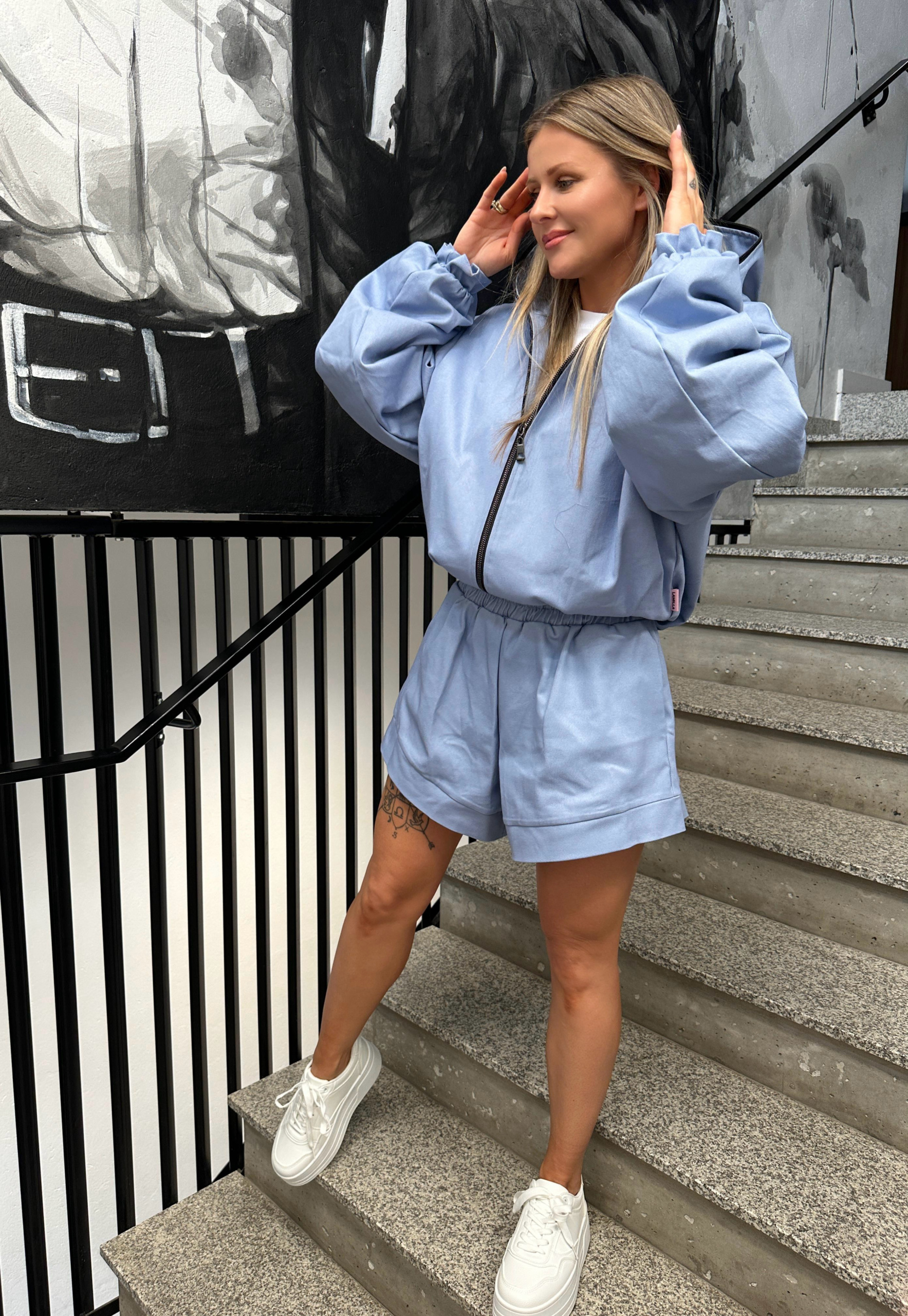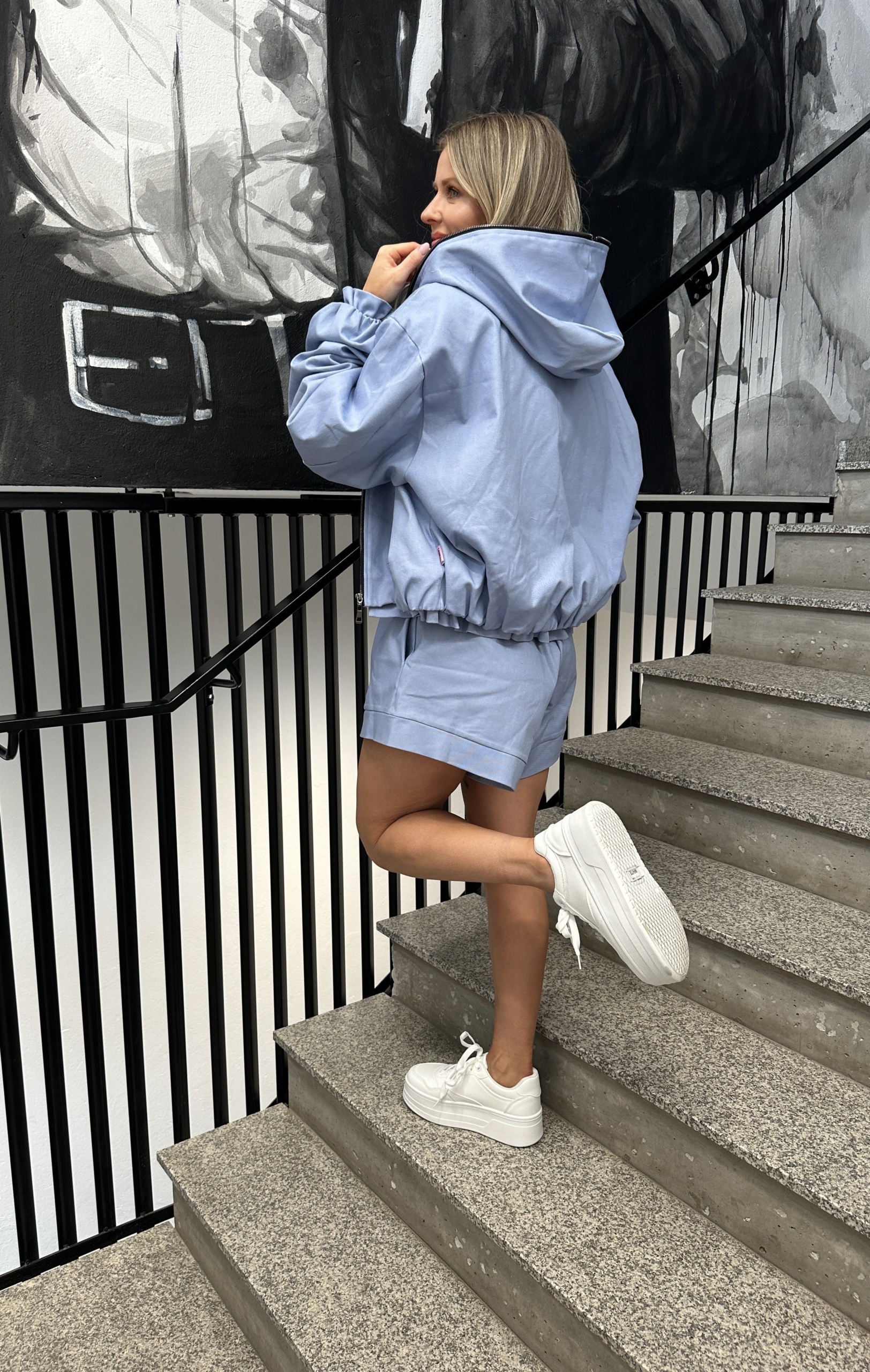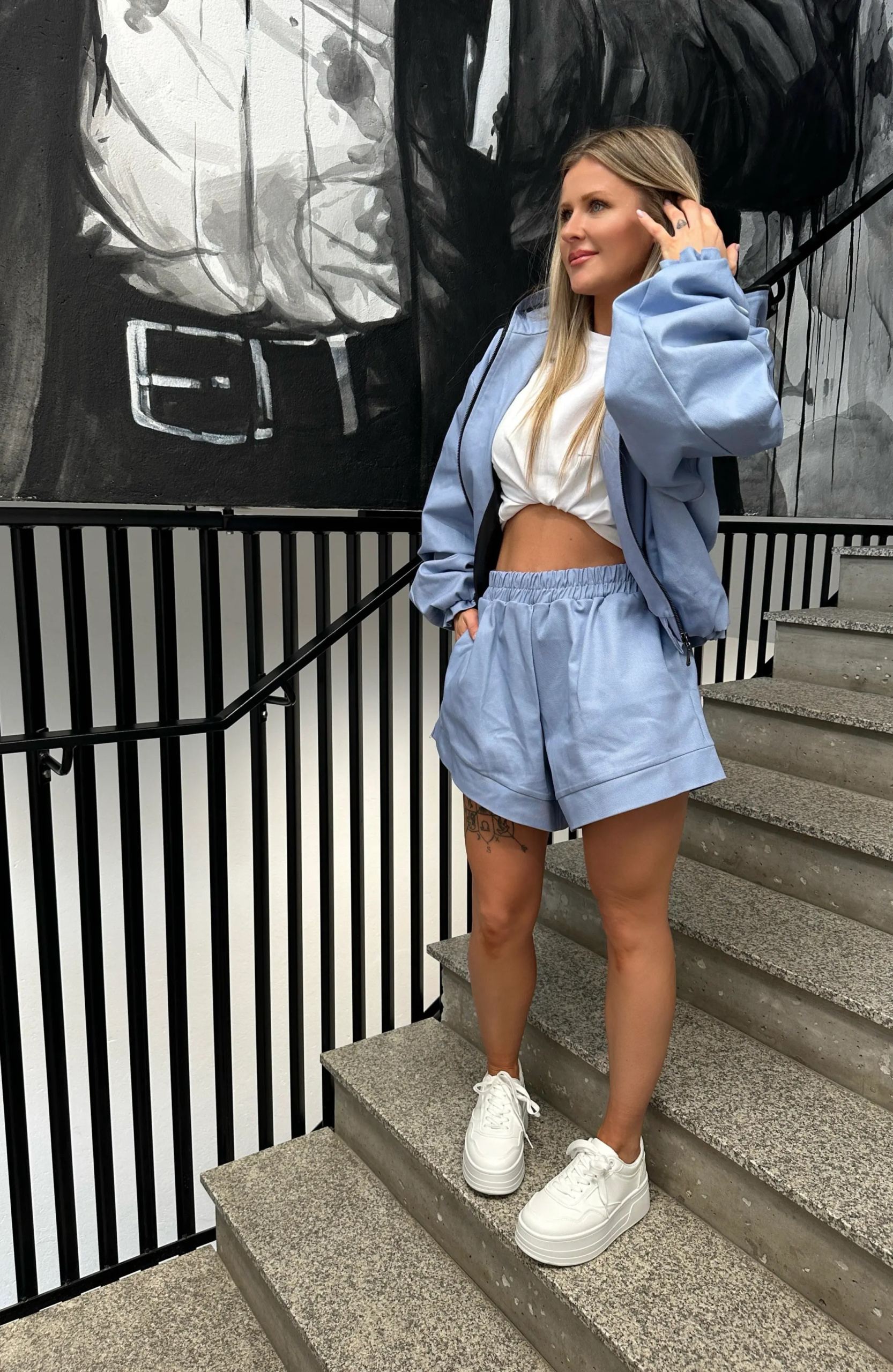 Strona główna Odzież damska Komplety na co dzień Komplet damski bawełniany | La Milla | jasny niebieski zestaw bomberka ze spodenkami w stylu denim na wiosnę