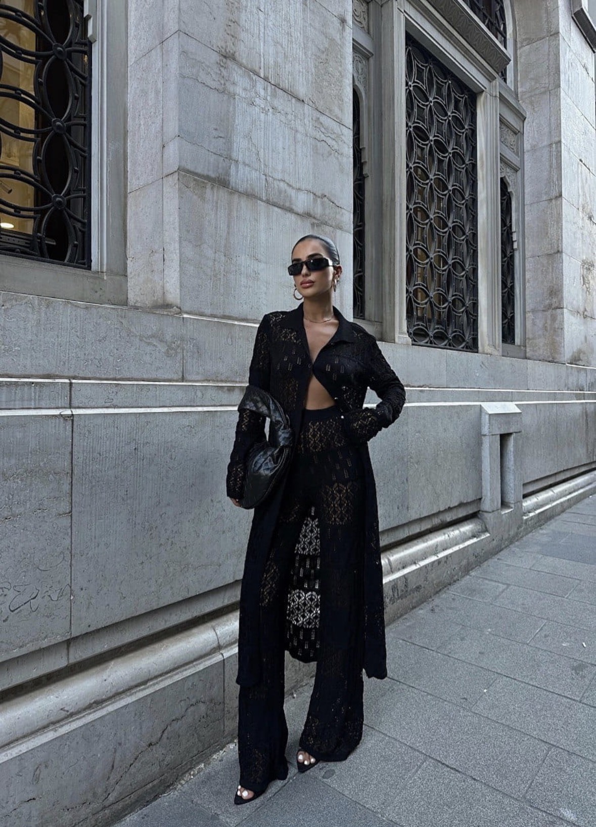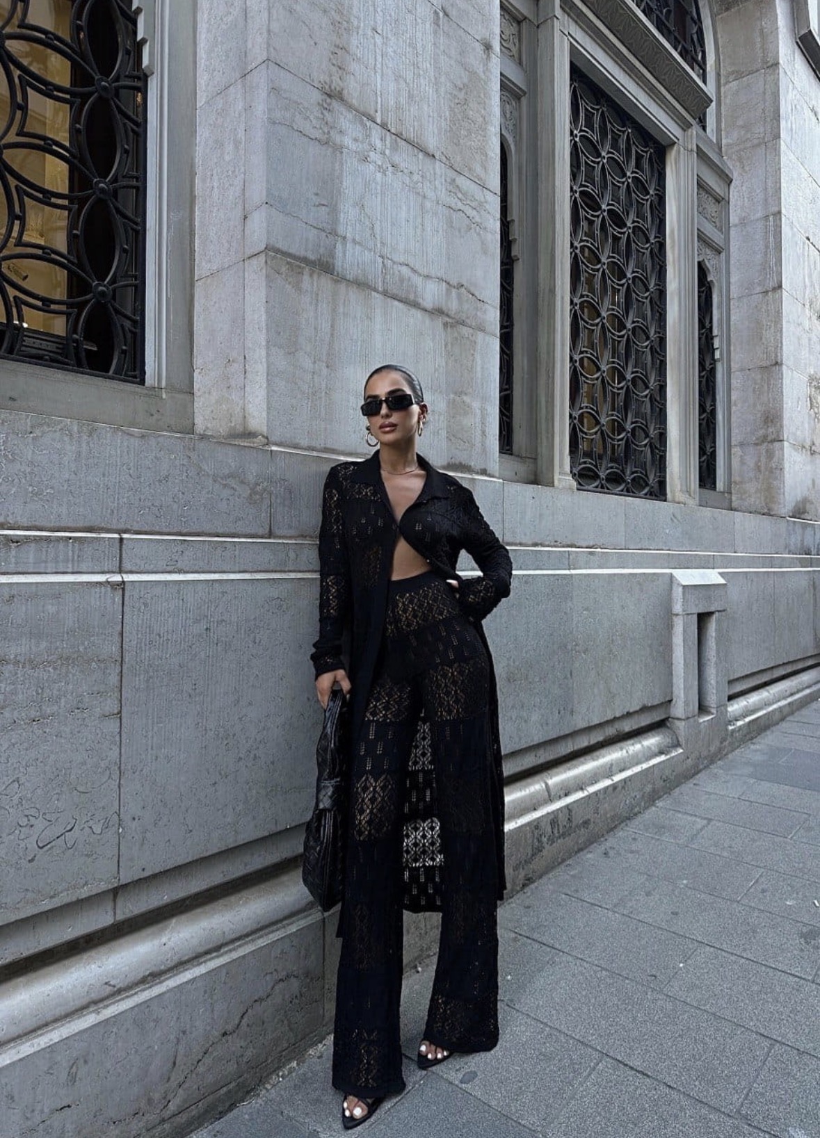 Strona główna Odzież damska PREMIUM 💎 Komplet szydełkowy ażurowy | Croatia | czarny przewiewny zestaw na lato i wakacje (spodnie + narzutka)