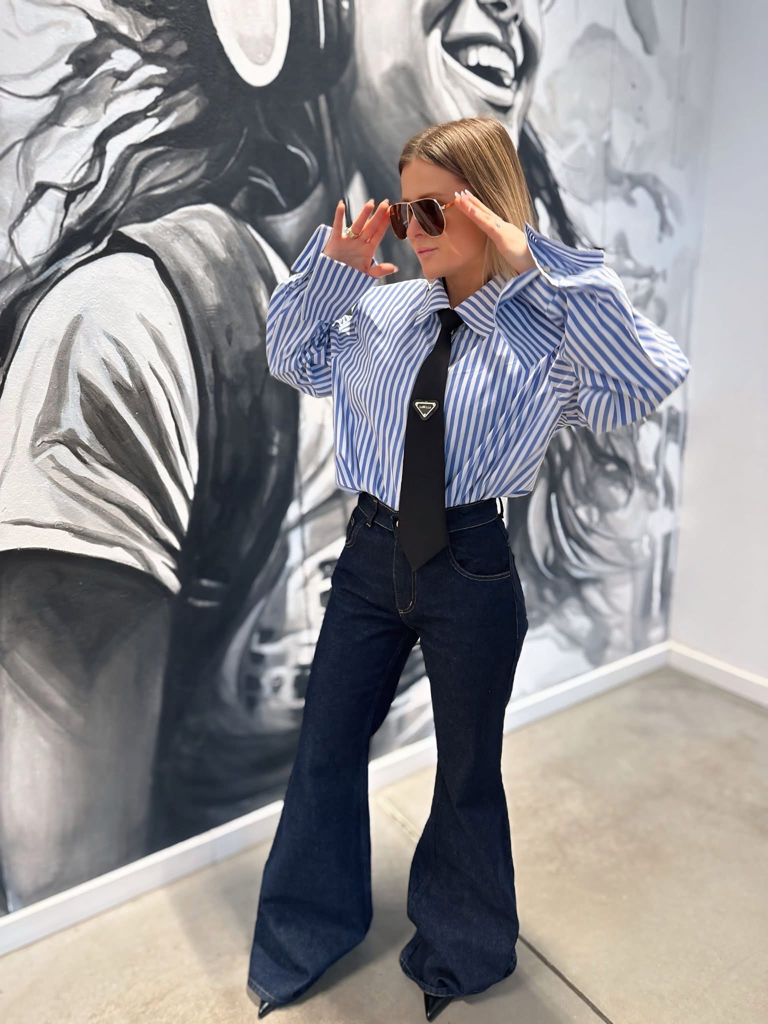 Koszula damska w paski La Milla z czarnym krawatem to propozycja dla kobiet, które cenią elegancję z nutą nowoczesności. Model łączy klasyczny fason koszuli z modnym detalem w postaci kontrastowego krawata, tworząc stylowy i wyrazisty look. To idealna koszula damska do pracy, na spotkania biznesowe, a także do miejskich stylizacji.