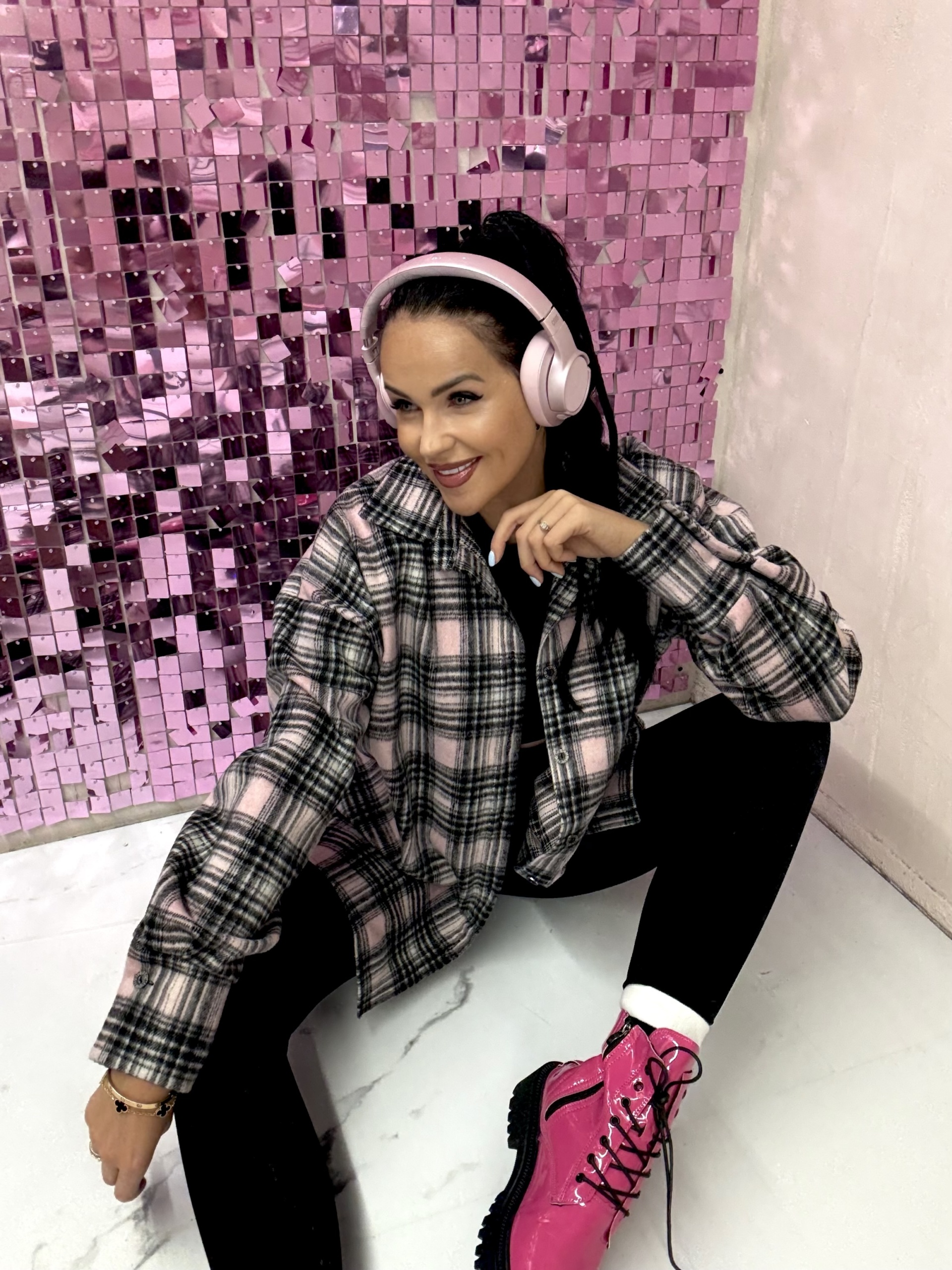 Strona główna HALLOWEEN „-20%” Koszula flanelowa w kratkę La Milla promo- czarno biało różowa