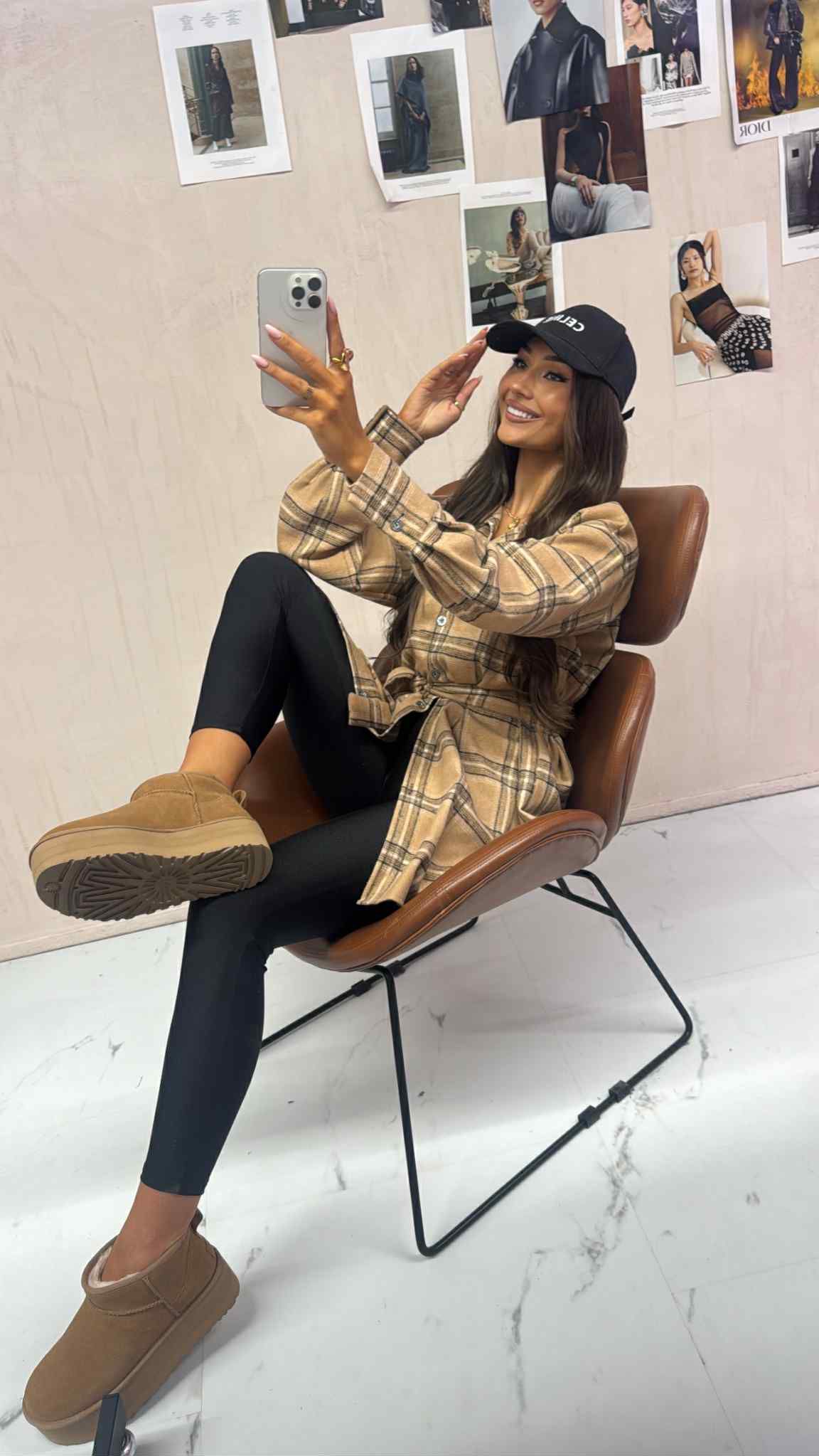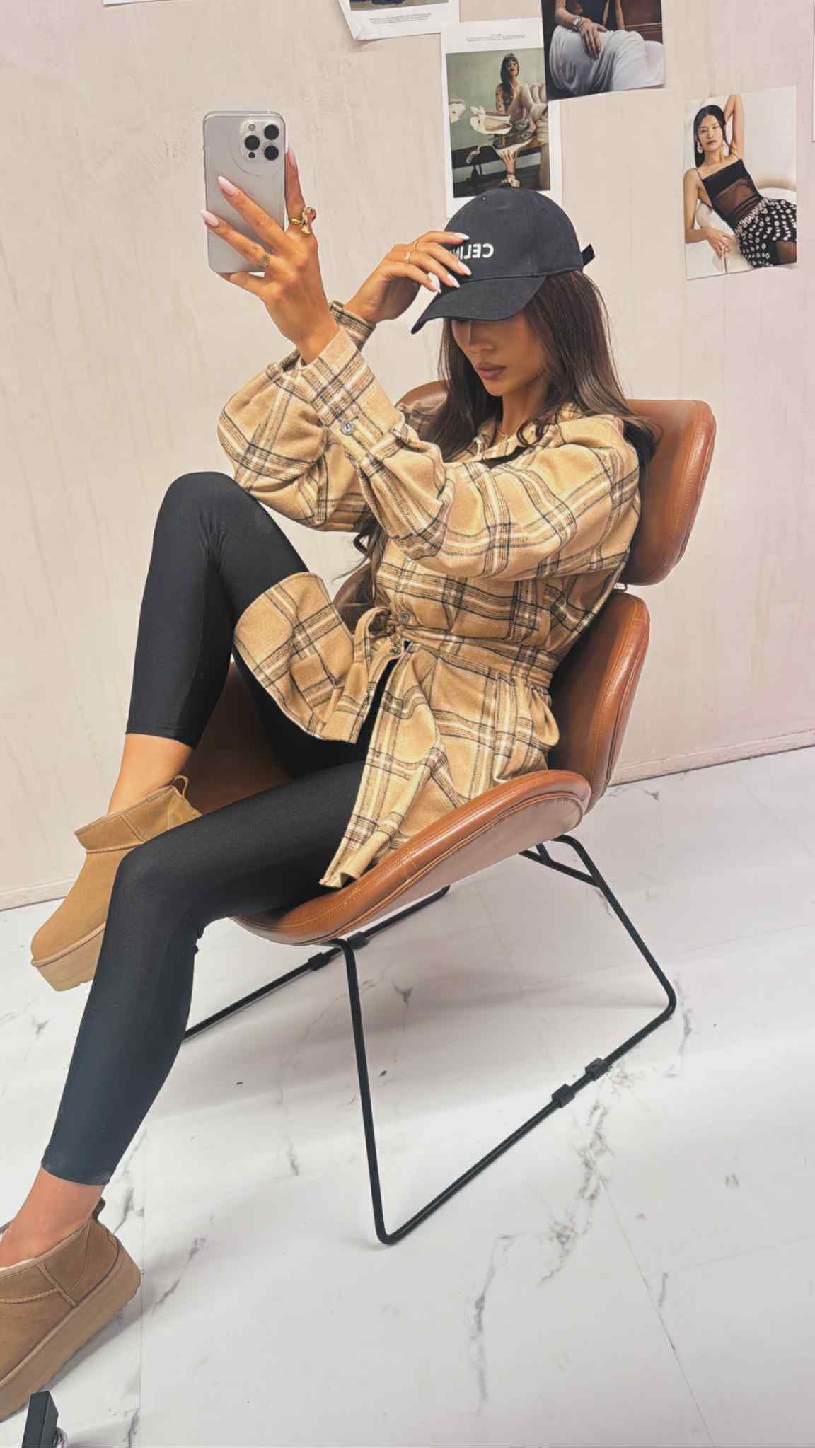 Strona główna La Milla Swetry i kardigany Koszula w kratę grubsza flanela z paskiem La Milla – beżowa