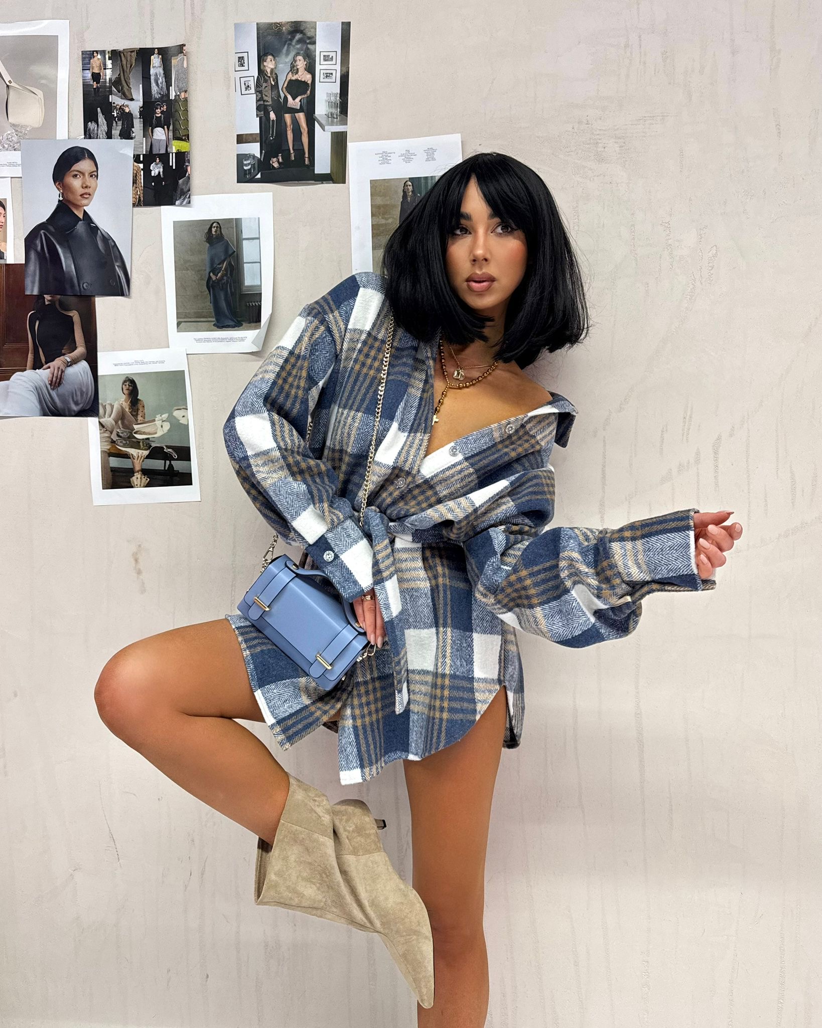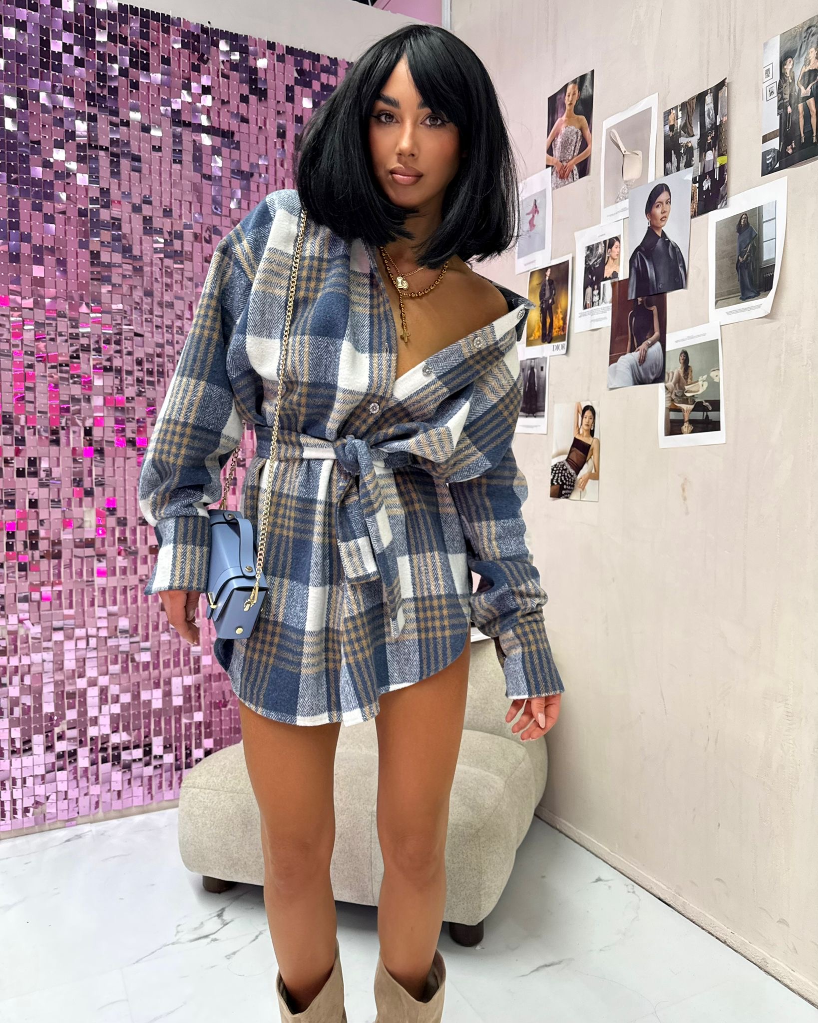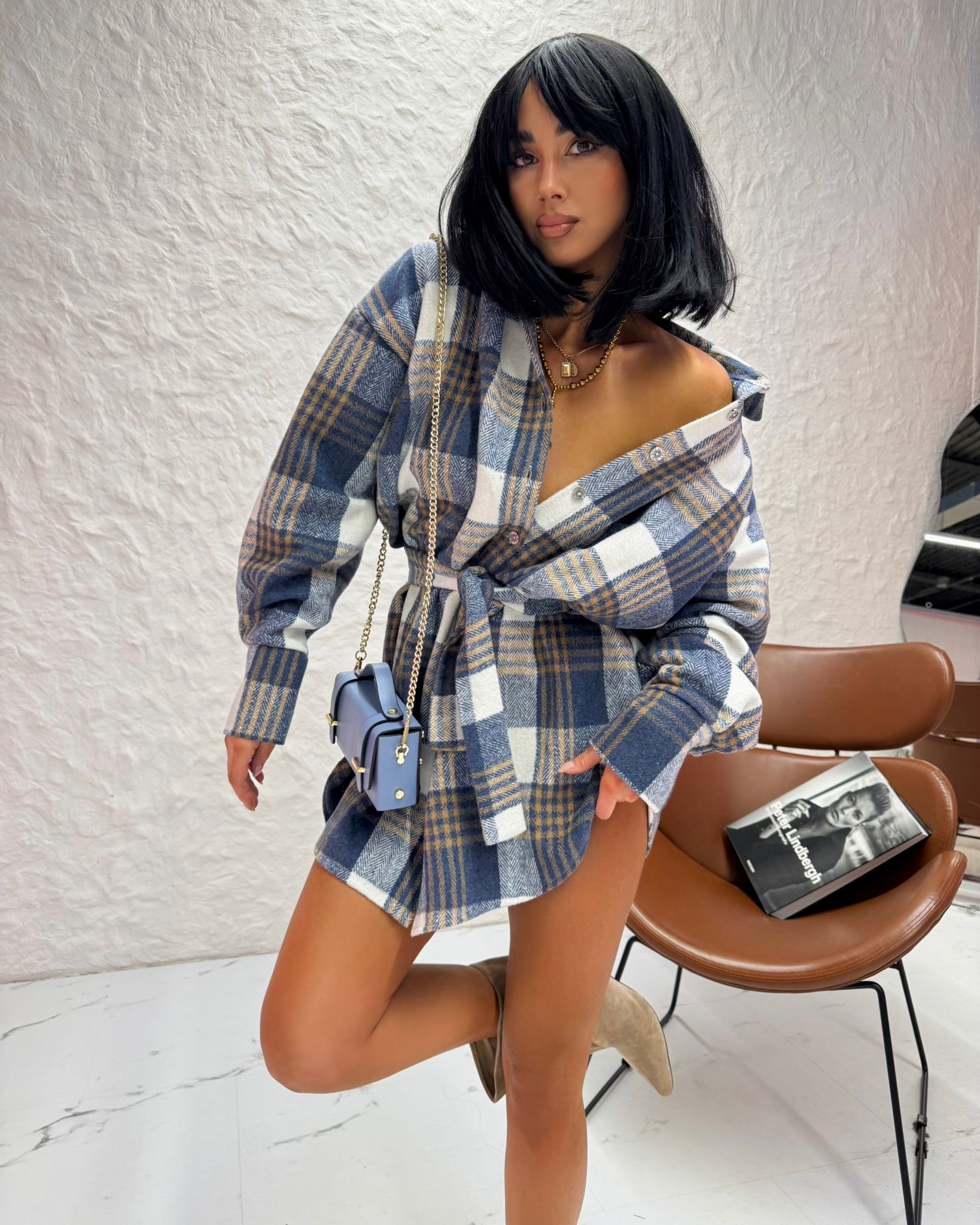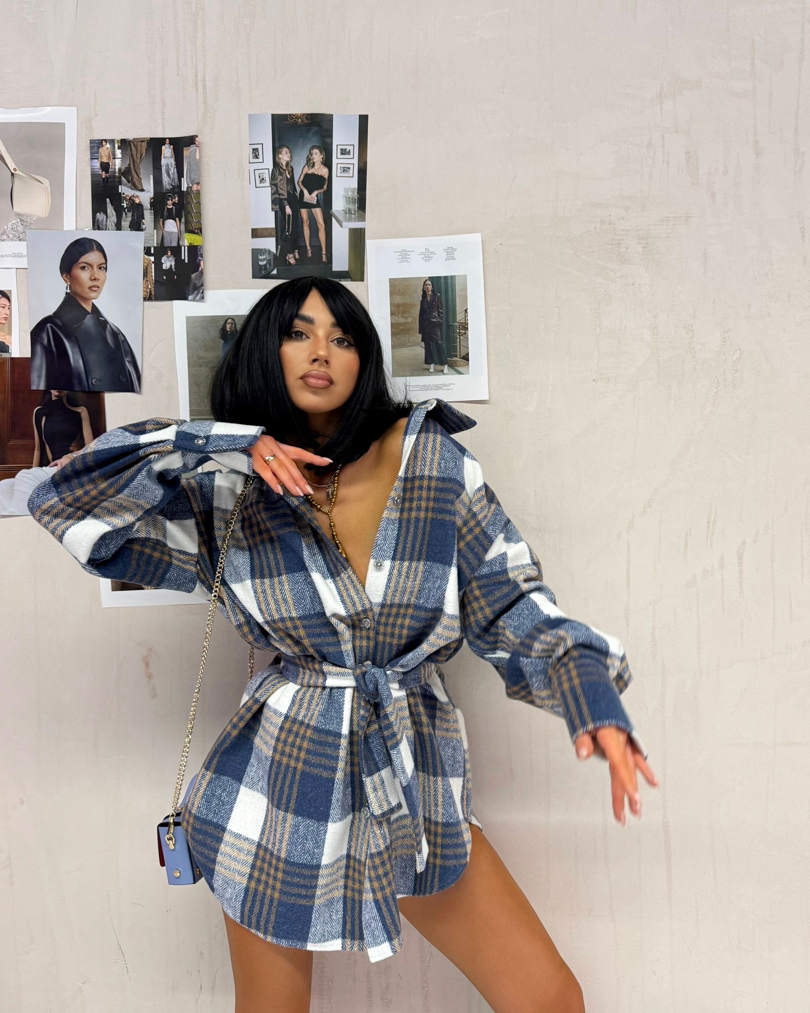 Strona główna La Milla Koszule Koszula w kratę grubsza flanela z paskiem La Milla – niebieska