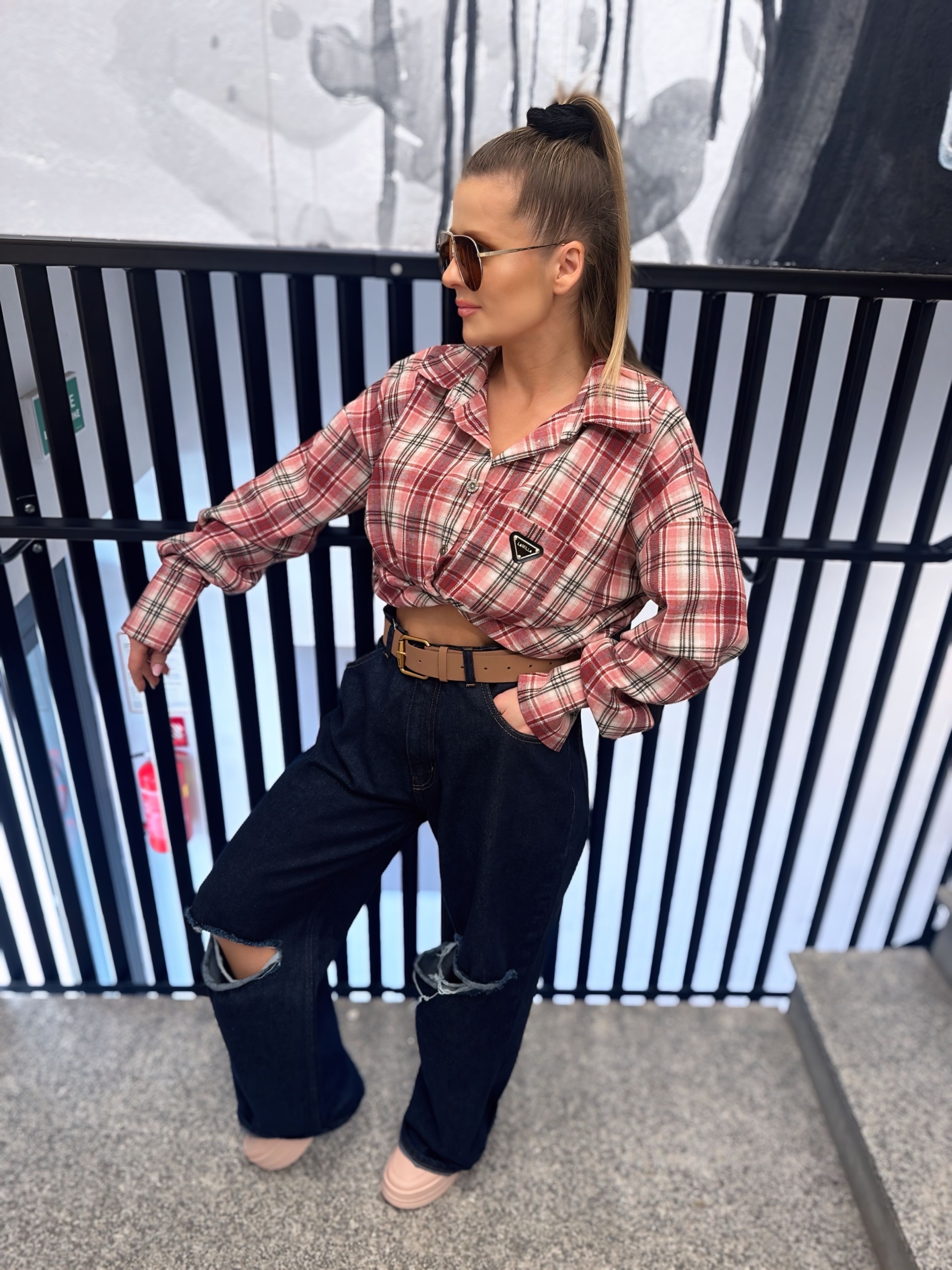 Na piersi znajduje się subtelna naszywka z logo La Milla, która dodaje całości nowoczesnego, brandowego akcentu. Różowa kolorystyka w kratę nadaje koszuli świeżości i kobiecego charakteru.