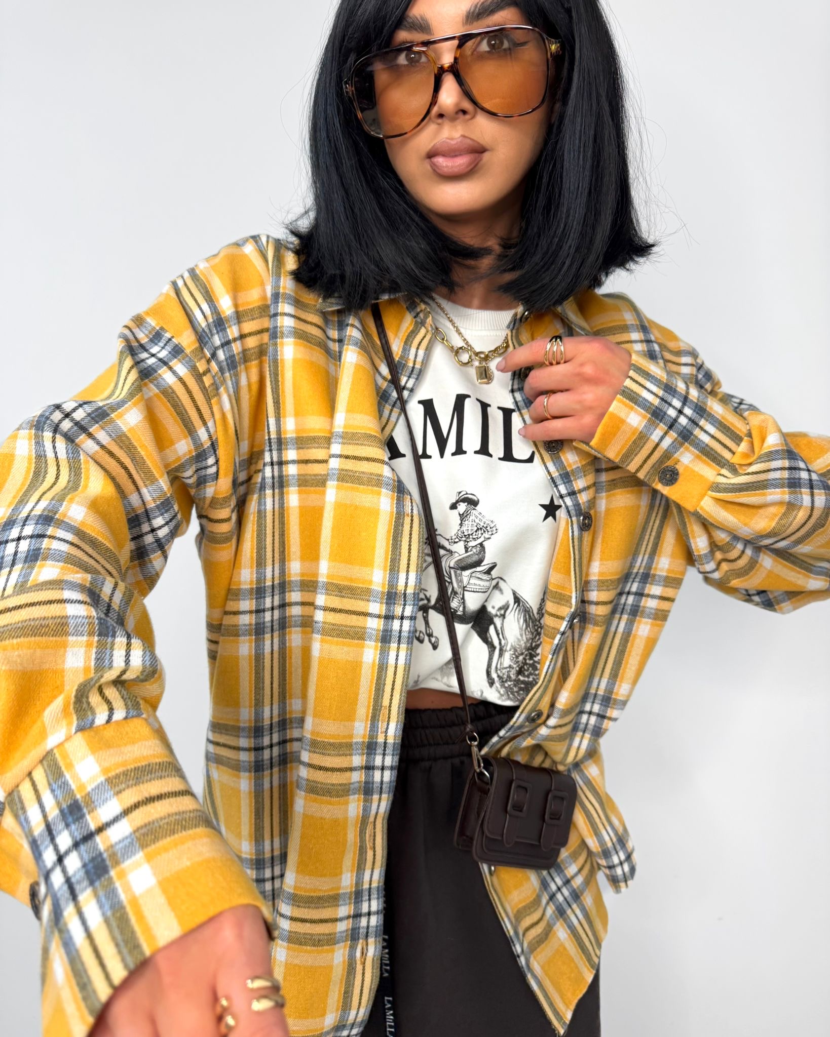 Koszula w kratkę premium La Milla – żółta