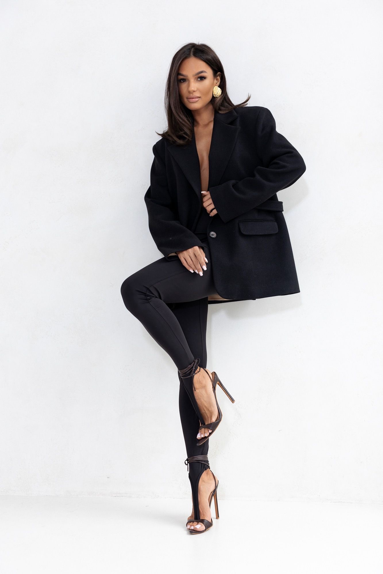 Wysoki stan zapewnia komfort noszenia i efekt wysmuklenia talii, a gładka struktura materiału dodaje im klasy. Legginsy sprawdzą się idealnie w zestawieniu z oversizową marynarką, elegancką koszulą czy krótkim topem – na co dzień i na wieczorne wyjścia.