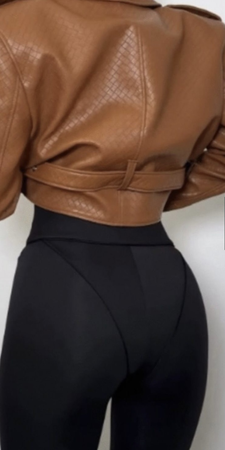 Efektowne legginsy z wysokim stanem wyróżniają się modelującymi przeszyciami poprowadzonymi ku górze w kształcie trójkątów, które subtelnie nawiązują do formy bielizny. Taki układ szwów optycznie wysmukla talię, podkreśla biodra i pięknie modeluje sylwetkę. Elastyczny, dopasowujący się do ciała materiał zapewnia komfort noszenia oraz pełną swobodę ruchów. Gładka struktura i precyzyjne wykończenie nadają legginsom nowoczesny, zmysłowy charakter. Idealne do stylizacji streetwearowych, jak i bardziej wyrazistych, modowych zestawów – świetnie prezentują się zarówno z krótką kurtką, jak i dopasowanym topem.