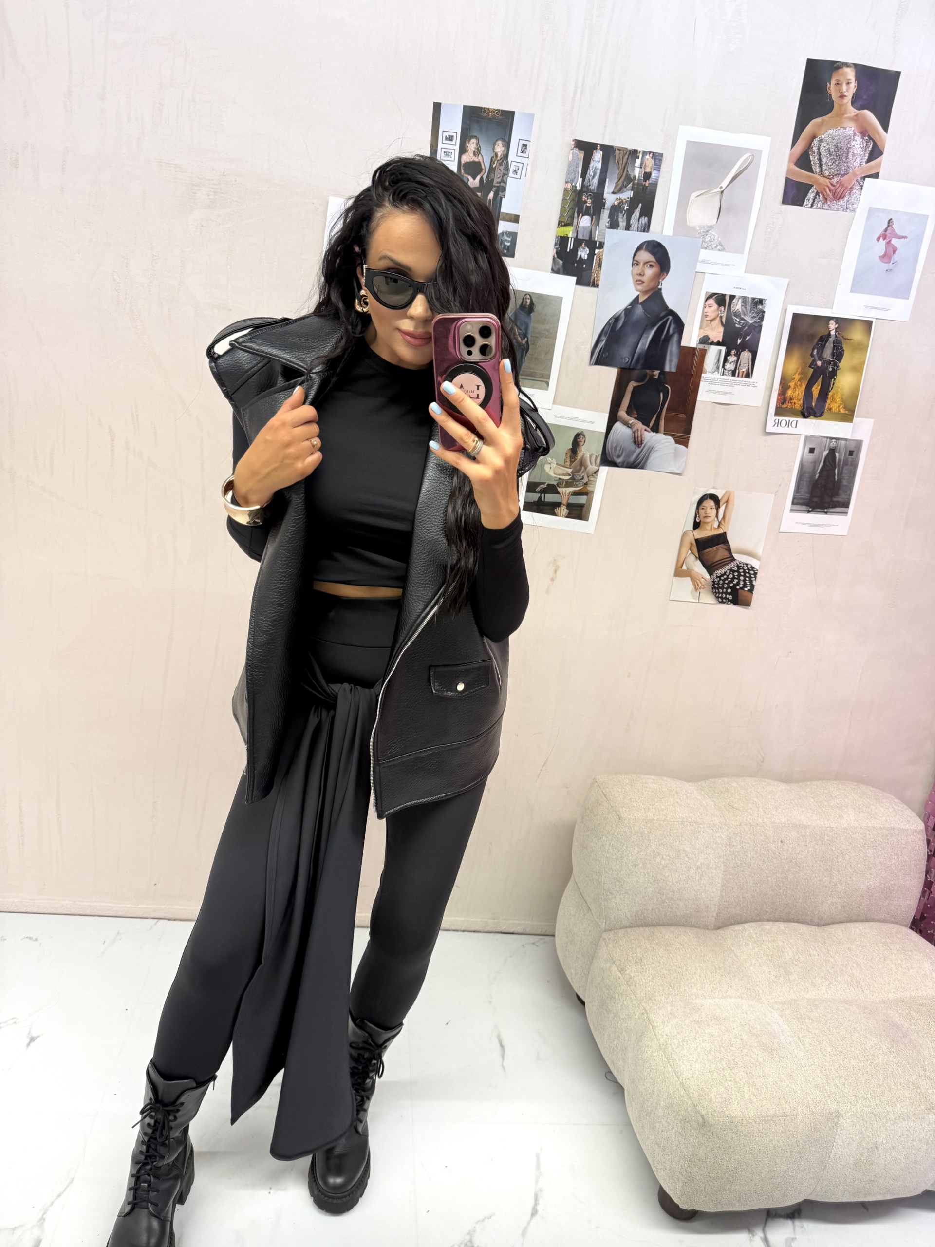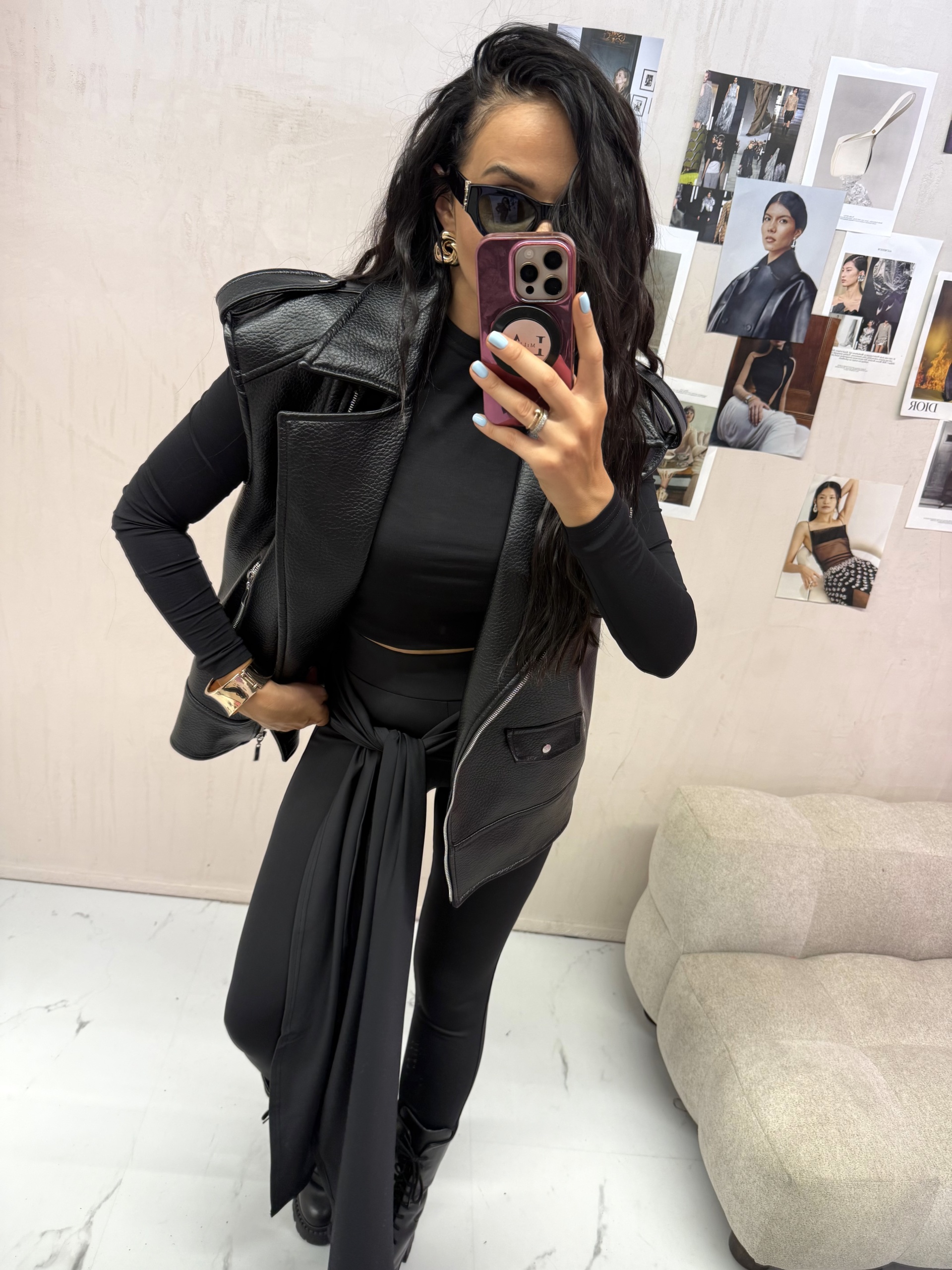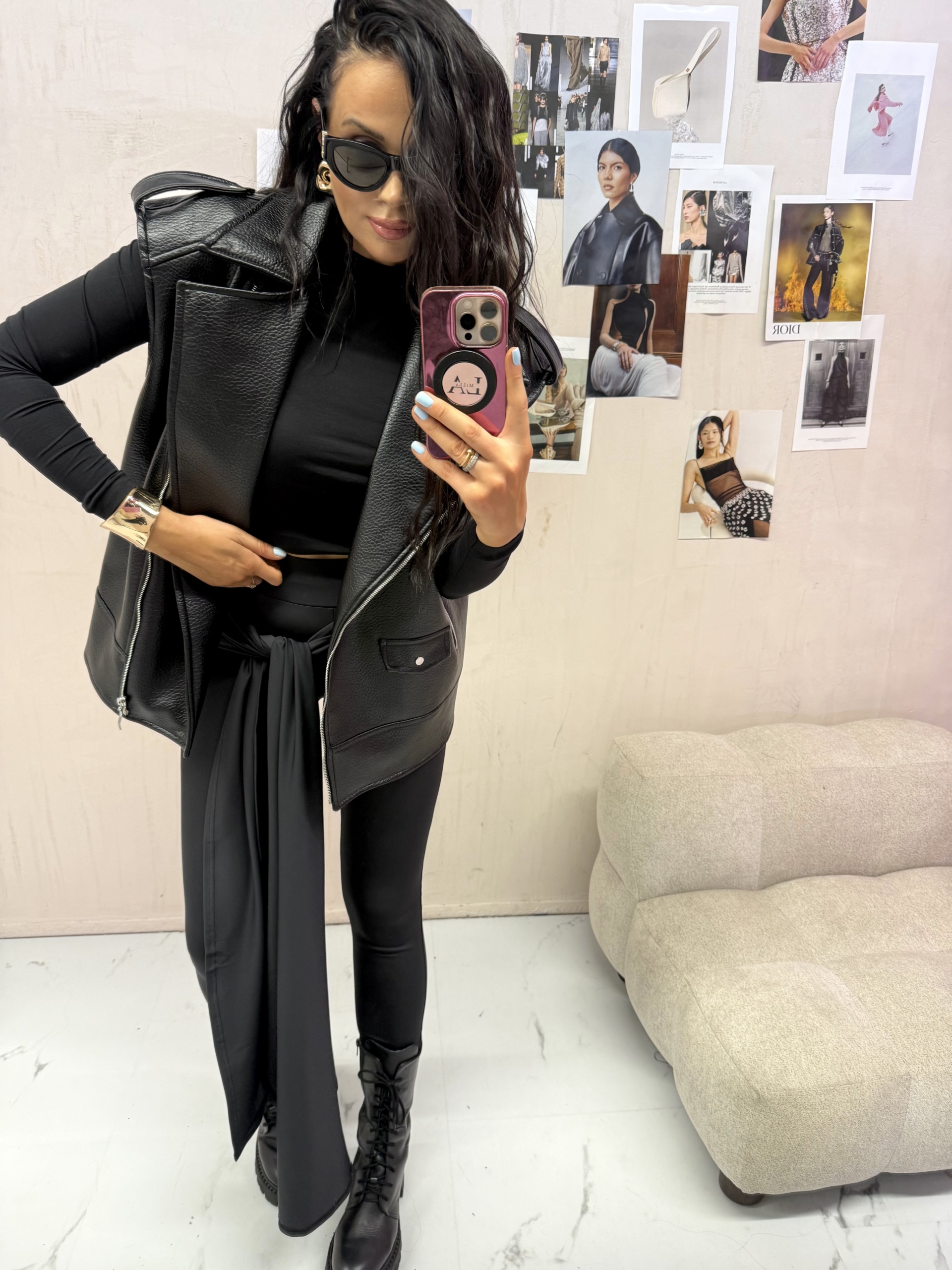 Dodatek w postaci szarfy długiej do przewiązania sprawia że legginsy dają efekt PUSH UP.