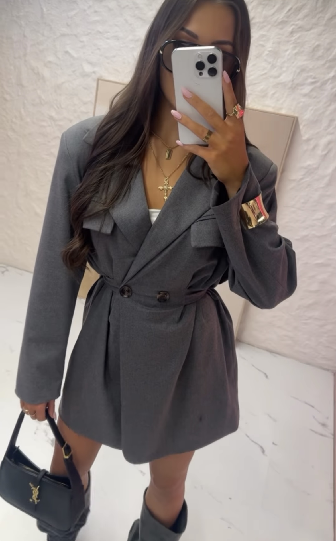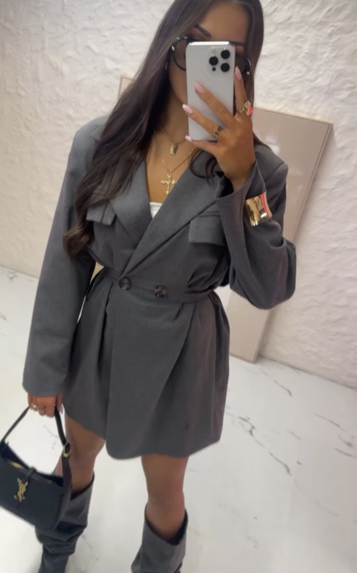 Marynarka Jeans długa wiązana w pasie La Milla – szara