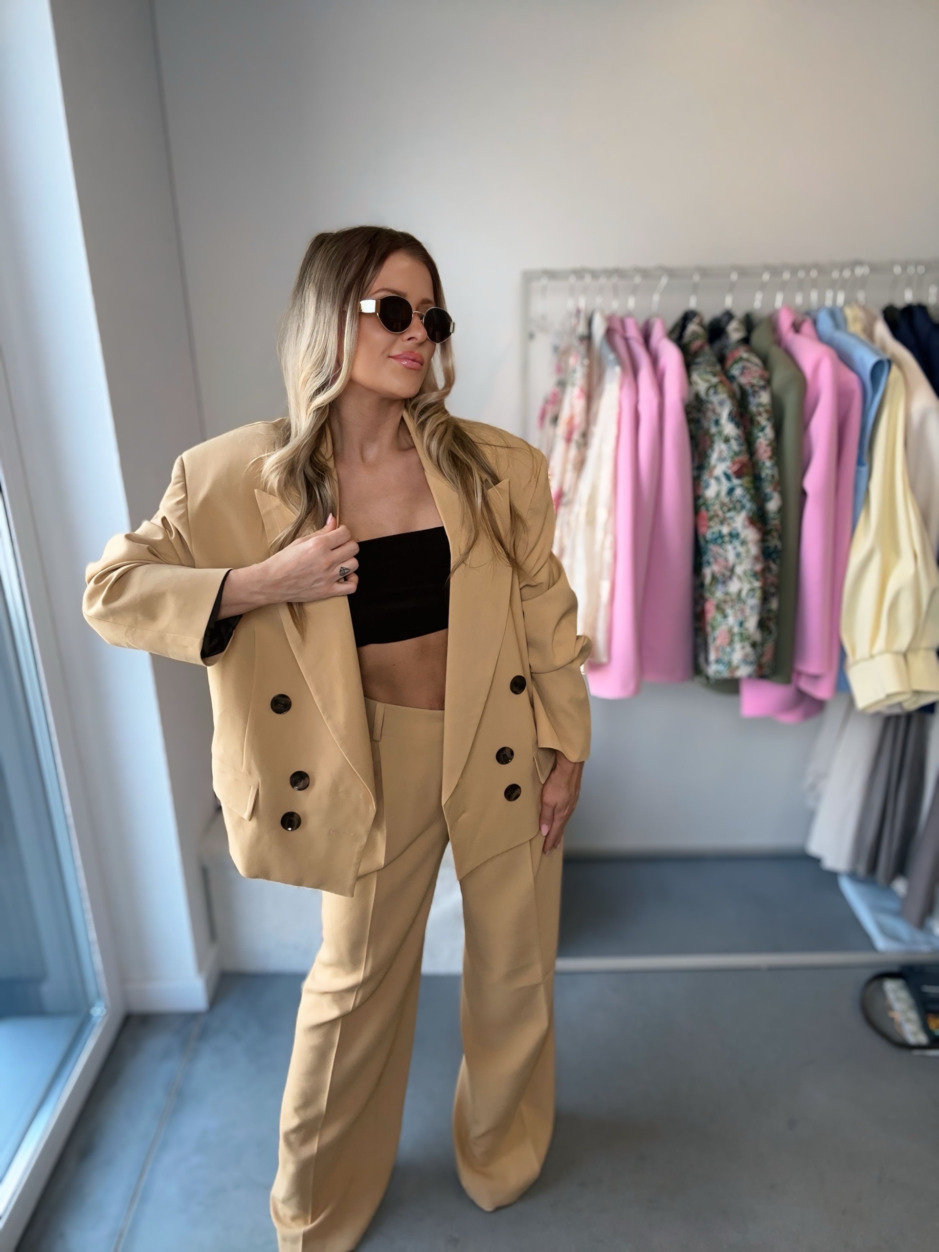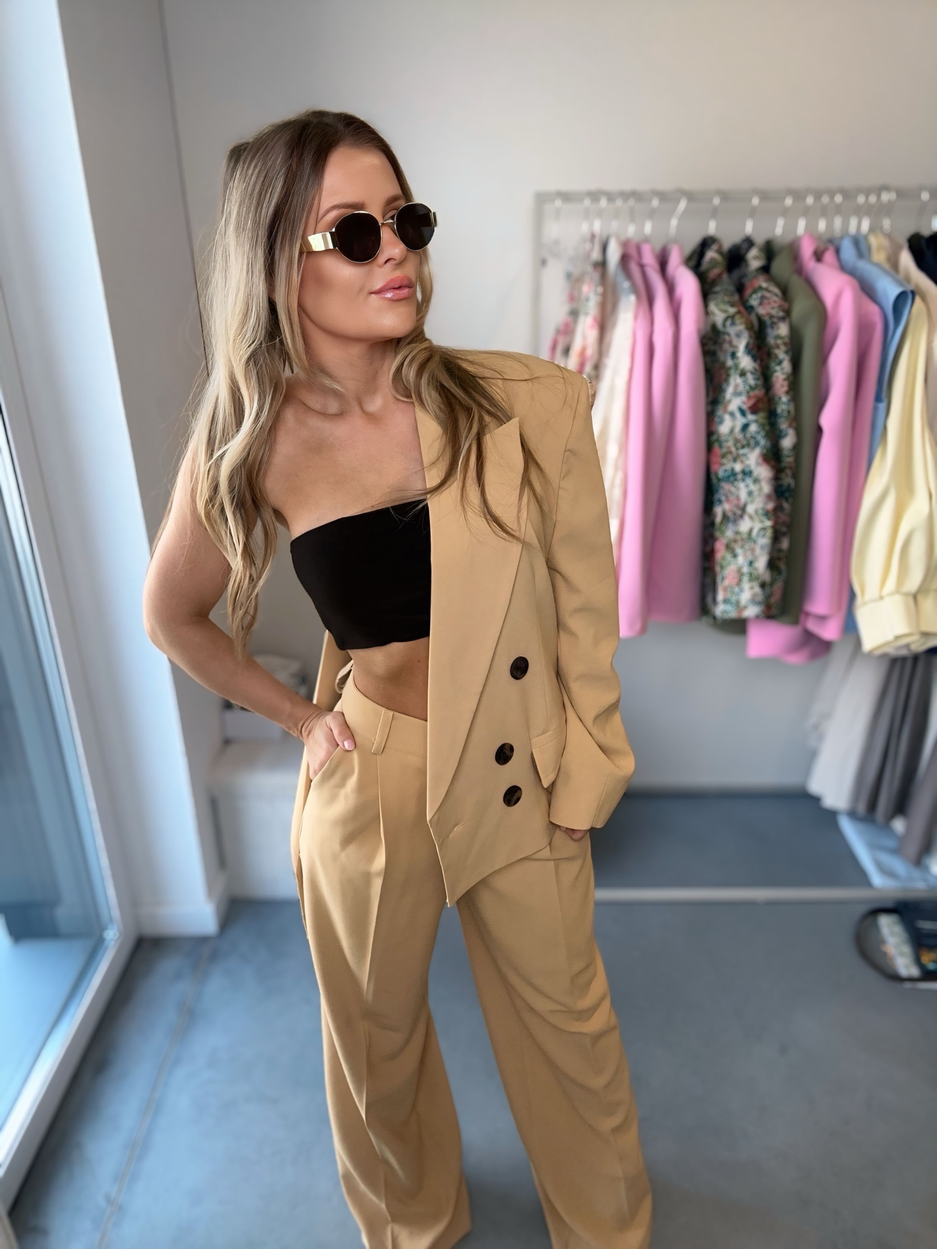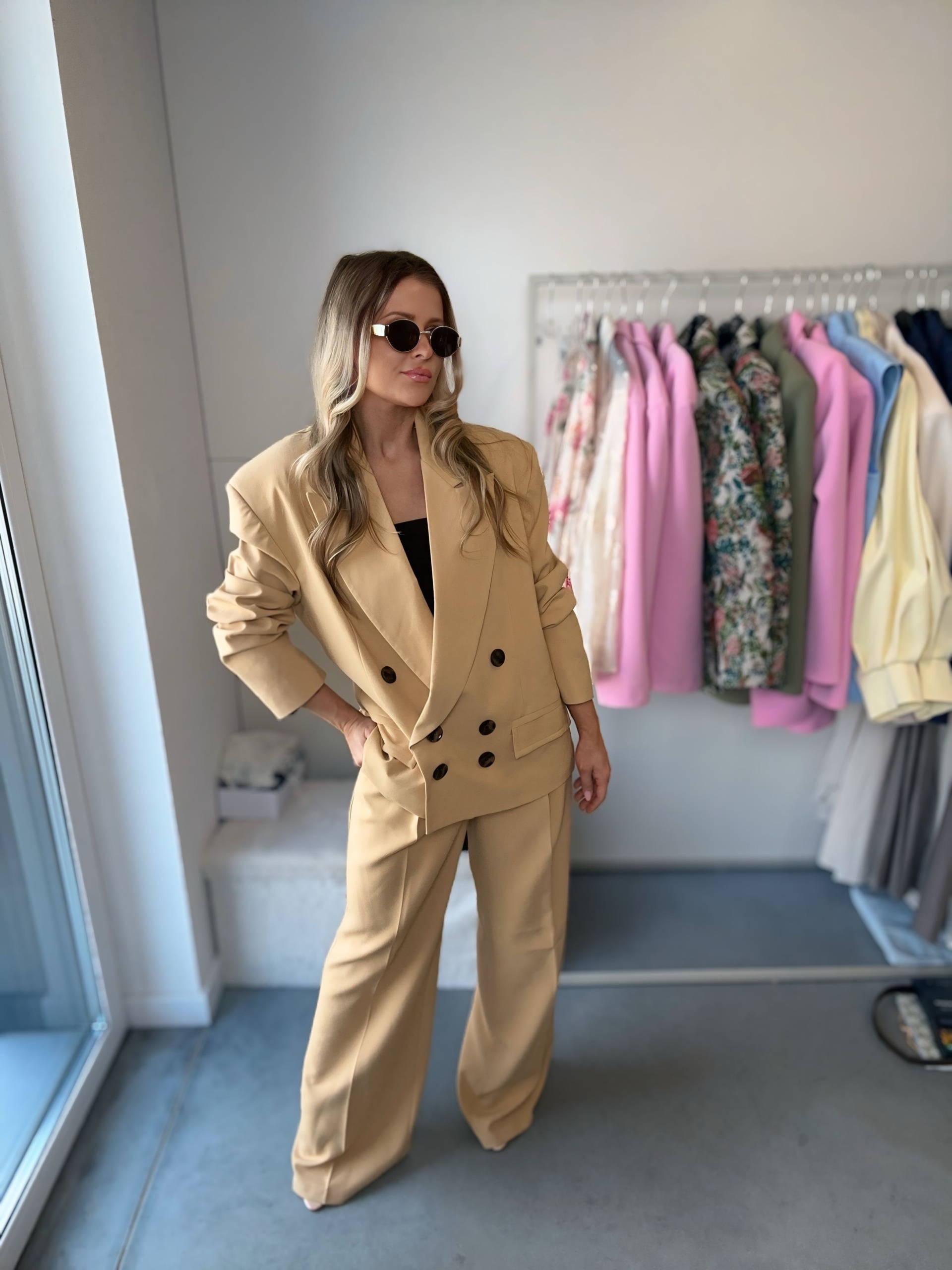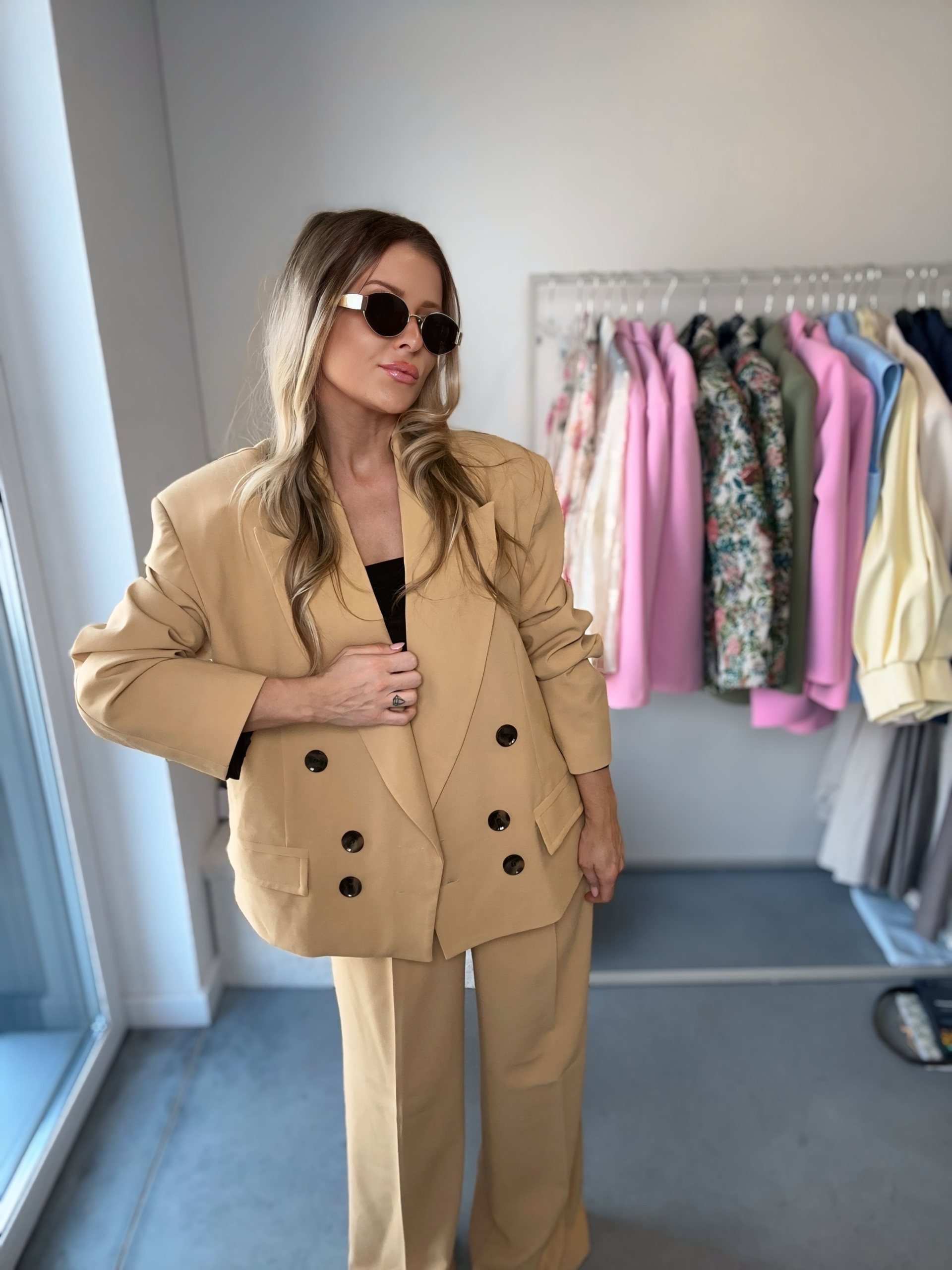 Marynarka La Milla to elegancka, a zarazem nowoczesna propozycja dla kobiet ceniących styl i wygodę. Klasyczny, lekko oversize’owy krój z dwurzędowym zapięciem pięknie podkreśla sylwetkę i nadaje stylizacji modowego charakteru. Wyraziste klapy oraz starannie dopracowane detale sprawiają, że model prezentuje się wyjątkowo elegancko i ponadczasowo.